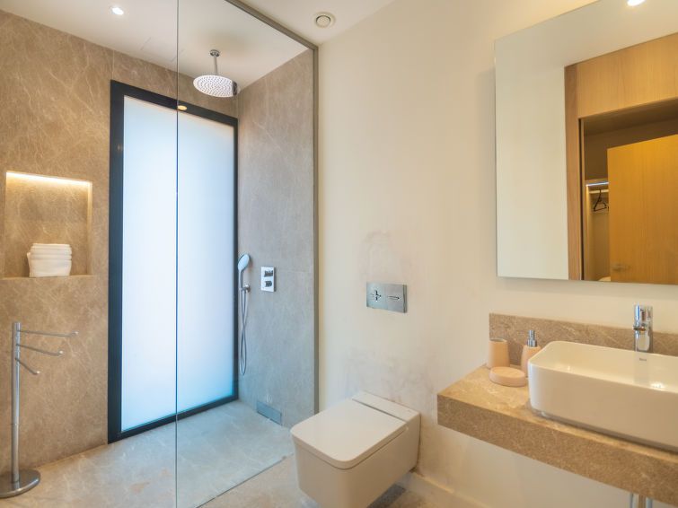 "Can Navarro", 5-room villa 250 m2 on 2 levels. Object suitable for 8 adults. Spacious and bright, very comfortable and modern furnishings: large living/dining room with sliding door, panoramic window with dining table, satellite TV, digital TV, flat screen, radio, hi-fi system, air conditioning and forced-air heating.