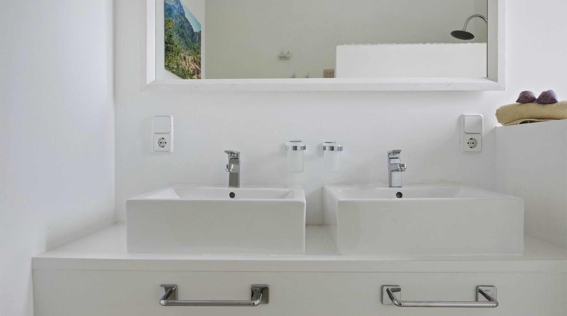 We love the whitewashed, minimalist interiors, which combine contemporary furniture with period touches, like the period stone fountain next to the glass fireplace. Cooking together with the whole gang is like a celebration – you can whip up a storm in the huge kitchen or make use of the gas grill outside, to be enjoyed at leisure on the terrace. There’s an excellent set-up for alfresco dining, so you can live as the locals do and dine late into the evening under the stars.