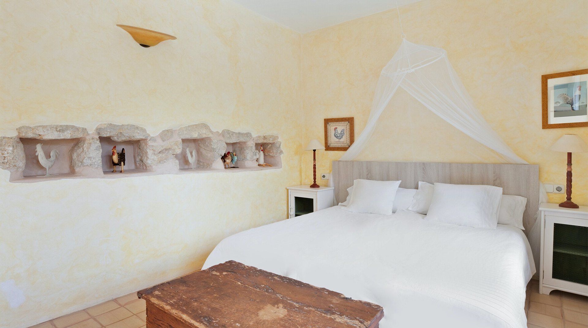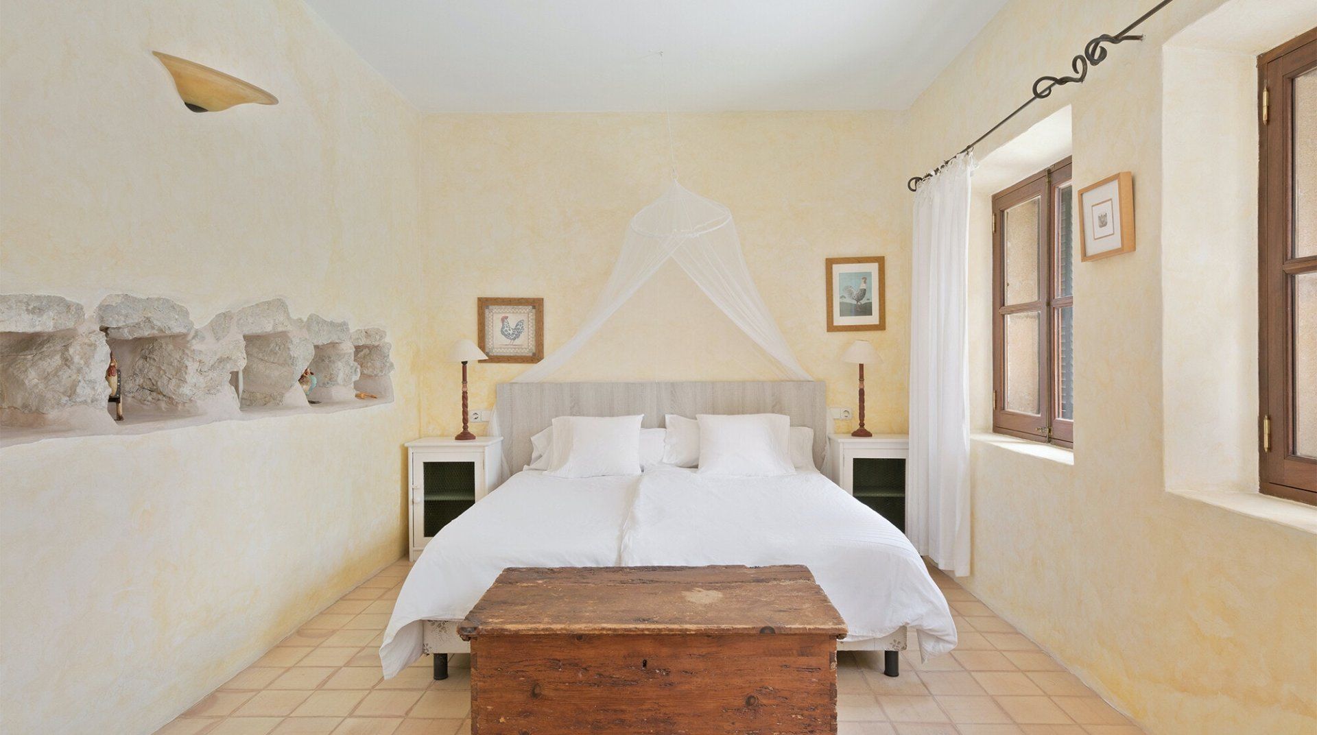 This farmhouse has been renovated in such a way that it has retained its unique rural character while still getting to call itself a holiday home fit for the twenty-first century. Mallorquin both within and without, it’s built in the classic blonde stone of the area and filled with traditional dark wood furnishings, wrought iron beds and classic Mediterranean tiled floors. Spend your days lazing by the pleasingly large pool, enjoying long lunches on the covered terrace, and exploring some of the gorgeous local beaches — the sands of Cala D’Or are just 13 minutes away by car. Golf enthusiasts will be finding an excuse to visit the course at the nearby Club Vall D’Or and cyclists will enjoy the network of trails that criss-cross the island. Once the sun has gone down, fire up the barbecue, open a bottle of local wine and pass an evening under the stars with your loved ones.