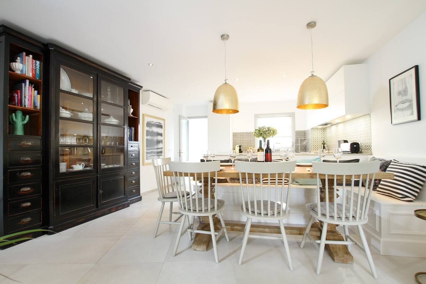 It’s not often you find a Pollença townhouse as stylish and immaculate as this, but then the owner is a celebrated designer. Spread across three levels, you’ll find a chic mix of statement lighting, striking tiles and one-off pieces. There’s a lovely balcony and patio area, and a Jotul wood burner for winter stays.