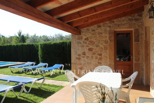 Description :Delightful and prettystone villa. A tree lined shaded driveway leads you to your villa. There is acovered terrace With table and chairs. The front door takes you directly intothe airy lounge with its decoration of blue sofas and chairs which gives awelcoming summer ambience. Off to the left of the lounge is a super largecountry style fully fitted kitchen with table and chairs for dining, and secondtable that can be used for preparation. A Glass door leads out of the kitchento the covered terrace and pool.