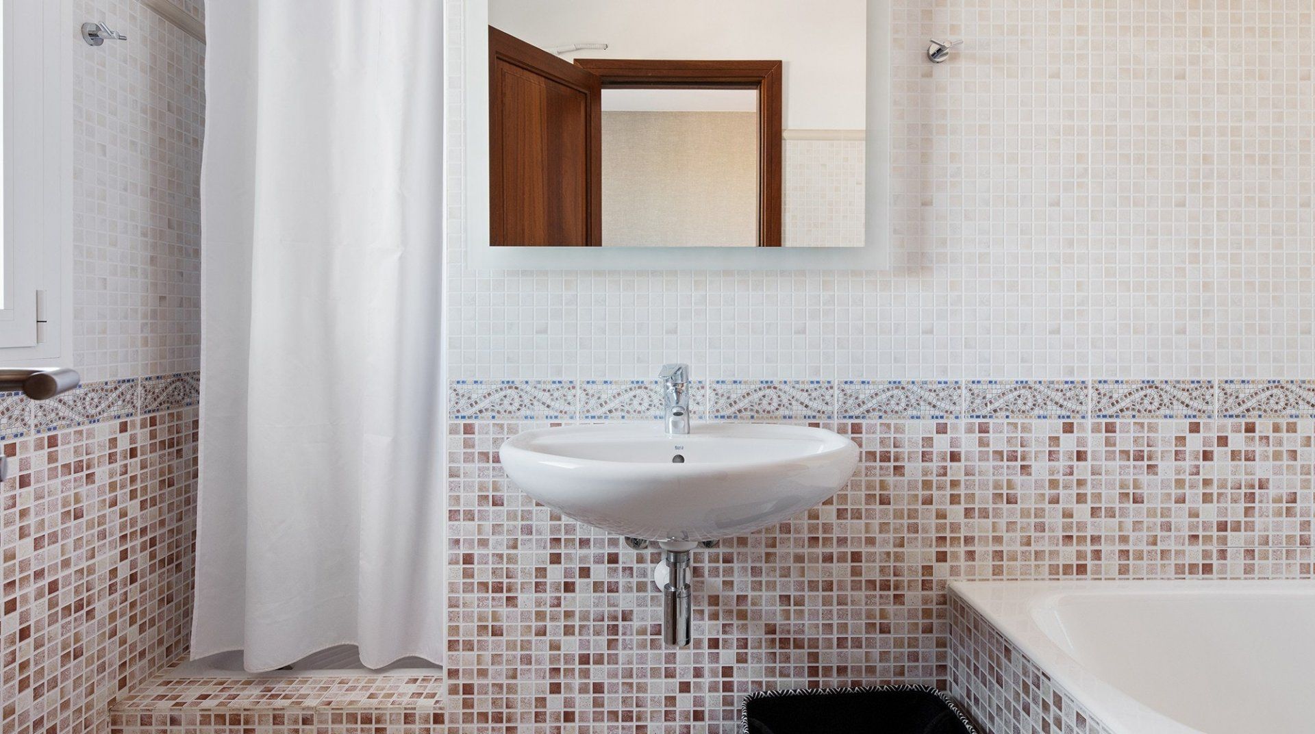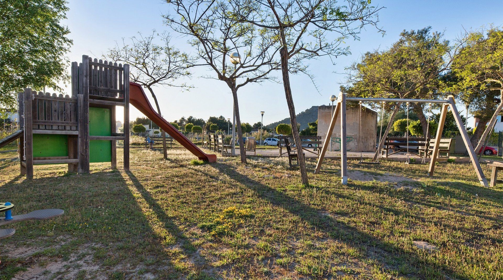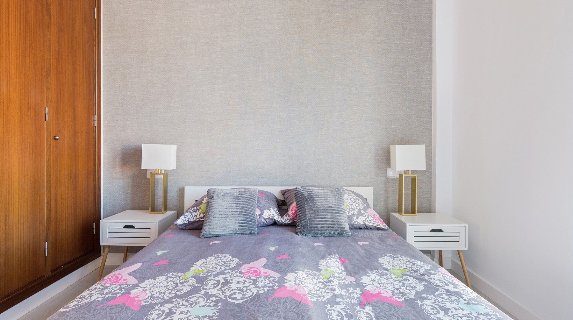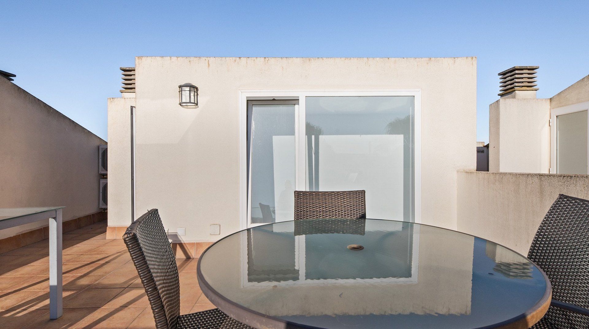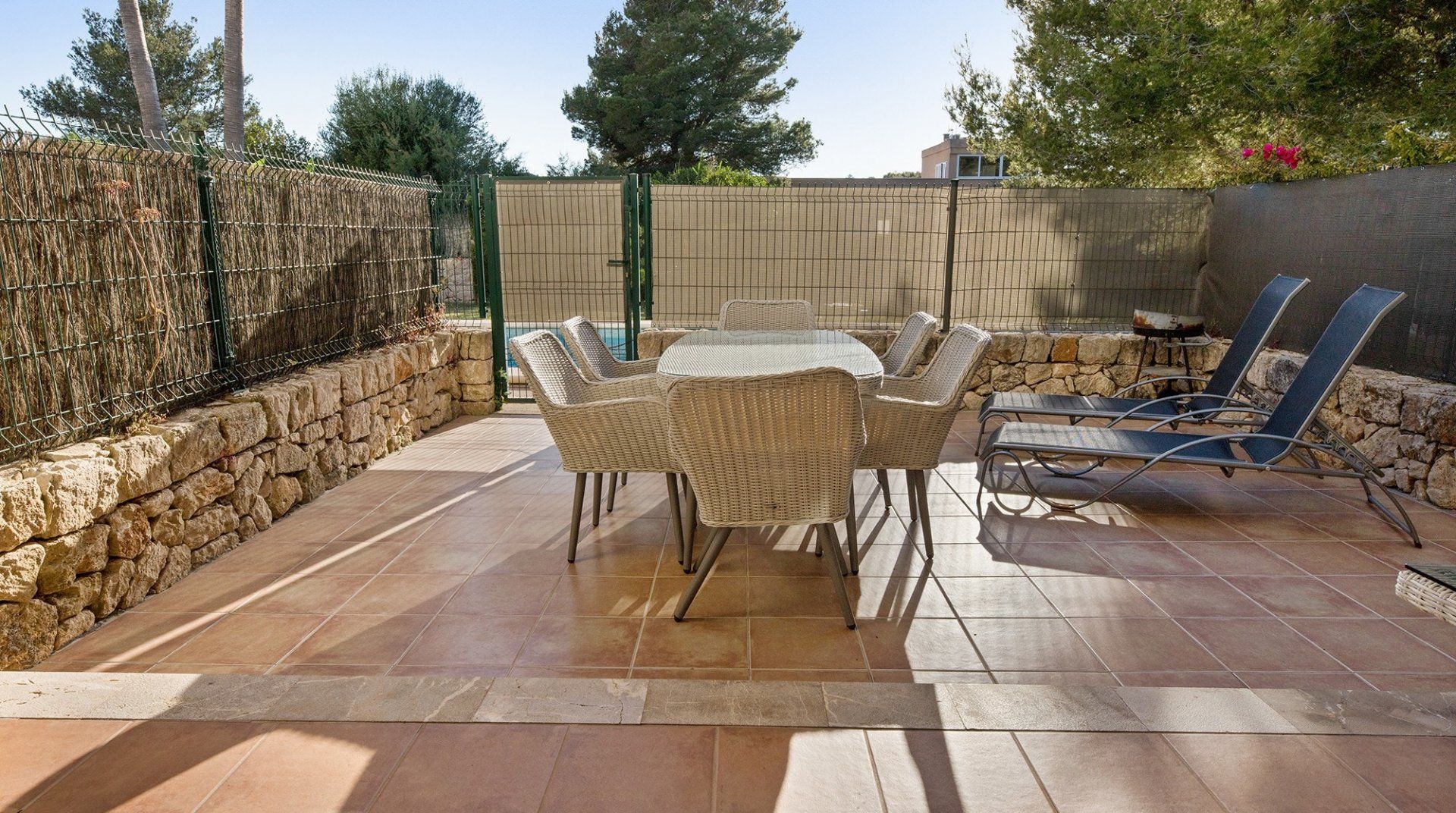 Inside, a monochromatic colour scheme combines with driftwood art and nautical details in the living room which leads out onto a sun-baked patio ready to host alfresco barbecue feasts and plenty of tanning on the sun loungers. Open the gate here to step out onto the shared lawn where a glistening communal pool awaits luxurious dips in its welcoming waters. Pick a spot on the grass to soak up some more of those Spanish rays and cool off beneath the shared outdoor shower.