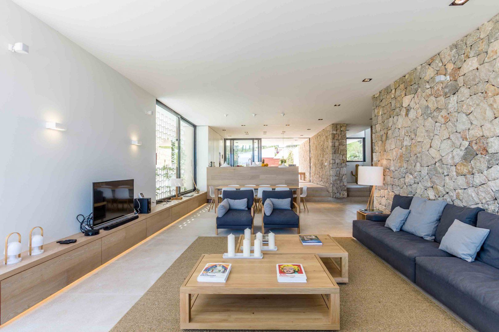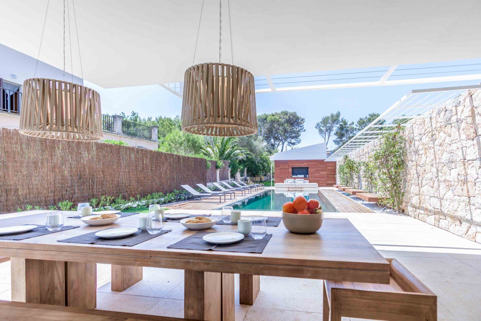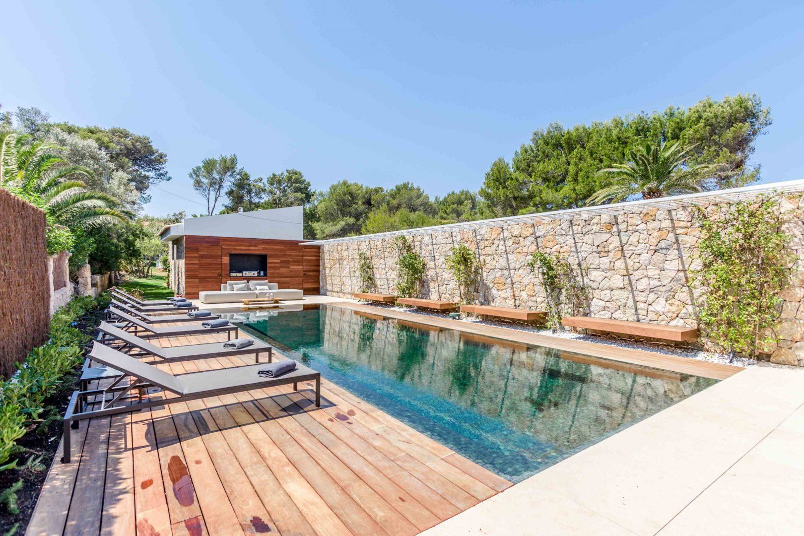 Escape to the beautiful Balearics with a stay in this contemporary villa. Based right on the water, in the affluent Mal Pas neighbourhood, you’ve got direct beach access to Sant Pere and Sant Joan. Here you’ll find white sands, turquoise seas that are perfect for snorkelling and rustic beach bars serving ice-cold beers. The villa is a real head-turner, with angular shapes, and sightlines straight through the living area to the ocean and mountains. Interiors are modern with design-forward furniture in neutral tones and a white gloss kitchen, but the exposed blonde stone gives a nod to traditional Mallorcan architecture. The oh-so-chic pool area has us wanting to break out the bikini right away, and there couldn’t be a dreamier place to top up the tan than the roof terrace, with its shimmering vista. Be the first to hit the beach and the last to leave, with a quick break for lunch on the shady terrace. Come sundown, the roof terrace beckons, for sangria and nibbles.