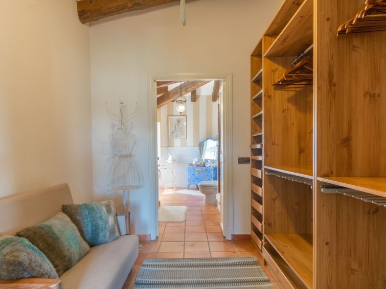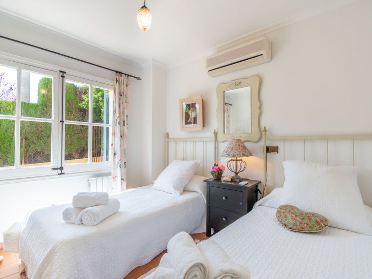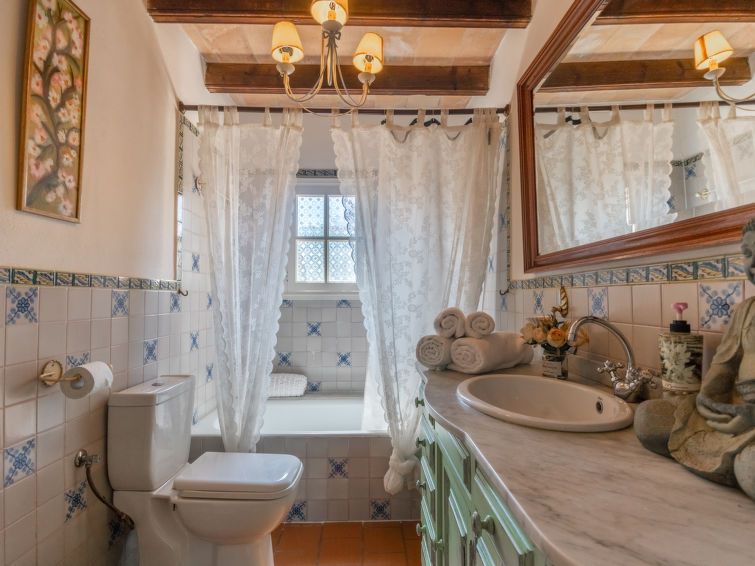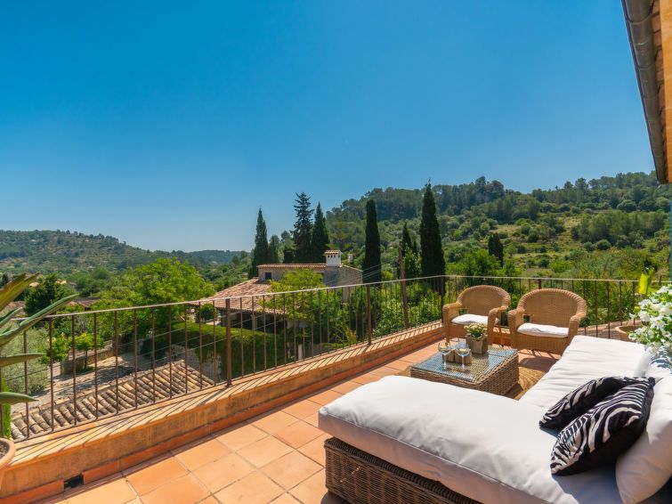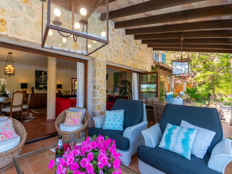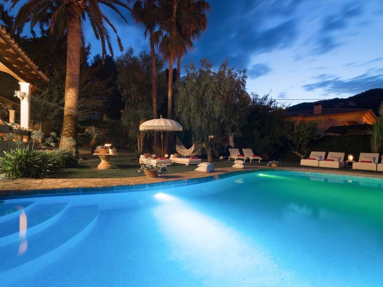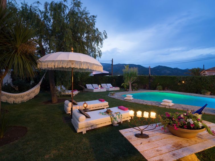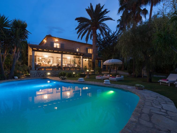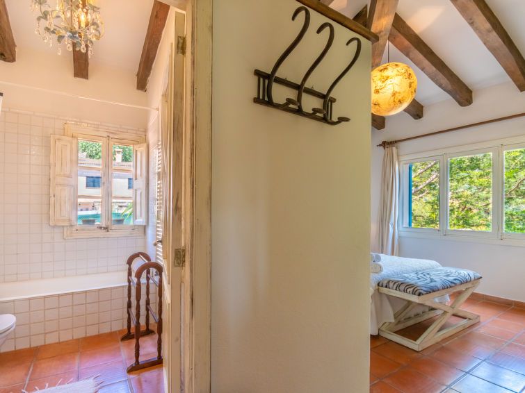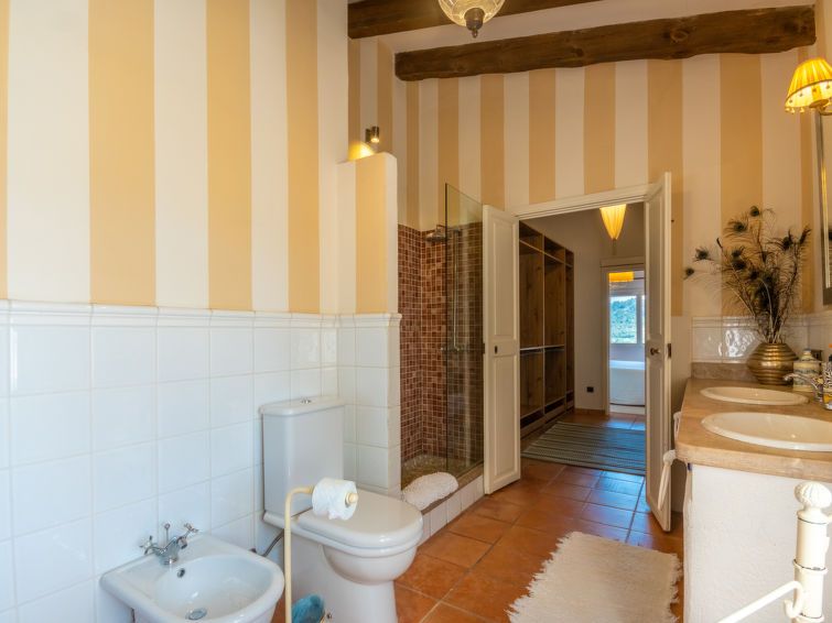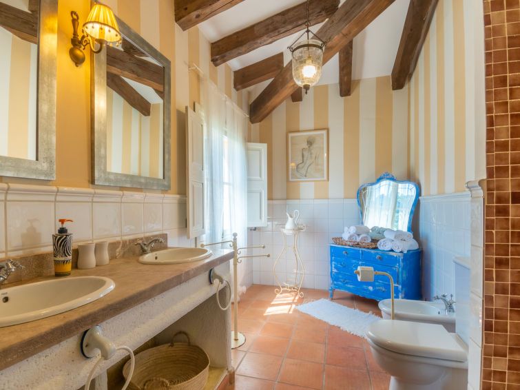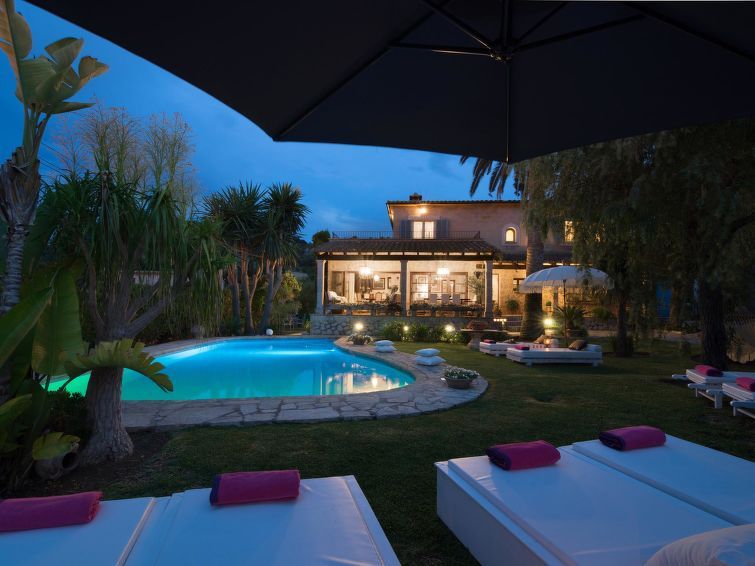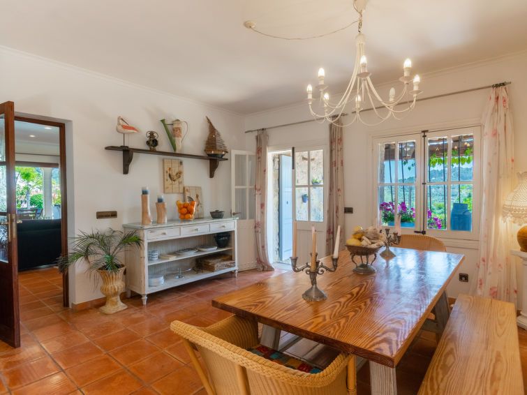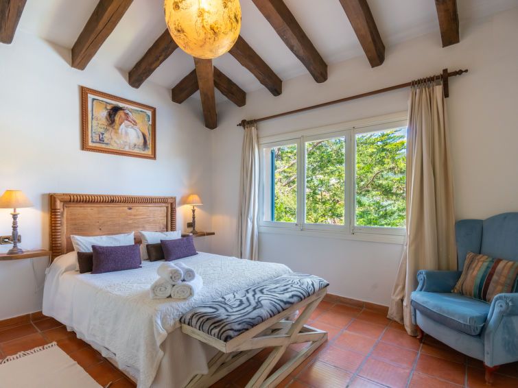 "La Font", 8-room villa 200 m2 on 2 levels. Object suitable for 8 adults. Spacious and bright, very beautiful and tasteful furnishings: open living room with panoramic window with dining table. Exit to the patio, to the swimming pool. Entrance hall. 1 large double bedroom with panoramic window with 1 french bed (150 cm, length 200 cm), air conditioning and forced-air heating.