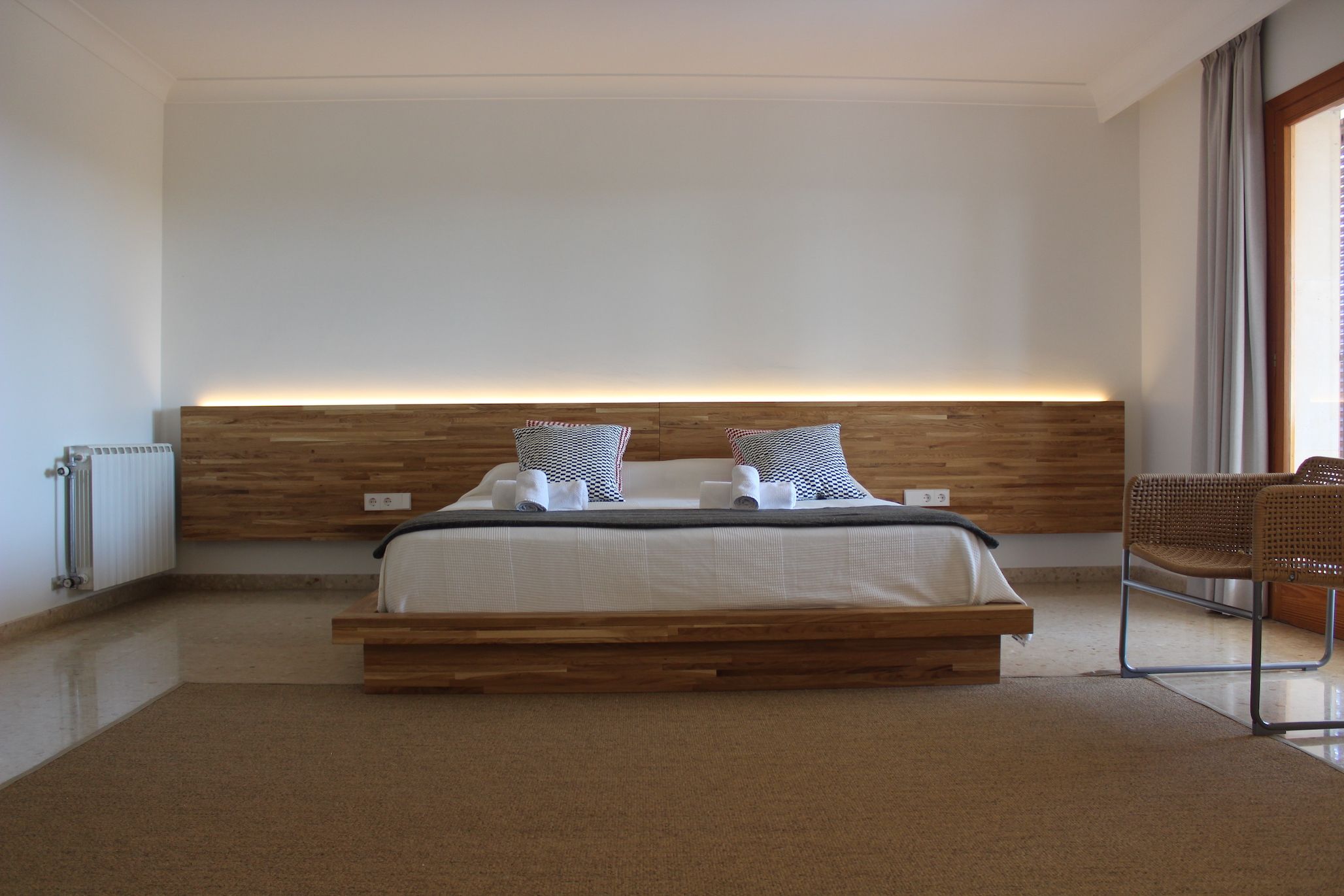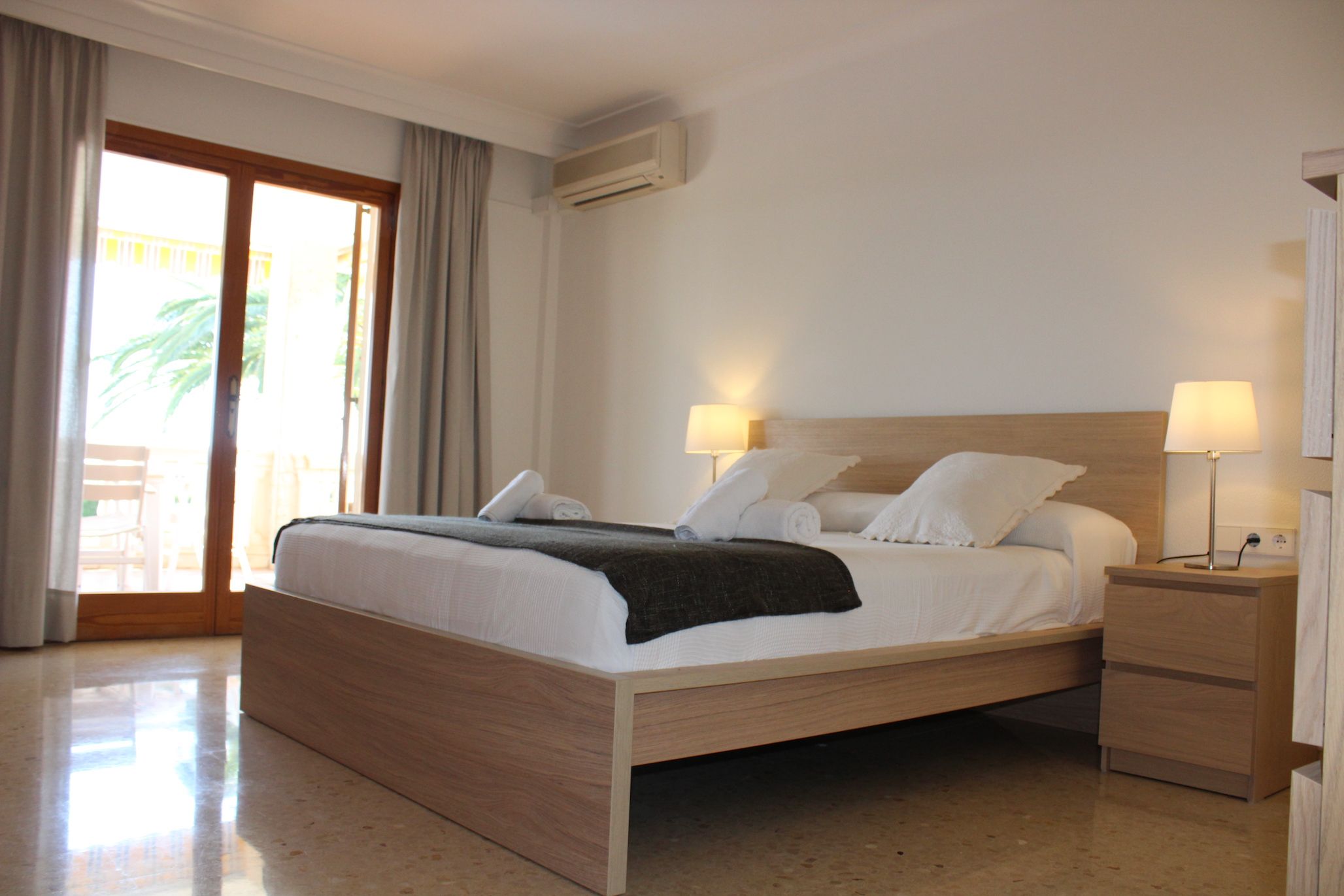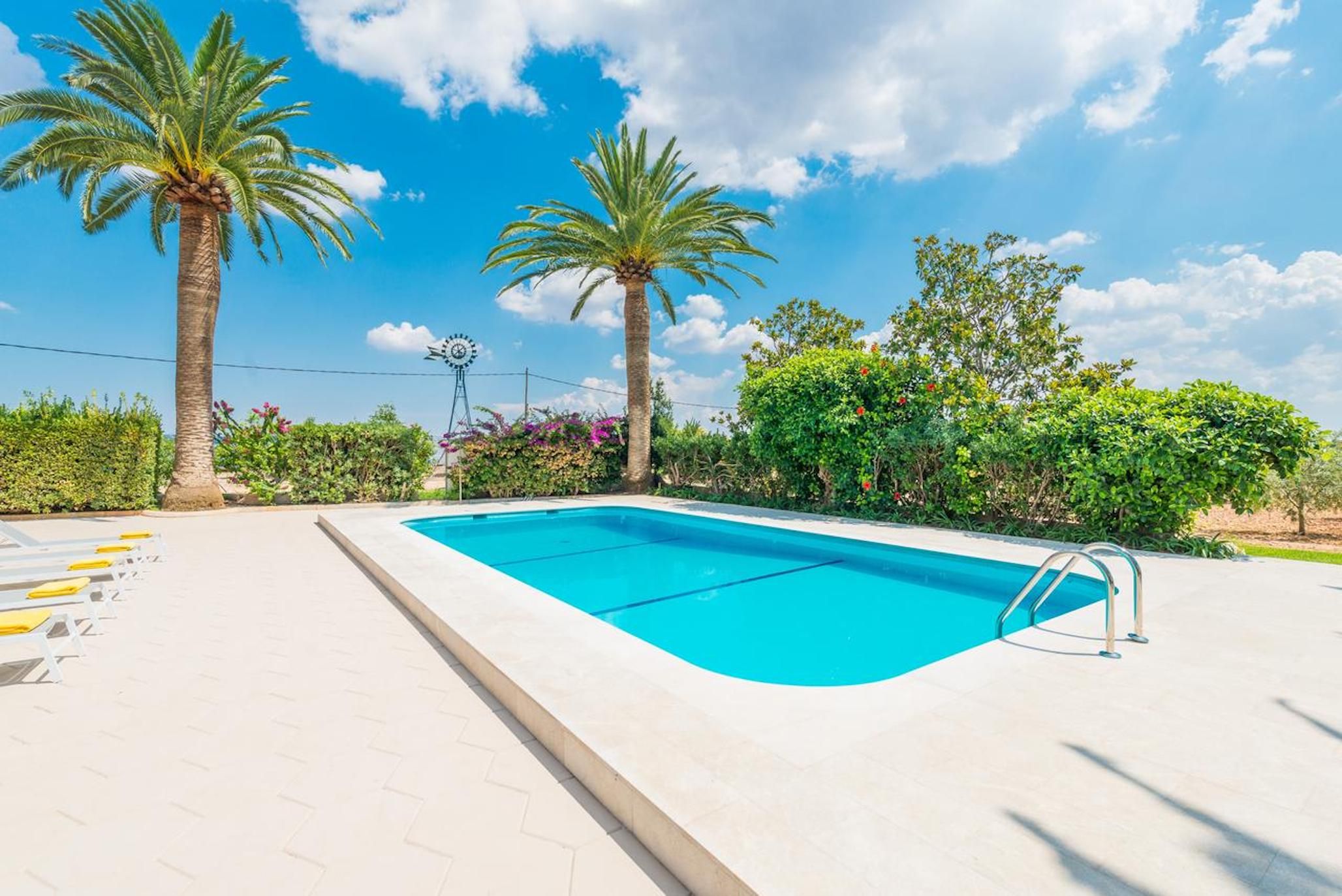 Nestled in a quiet rural area on the outskirts of Marratxí, yet less than fifteen minutes by car to bustling Palma, this villa promises the best of both worlds. Comfortable for a family or group of friends, the interiors are minimalist but offer everything needed for a relaxing Spanish stay. In contrast, the outdoor space comes alive. Sun-kissed terraces, a private pool, alfresco dining opportunities and quiet chill-out nooks under swaying palm trees – there’s so much you’ll fall in love with here.