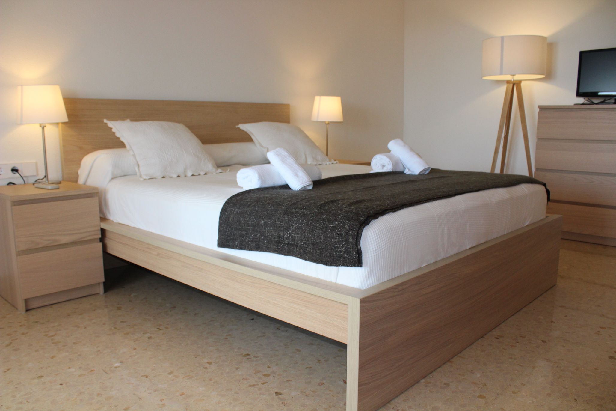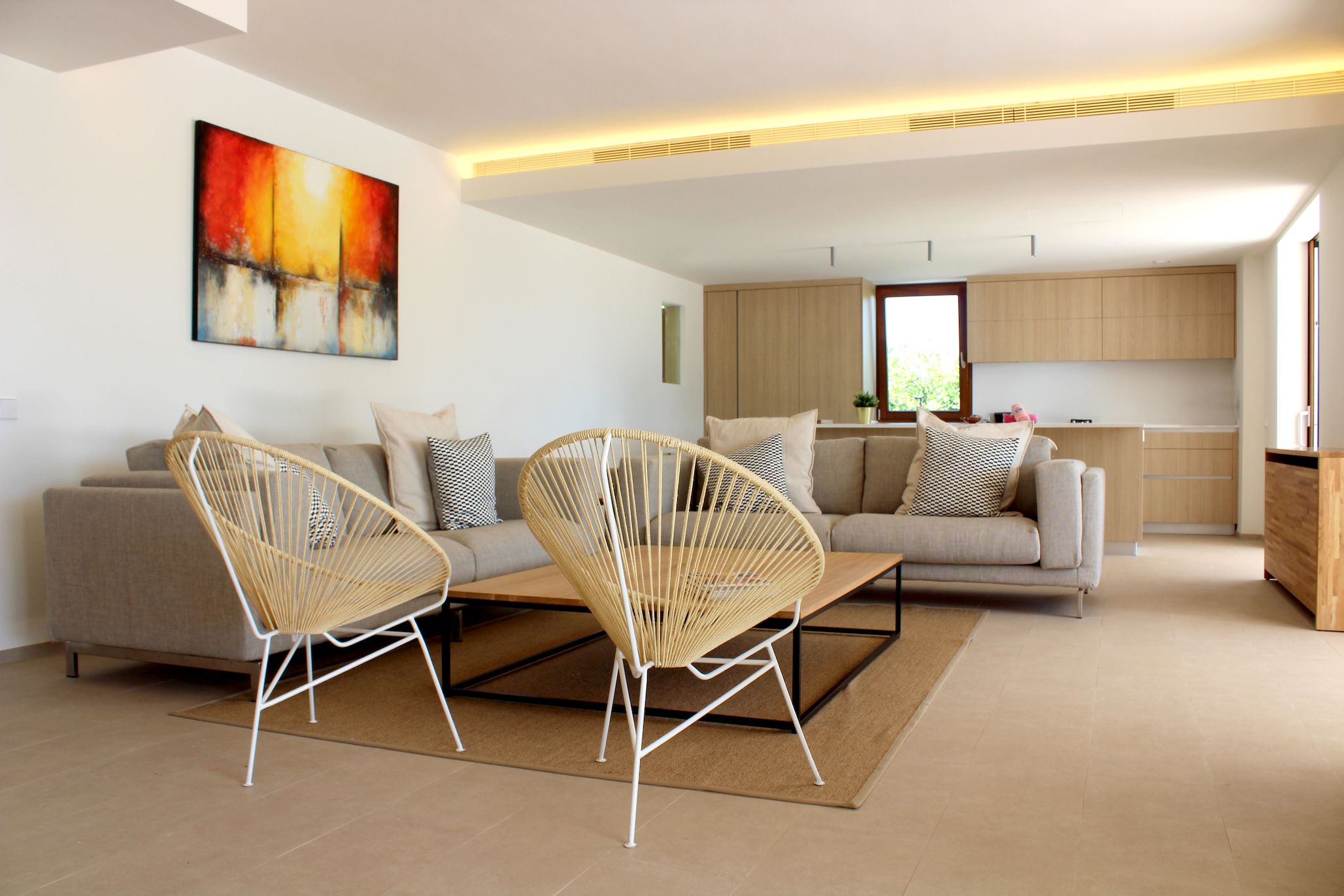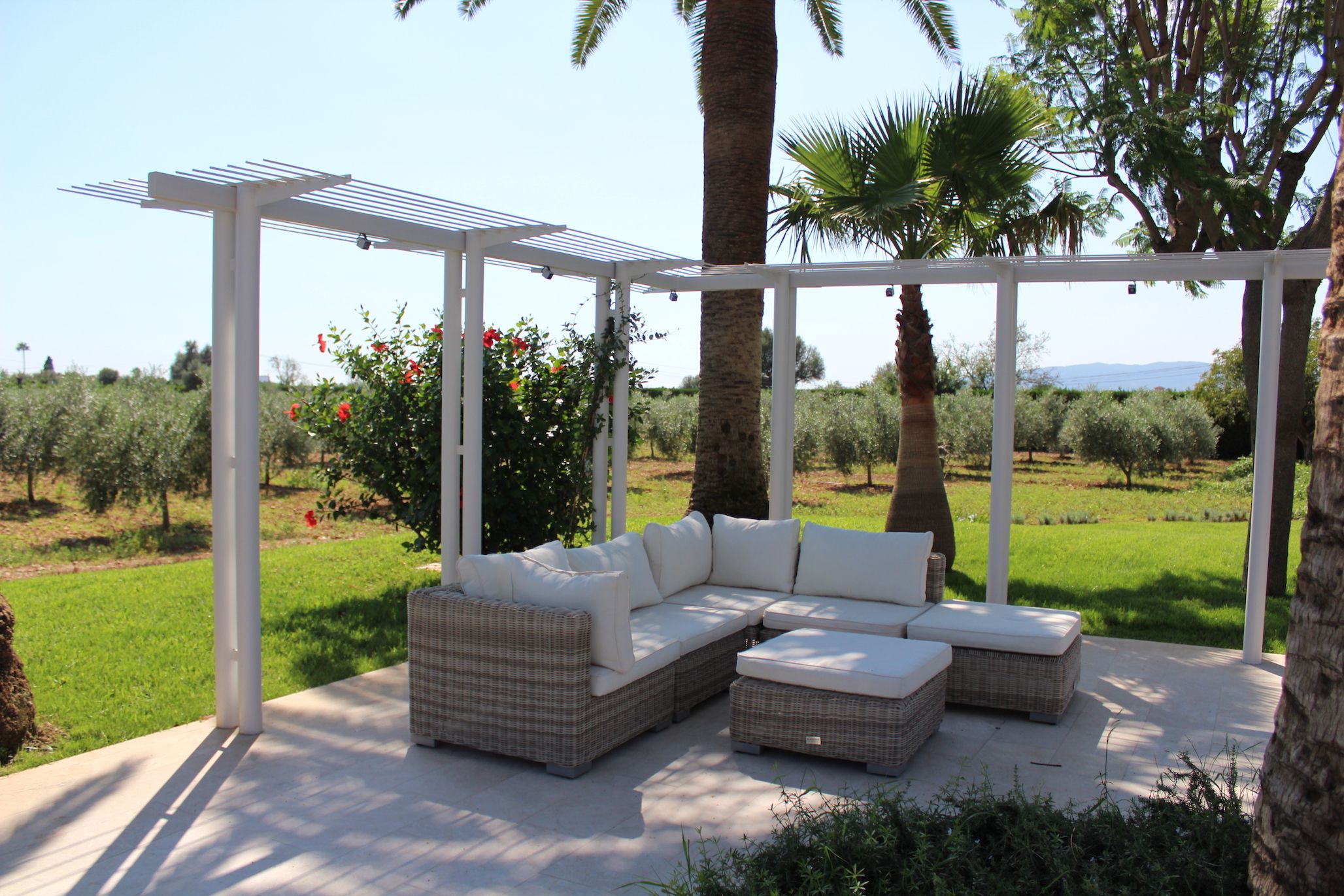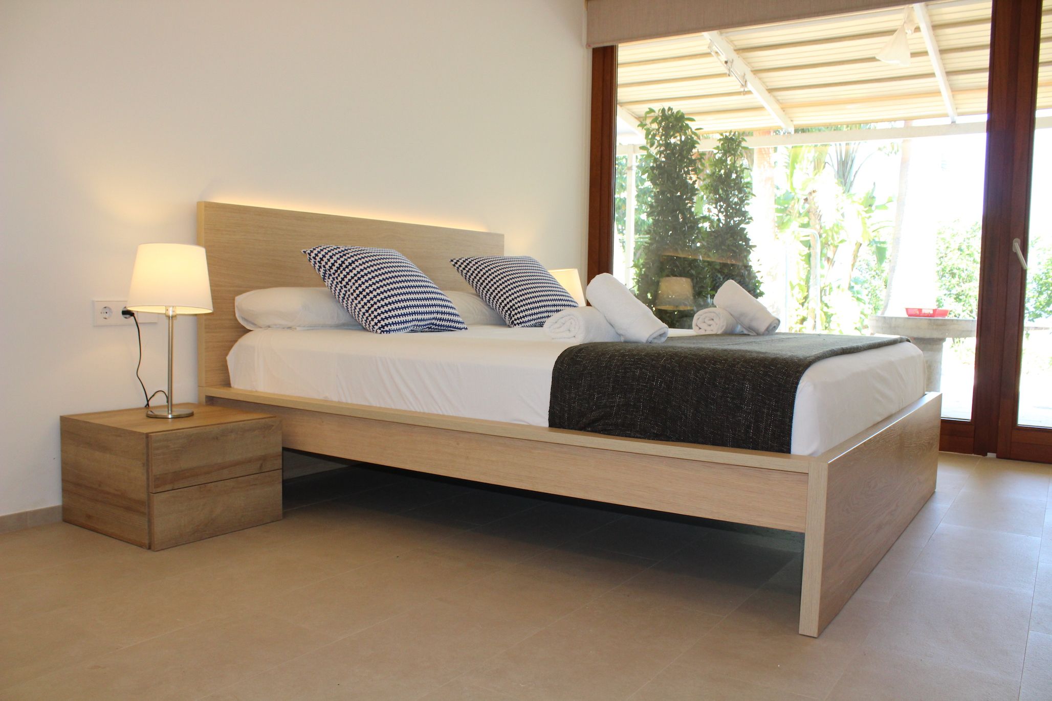 Nestled in a quiet rural area on the outskirts of Marratxí, yet less than fifteen minutes by car to bustling Palma, this villa promises the best of both worlds. Comfortable for a family or group of friends, the interiors are minimalist but offer everything needed for a relaxing Spanish stay. In contrast, the outdoor space comes alive. Sun-kissed terraces, a private pool, alfresco dining opportunities and quiet chill-out nooks under swaying palm trees – there’s so much you’ll fall in love with here.