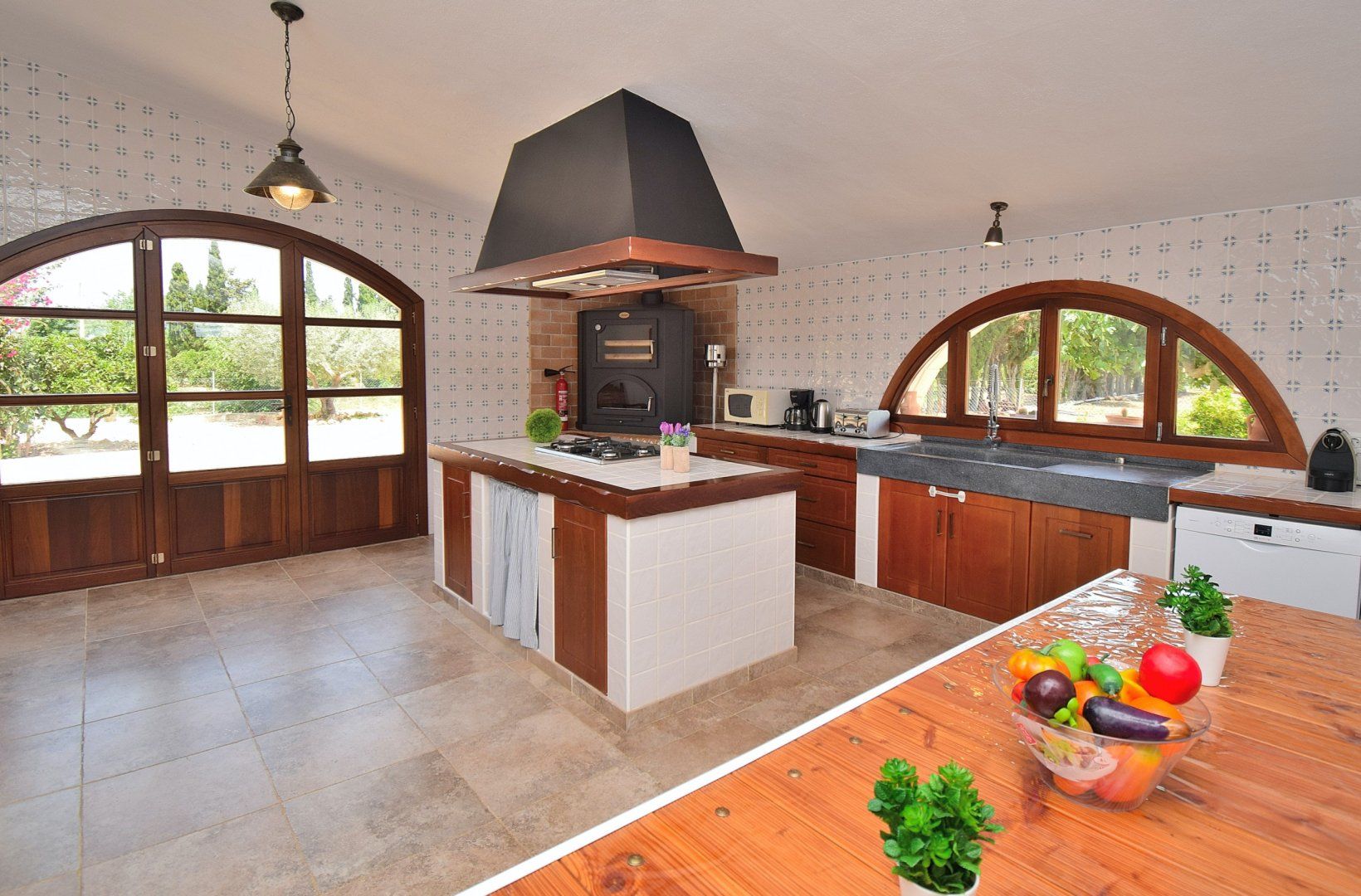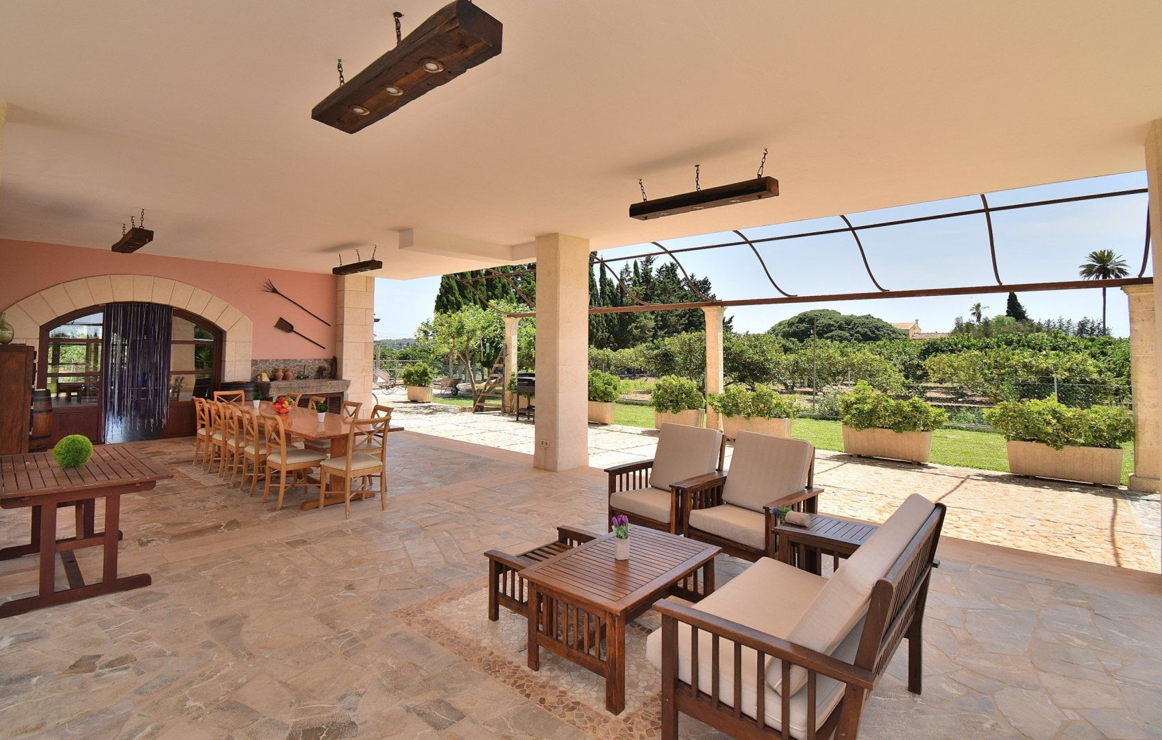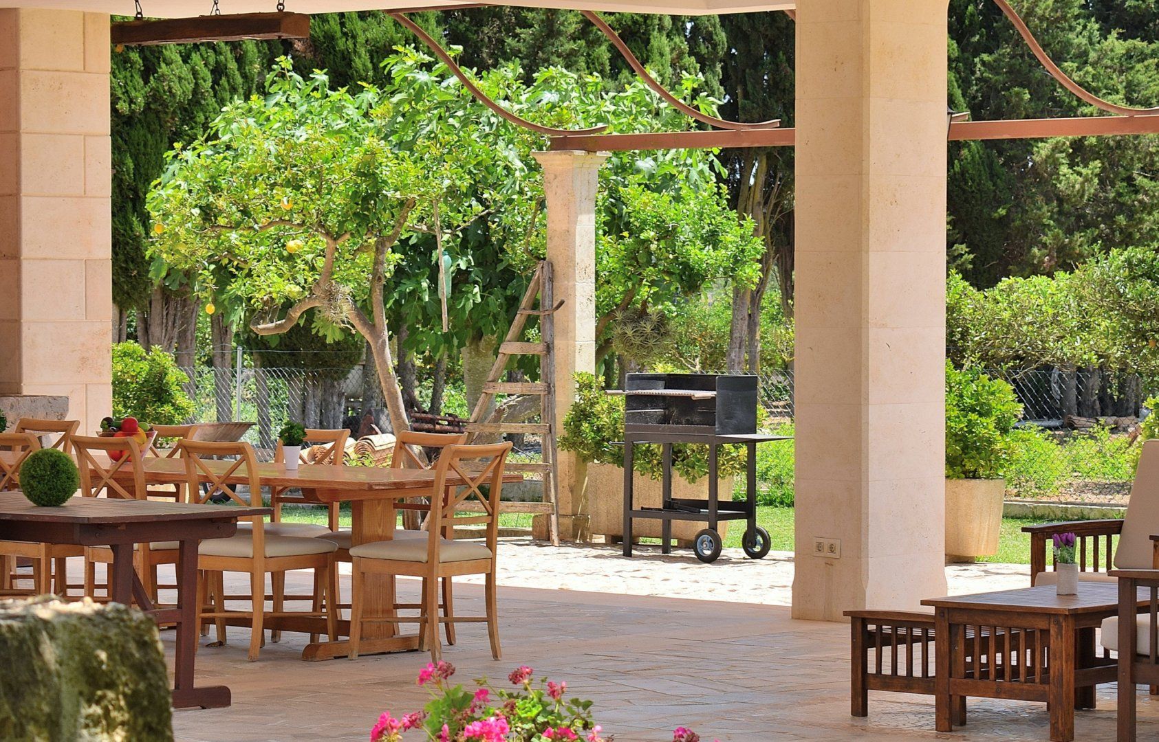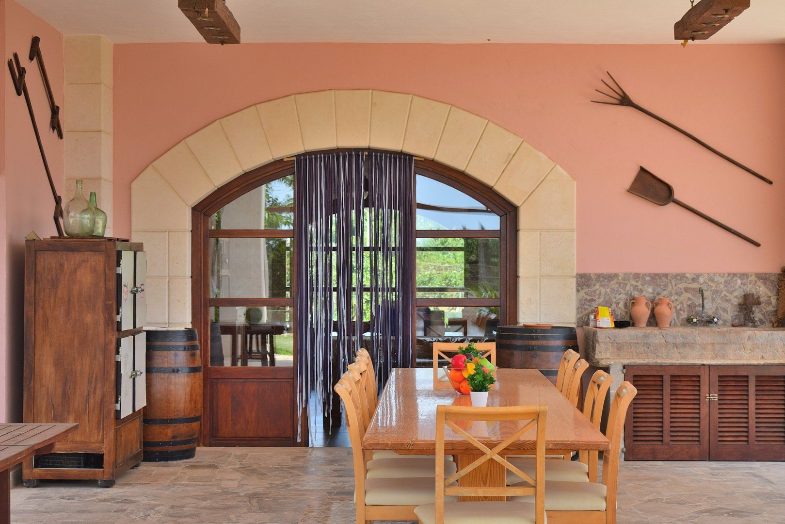 Wake up from peaceful slumbers in your elegant bedroom, glide across the tiles and sip your morning coffee on the outdoor patio. Whip up breakfast in the country-style kitchen, then gather everyone in the outdoor dining room to enjoy an array of local produce – we suggest Mallorca's Red Sheep Cheese, some fresh tomatoes and pillowy bread. Next, sprawl out by the pool with your holiday read and soak up the Mediterranean sun – there’s a play area for the children here too. Why not try out some tapas dishes for dinner? The dining room under the pergola is an idyllic setting to savour your hard work, accompanied by a glass of Manto Negro, of course.