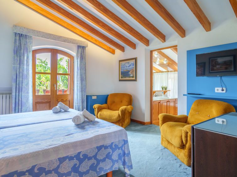 "Marjals", 10-room villa 1'075 m2 on 2 levels. Object suitable for 16 adults. Spacious and bright, comfortable and rustic furnishings: large living room with satellite TV, digital TV and flat screen. 1 double bedroom with panoramic window Dressing room with 2 beds (90 cm, length 200 cm), hand-basin, shower/bidet/WC, digital TV, flat screen, air conditioning and forced-air heating.