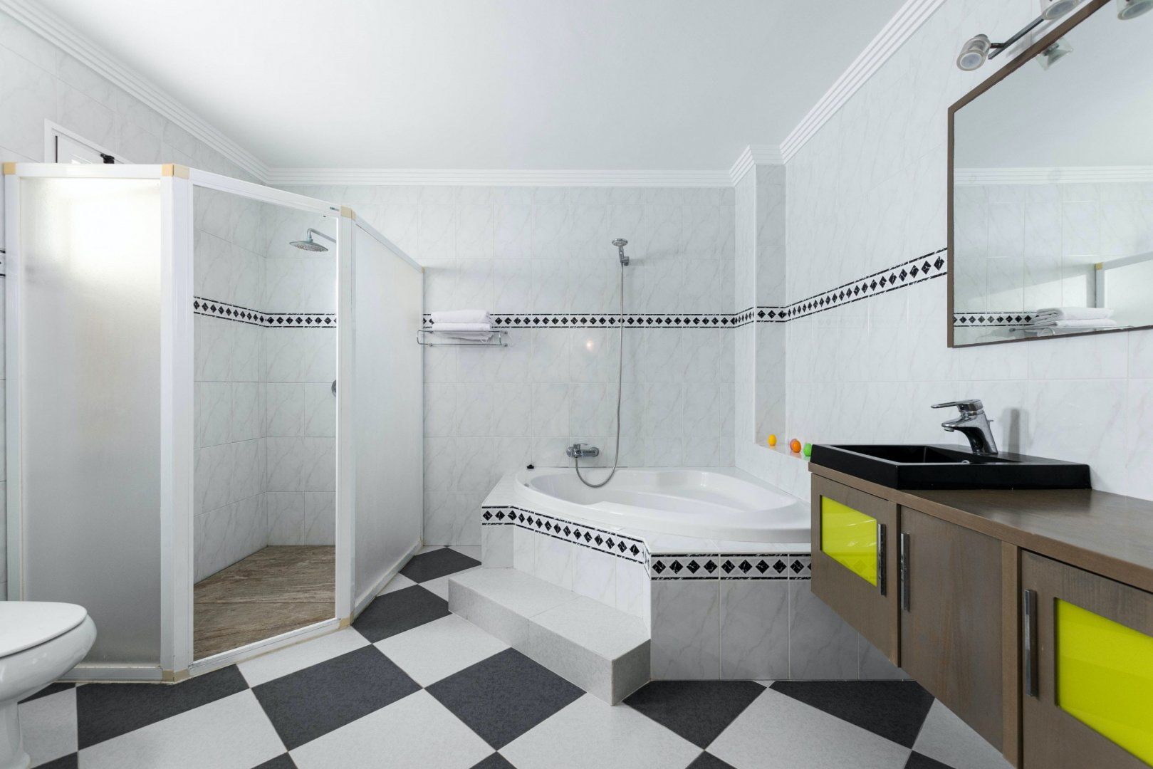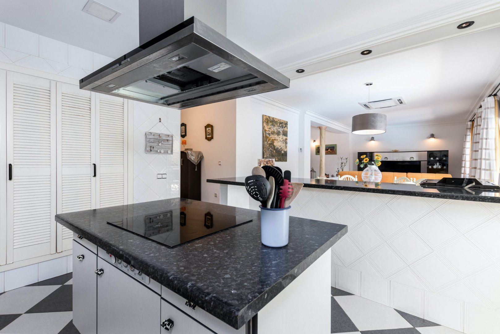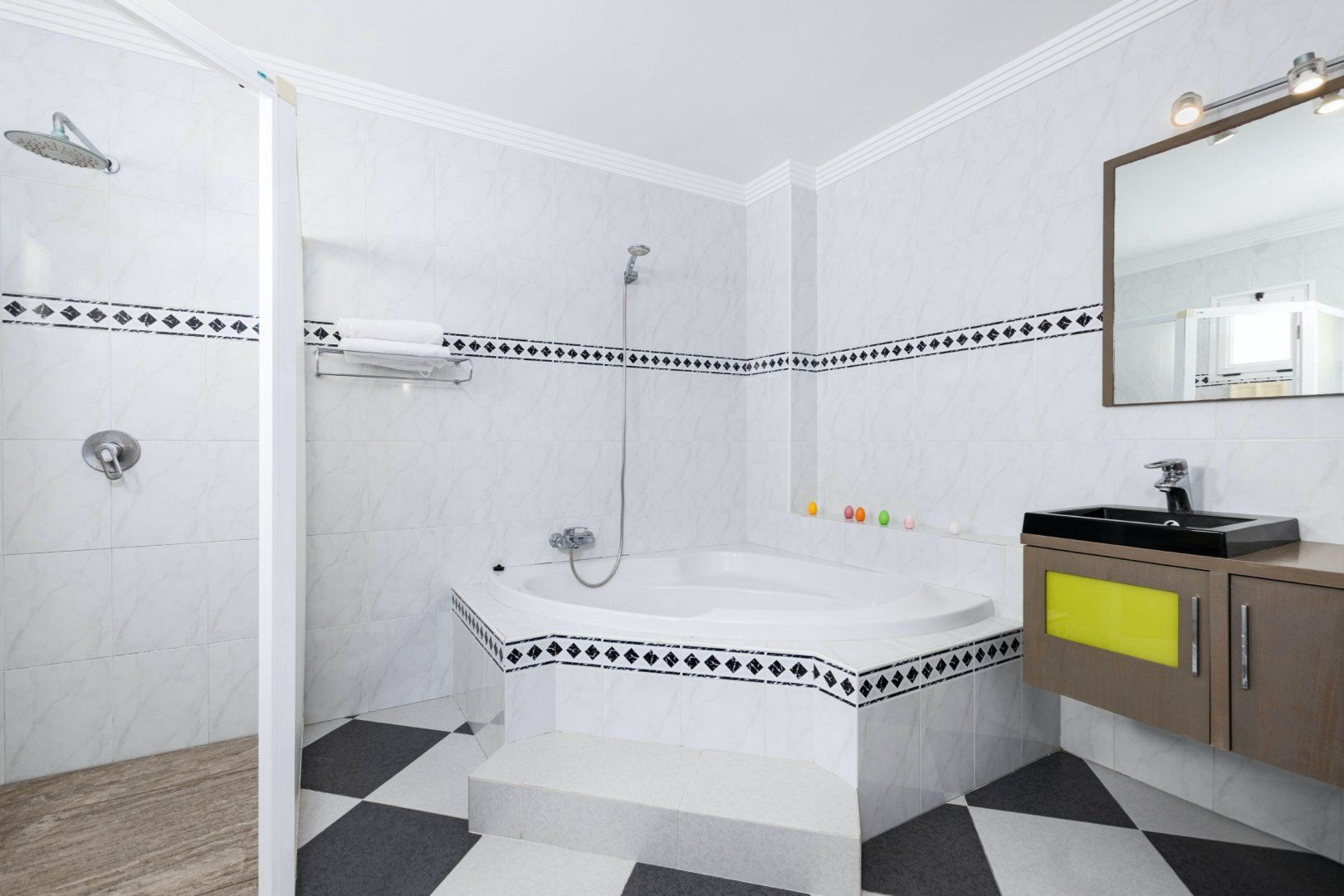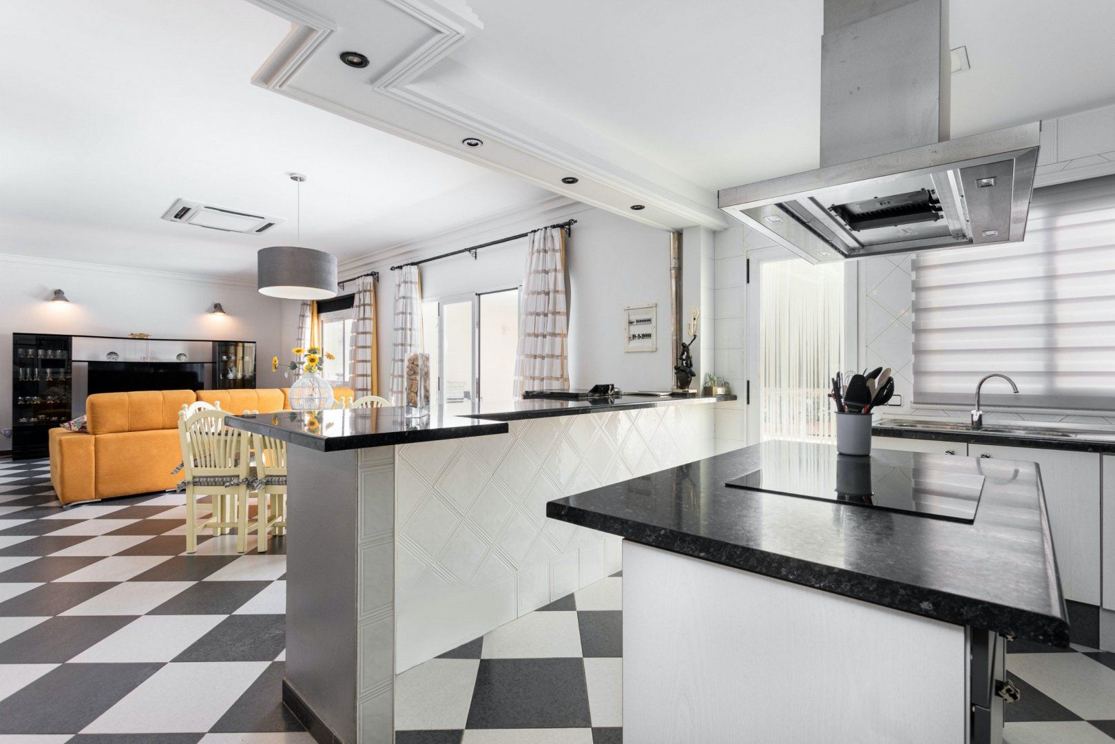 The villa is modern and vibrant, with splashes of colour in every room. We love the kitchen and living space, which is the heart of the home. There’s plenty of room for everyone to gather together, whether you’re playing games in the living room or are cooking in the modern kitchen.