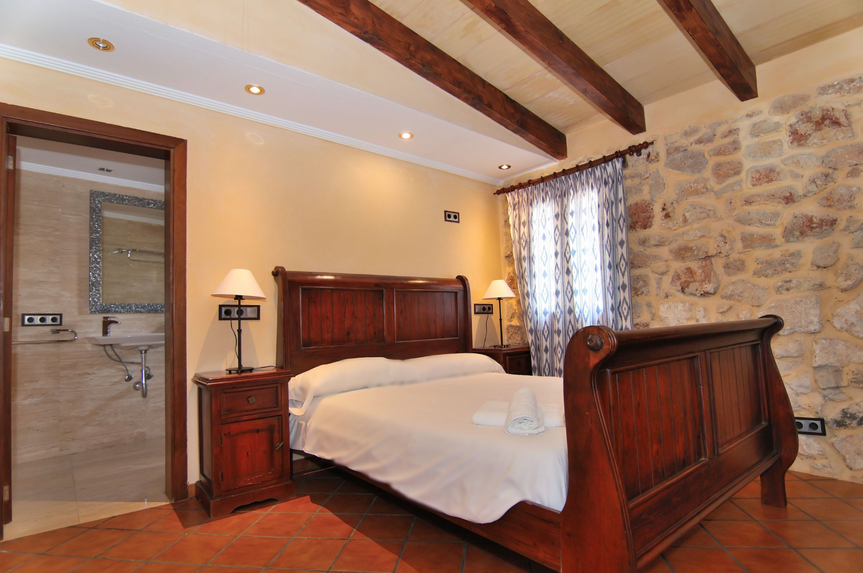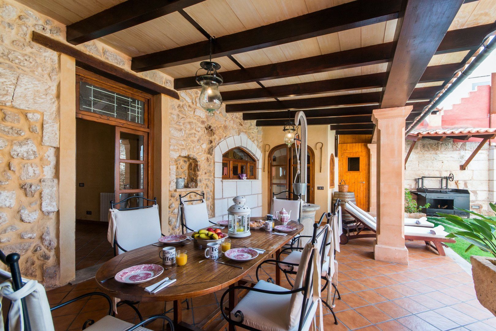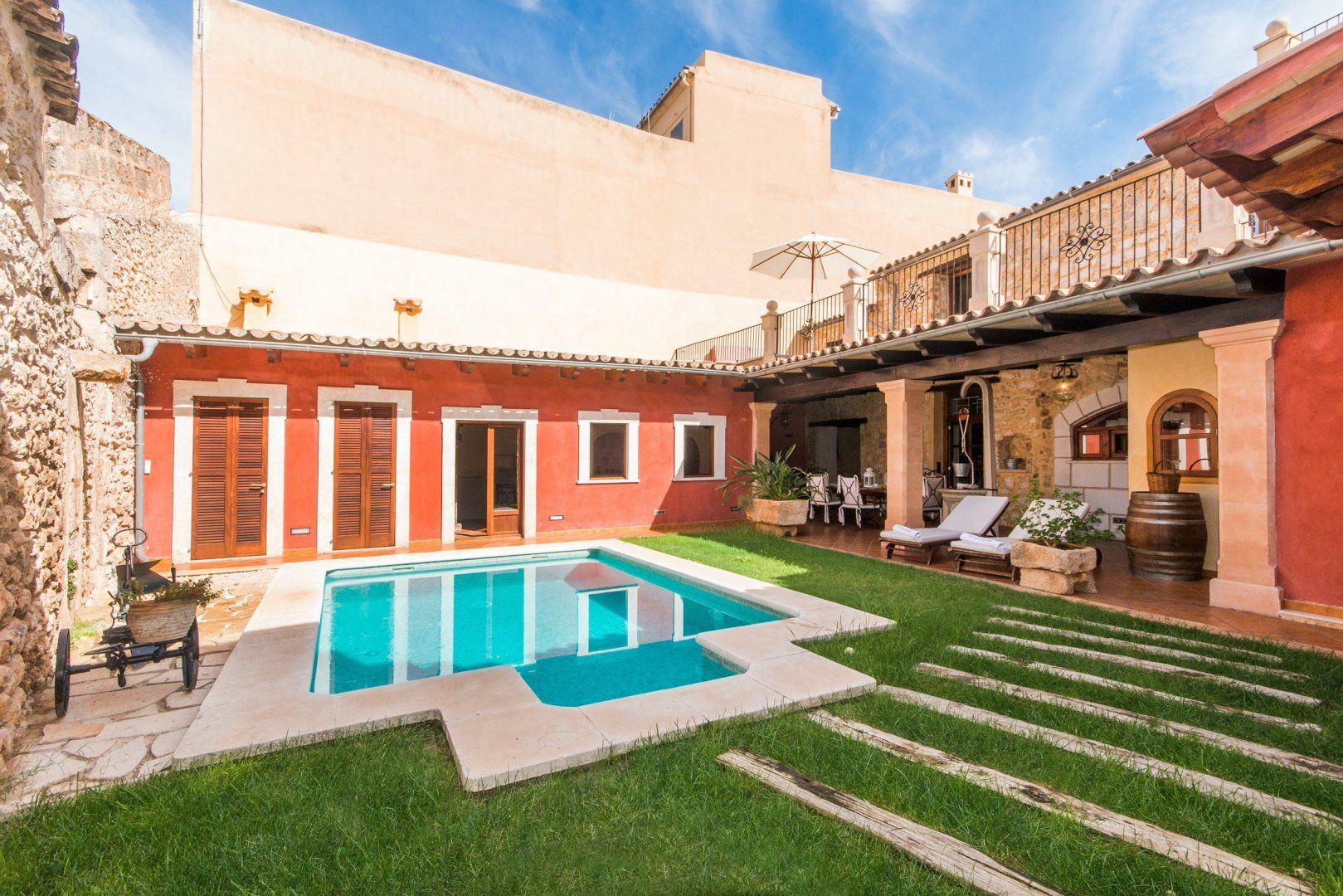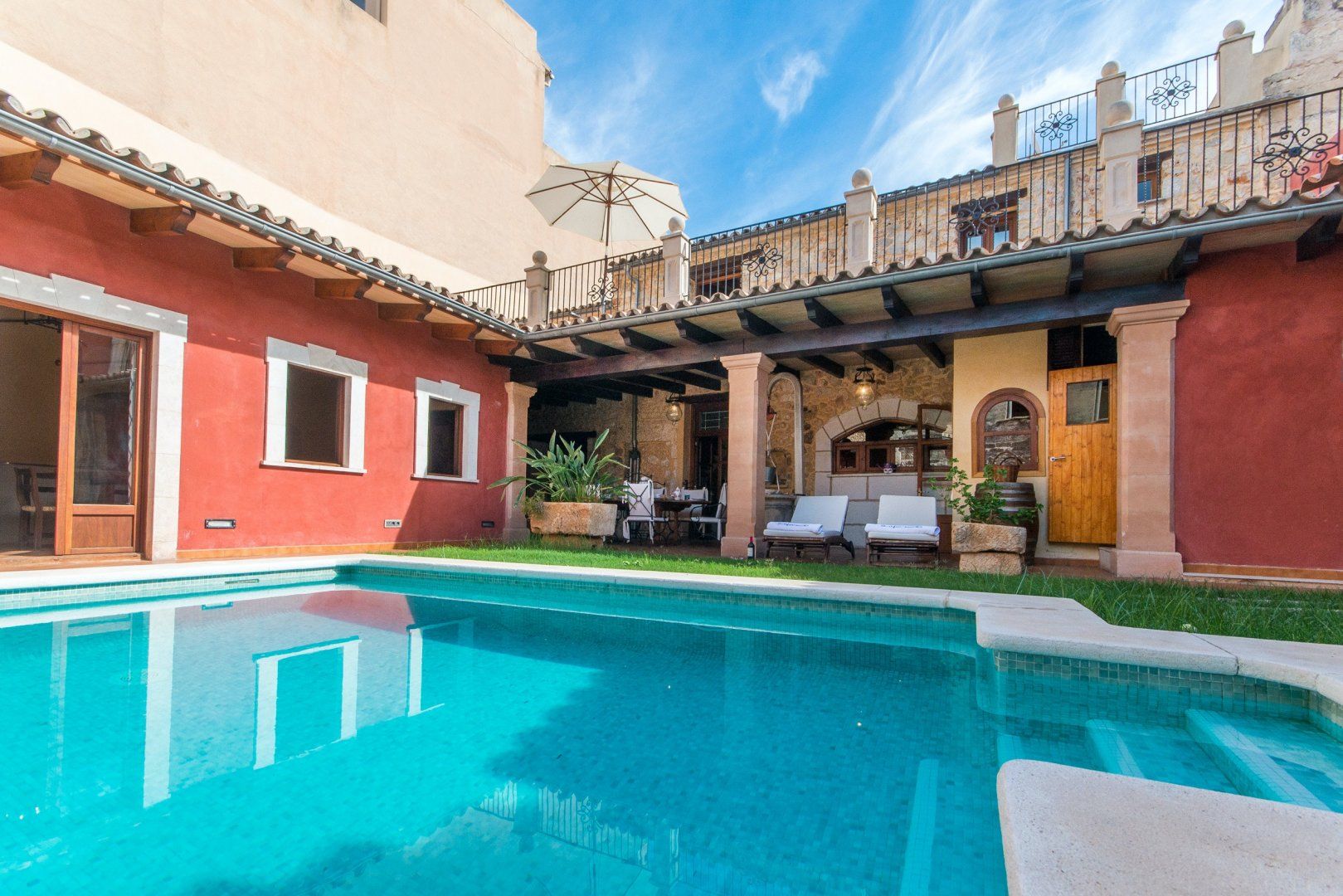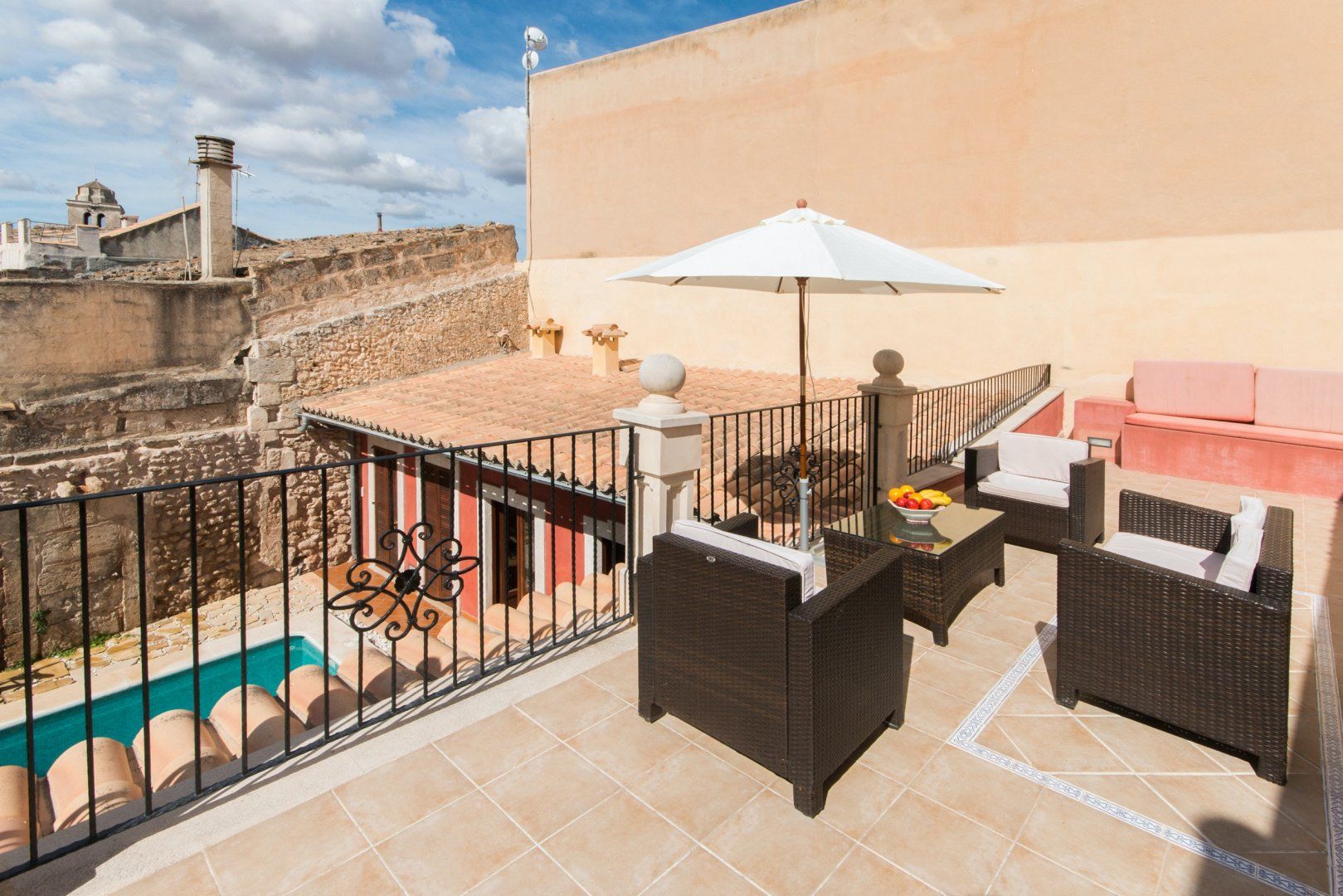 Wake up blissfully each morning in one of the charming bedrooms before stepping out onto the Cotto tiles and across to the sun-soaked roof terrace – here, you can enjoy your morning coffee and turn pages of your holiday read as the sun slowly rises. When the rest of your group awakens, enjoy a leisurely breakfast alfresco before spending the rest of the day poolside. Sprawl out on loungers and soak up the Mallorcan mentality, then dive into the pristine pool for a cooling dip. Once you've achieved your golden glow, gather on the patio for a grilled tapas feast – why not grill up some local seafood on the barbecue? We especially love the rooftop lounge – pour yourselves a Palo de Mallorca and chat late into the night.
