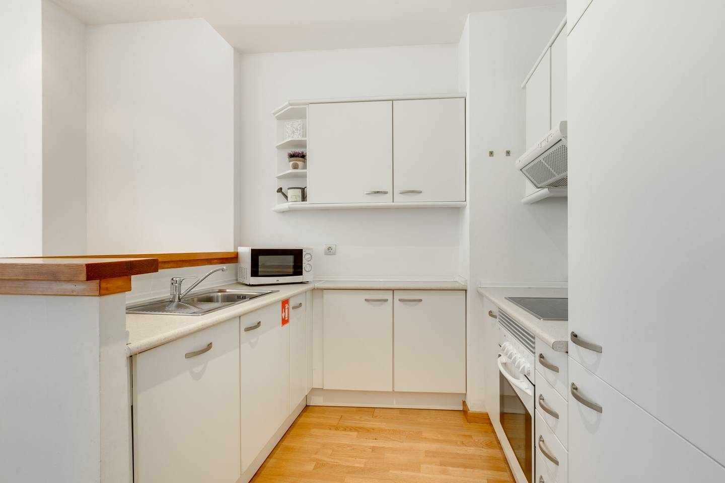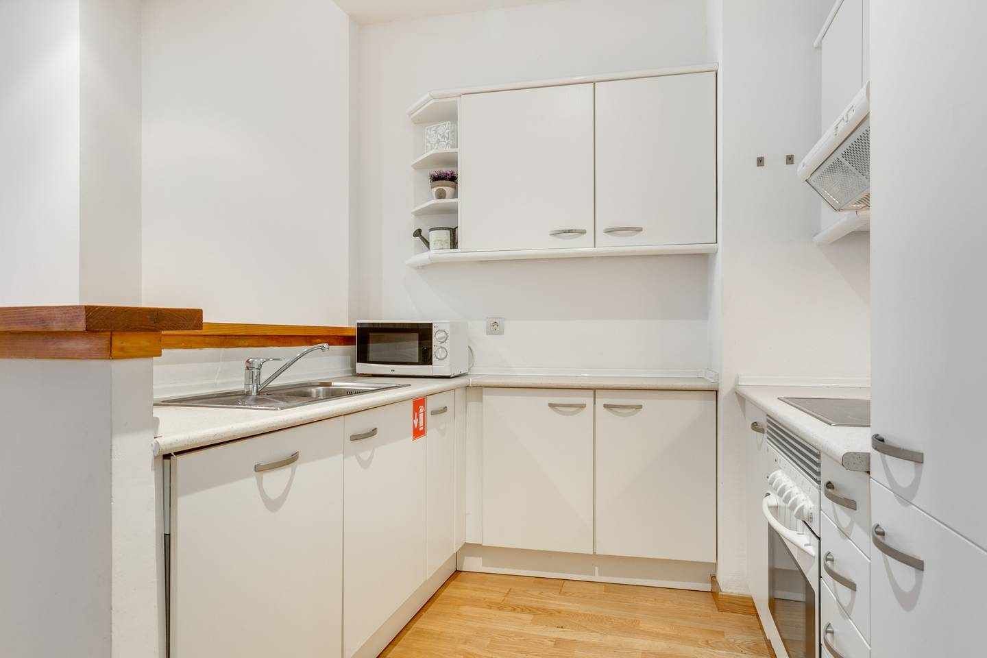 Although this apartment's located in an eighteenth-century mansion in Palma's Old Town, the interior is delightfully modern. The minimalist kitchen is dominated by sleek finishes, while the living room's stark white walls and wooden floorboards look similarly smart.