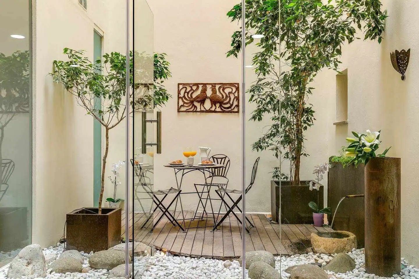 But this place hides a few surprises too. At the heart of the home is a private inner courtyard garden that bathes the living areas in natural light. And over in the bedrooms, which each boast access to a charming balcony and their own bathroom, this home keeps on delivering the unexpected. Cast your eyes upwards to discover the most astonishingly beautiful frescoes we ever did see.