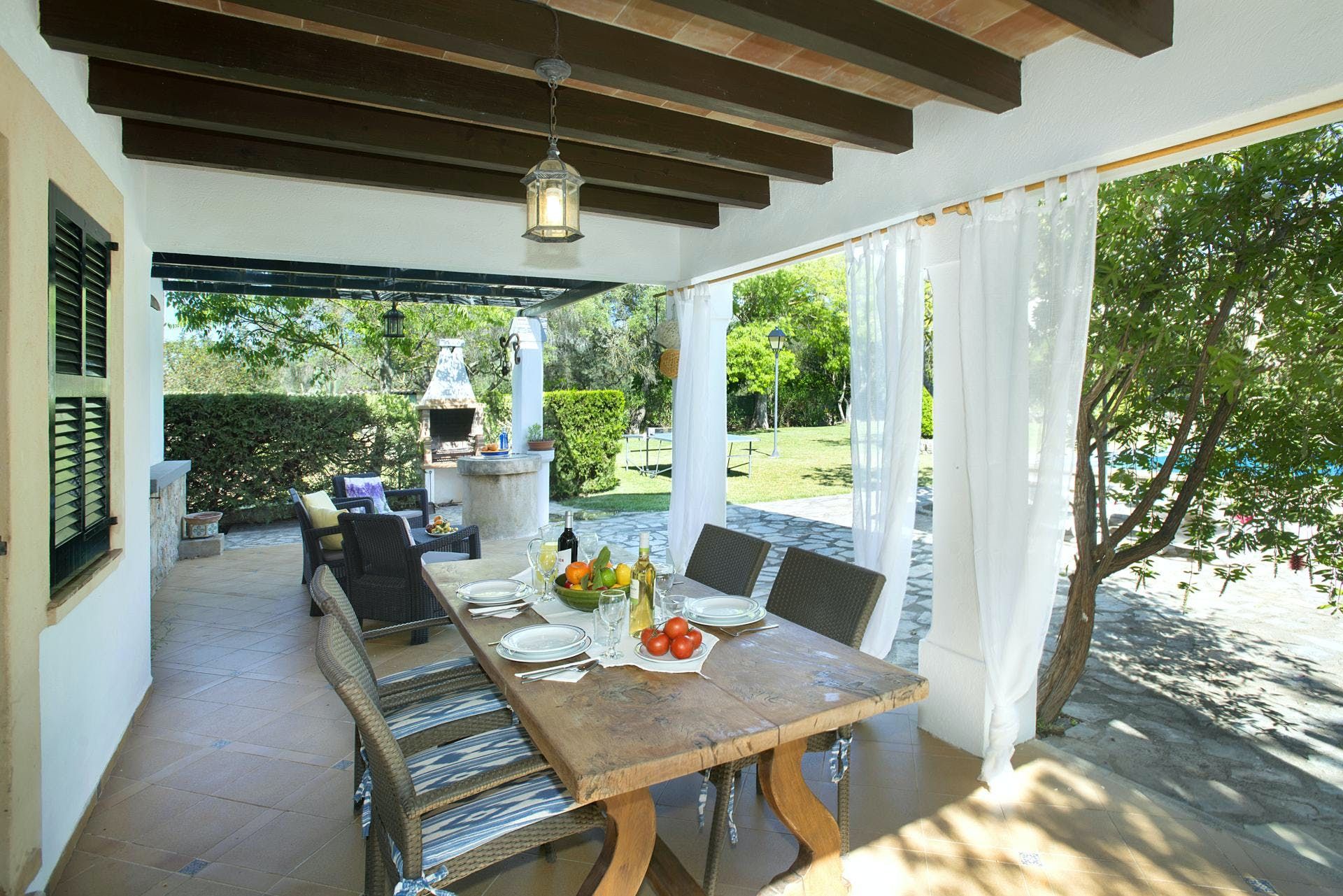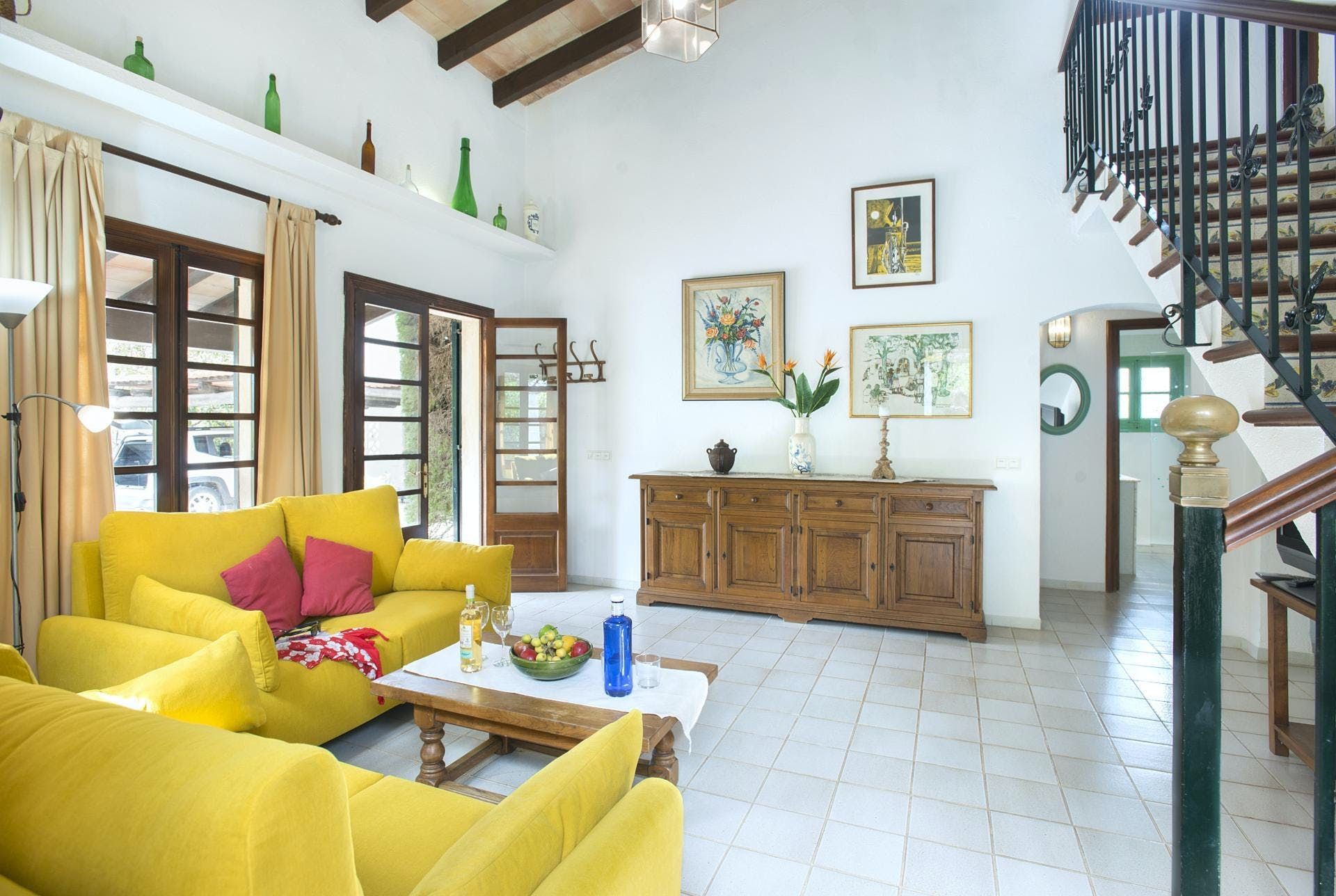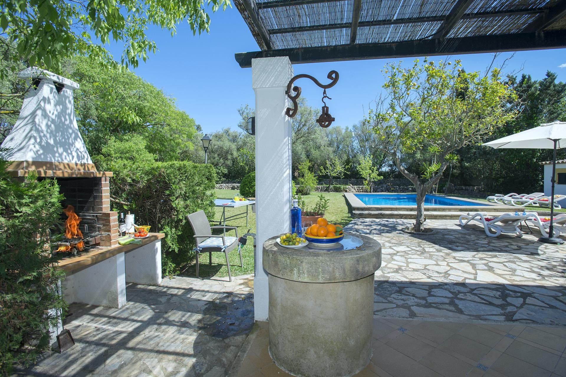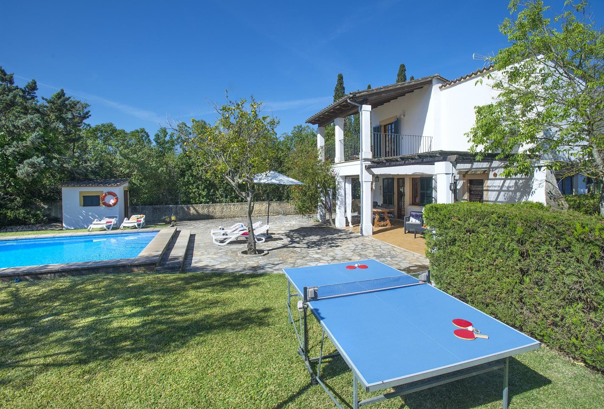 Sitting at the end of a quiet country lane in La Font, this villa invites ample relaxation within its lush green grounds. A private pool takes centre stage in its outdoors, with a shaded alfresco dining spot and a plethora of sun loungers completing the idyllic scene. A blend of contemporary and traditional decor can be found inside, with beamed ceilings and practical furnishings providing a warm welcome. And the upstairs main bedroom offers a private terrace – ideal for enjoying a sundowner while taking in views over the verdant grounds. When you’re not spending time at home, hop in the car to explore Pollença Town (less than a ten-minute drive) or make a beeline for Port de Pollença with its stretch of sandy shoreline.