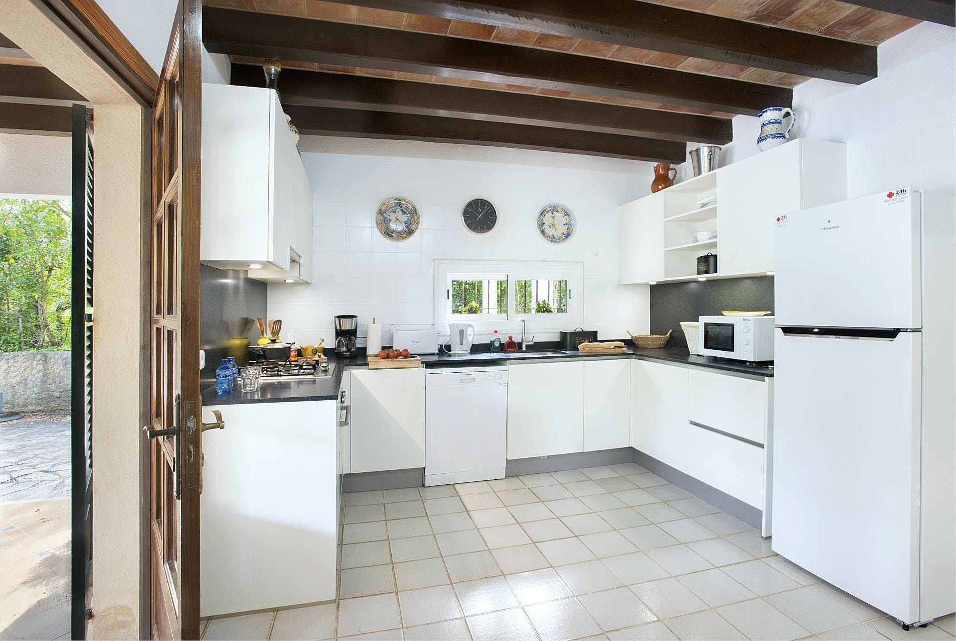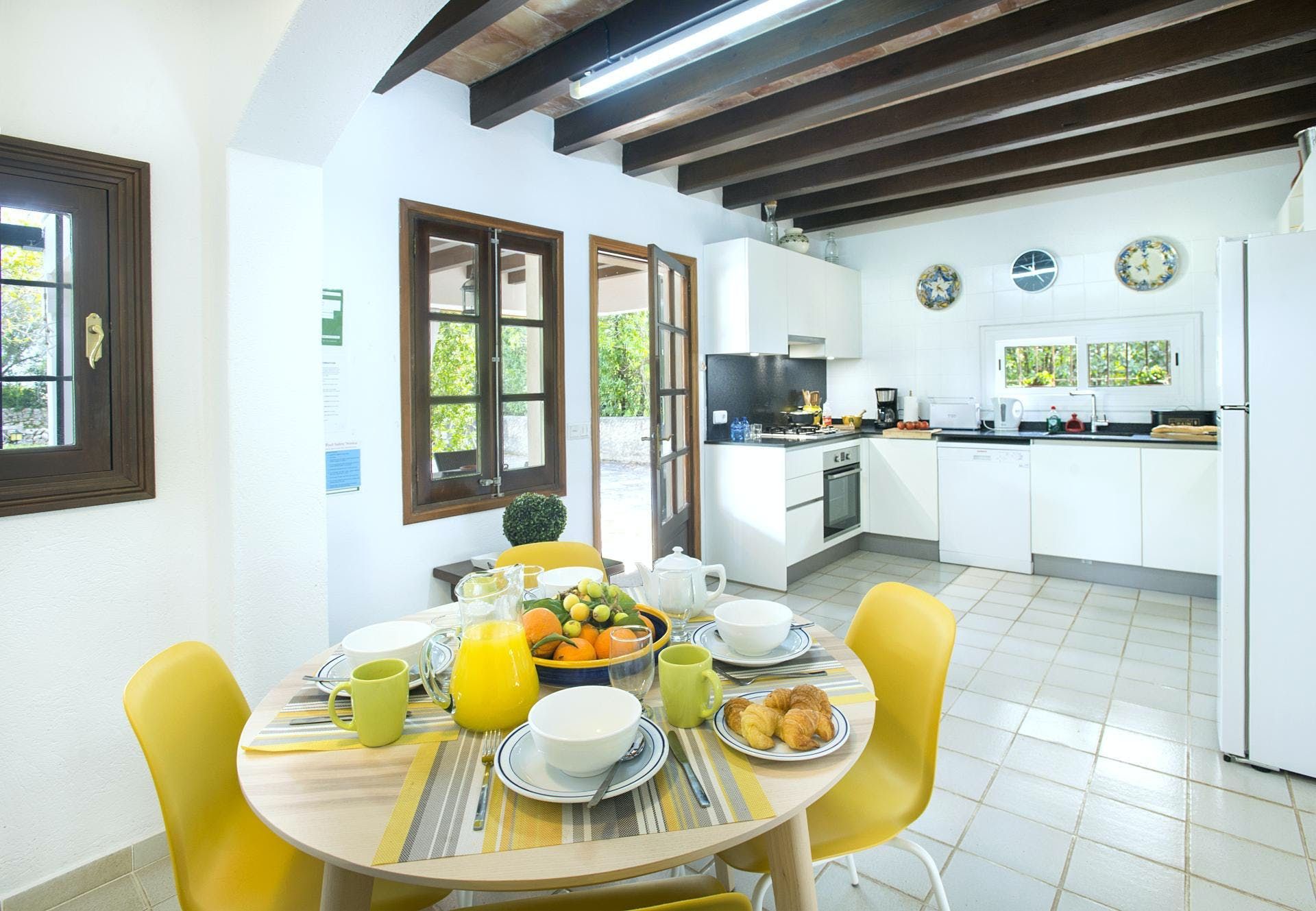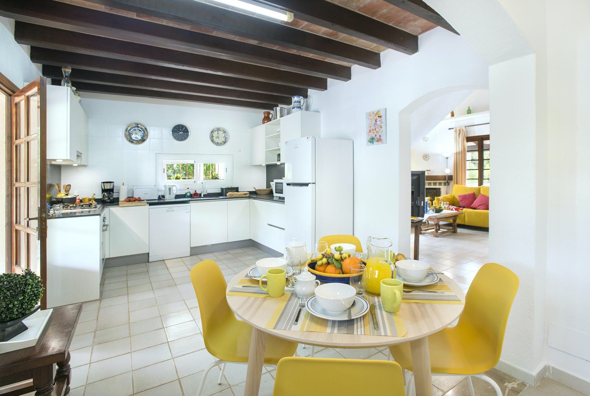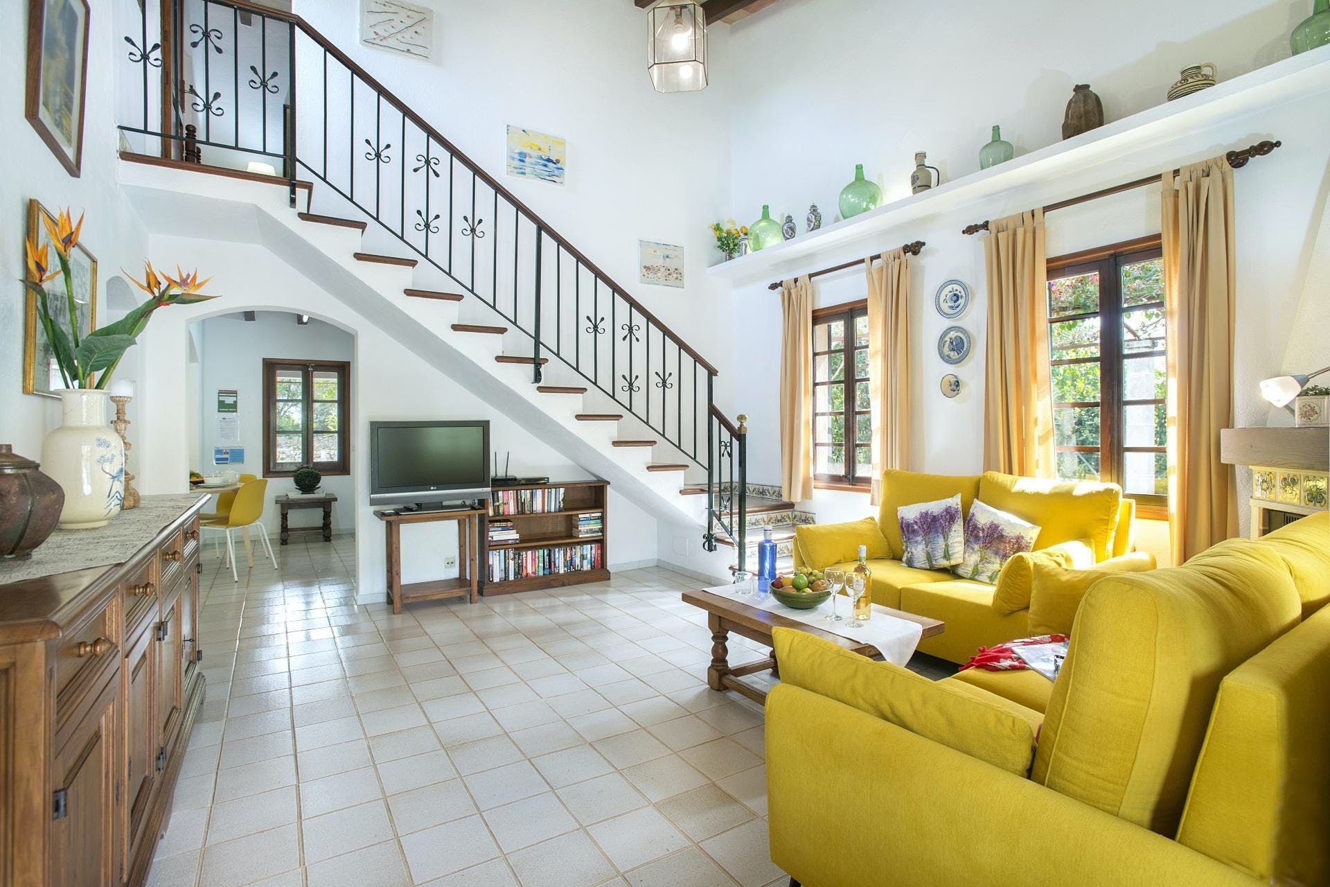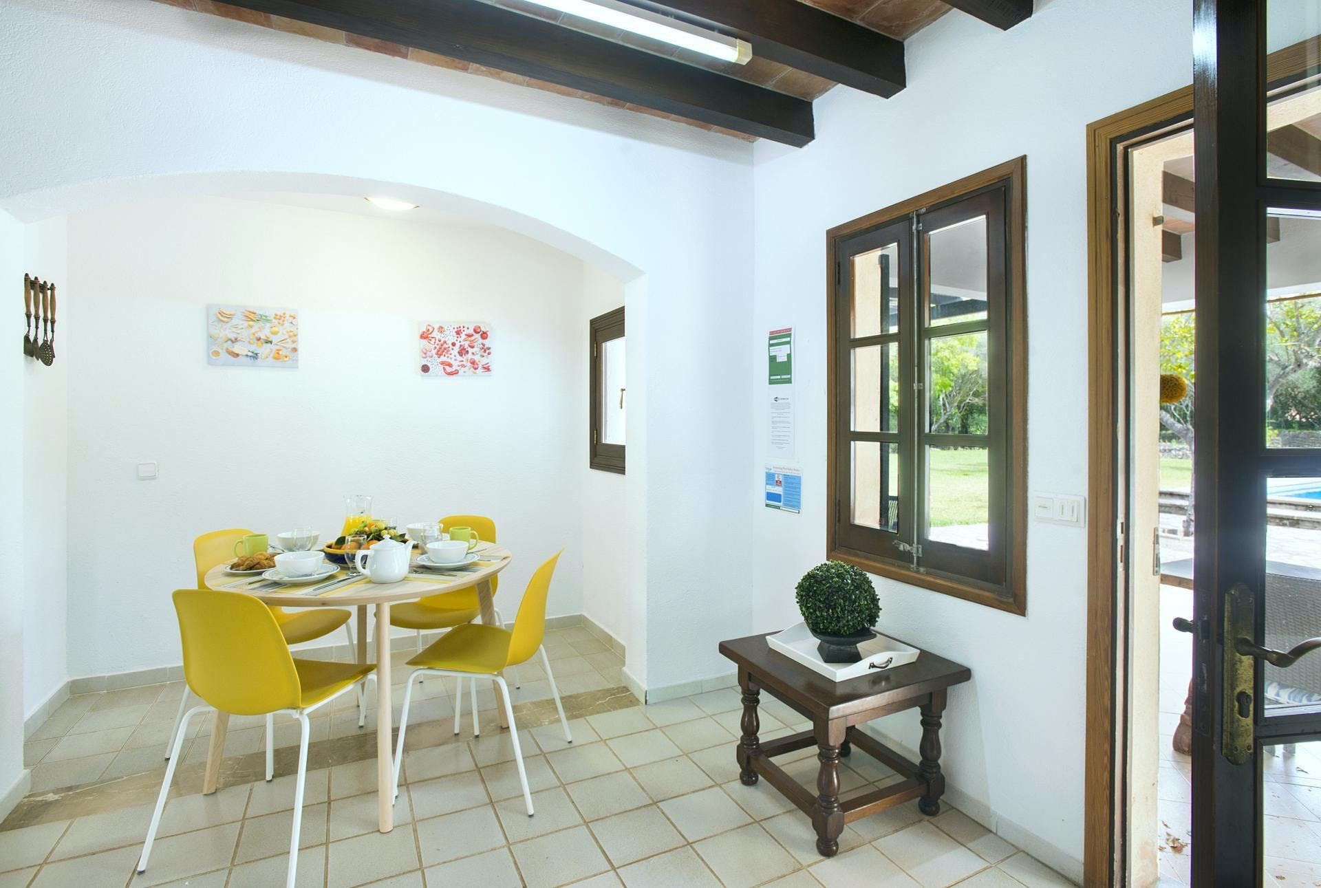 Sitting at the end of a quiet country lane in La Font, this villa invites ample relaxation within its lush green grounds. A private pool takes centre stage in its outdoors, with a shaded alfresco dining spot and a plethora of sun loungers completing the idyllic scene. A blend of contemporary and traditional decor can be found inside, with beamed ceilings and practical furnishings providing a warm welcome. And the upstairs main bedroom offers a private terrace – ideal for enjoying a sundowner while taking in views over the verdant grounds. When you’re not spending time at home, hop in the car to explore Pollença Town (less than a ten-minute drive) or make a beeline for Port de Pollença with its stretch of sandy shoreline.