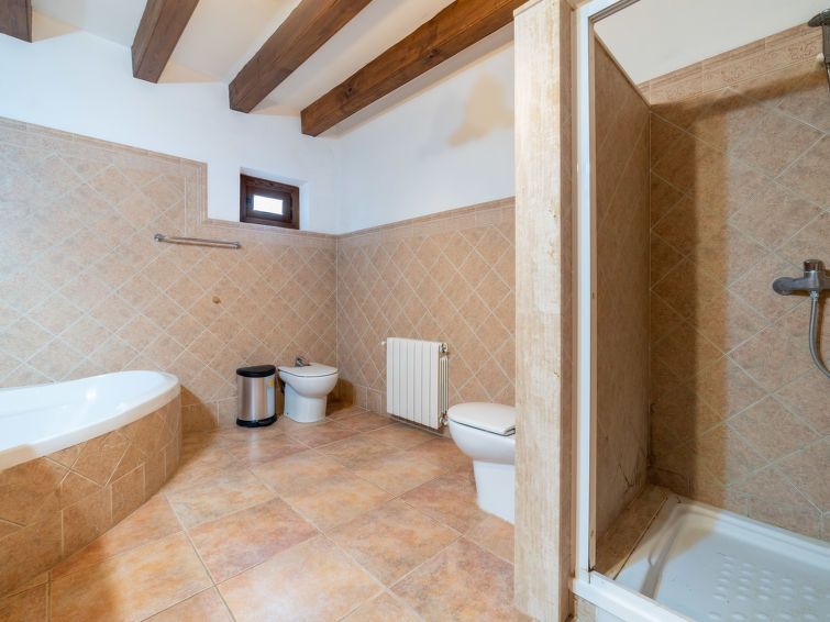 "Can Segue", 6-room house 200 m2 on 2 levels. Spacious, comfortable and beautiful furnishings: dining room with dining table. Exit to the terrace. 1 room with 1 french bed (150 cm), fan. Mezzanine. Living room with open-hearth fireplace and satellite TV. Exit to the terrace. Kitchen (oven, dishwasher, 4 gas rings, microwave, freezer, electric coffee machine) with dining table.