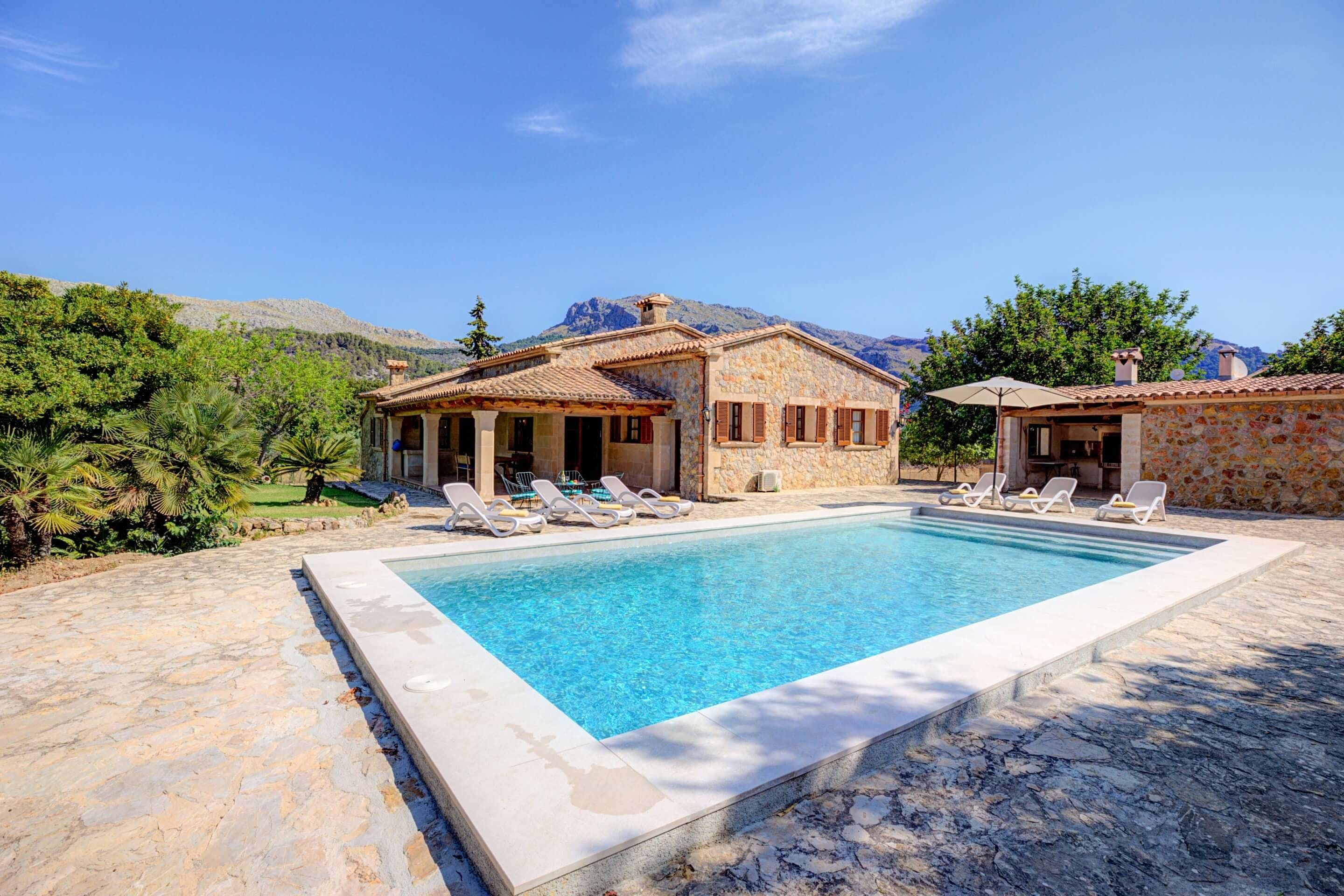 Tucked away in a quiet area of the Son March valley, yet within easy driving distance of Pollença and the beaches beyond, this villa offers up the best of both worlds. While its traditional interiors may not appeal to everyone’s taste, you’ll find everything needed for a relaxing retreat here. For us, the highlight of this home, however, has to be the outdoor space. Sun-kissed terraces, alfresco dining opportunities, a private pool and views of the Tramuntana mountains – what’s not to love?