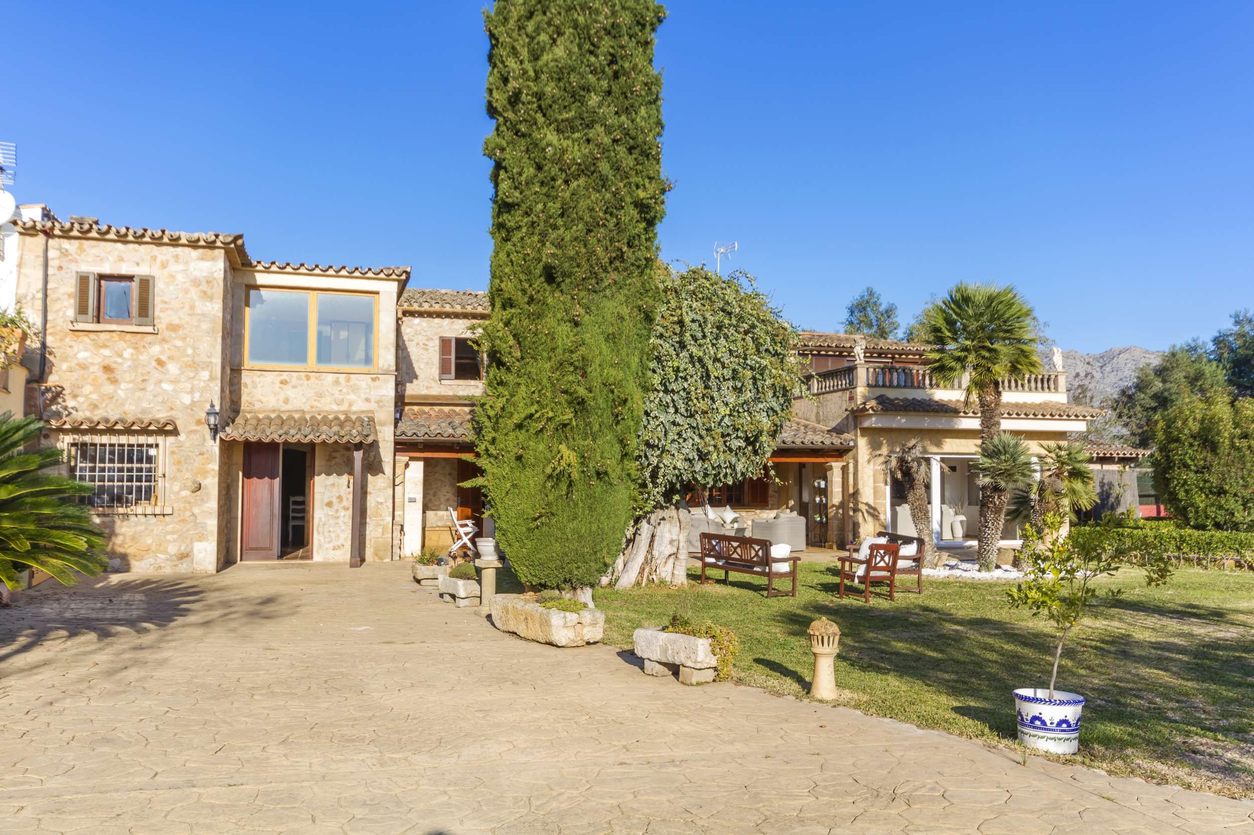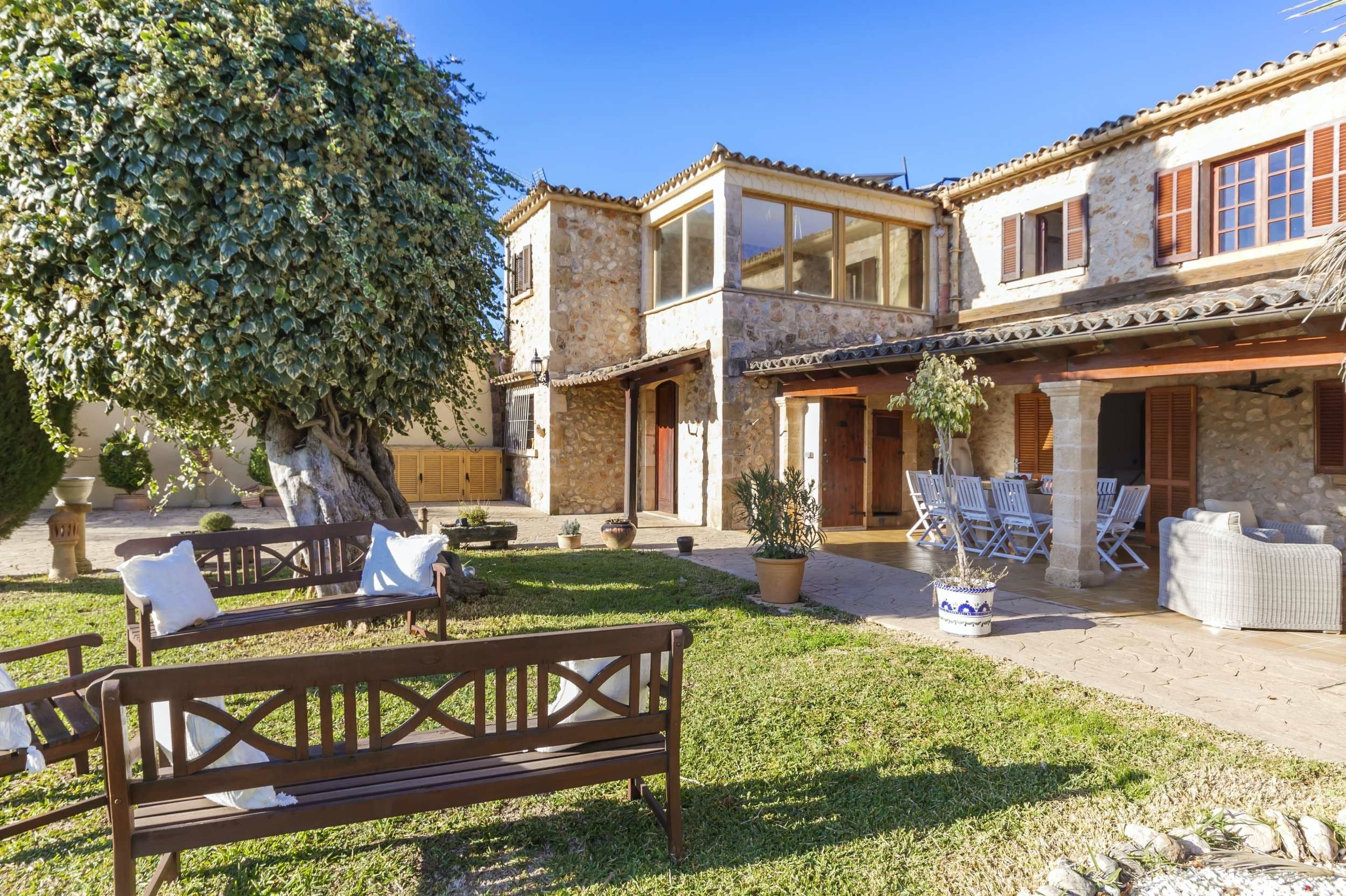 This beautiful stone farmhouse is located between Pollensa and Puerto Pollensa, and is the perfect spot to be for travellers who are looking for peace and privacy during their holiday. If you're not willing to compromise on proximity when it comes to visiting sandy beaches and accessing everything the town of Pollensa has to offer, this is the home for you. Ideal for large families or groups of friends, you'll have access to your own private pool where you can do some paddling or sunbathe and relax, alfresco dining spots for enjoying meals grilled on the barbecue or in the modern kitchen, and the lavish gardens surrounding the home. In the evening, gather in the living room and let the warmth from the cosy fireplace help you unwind after a busy day.