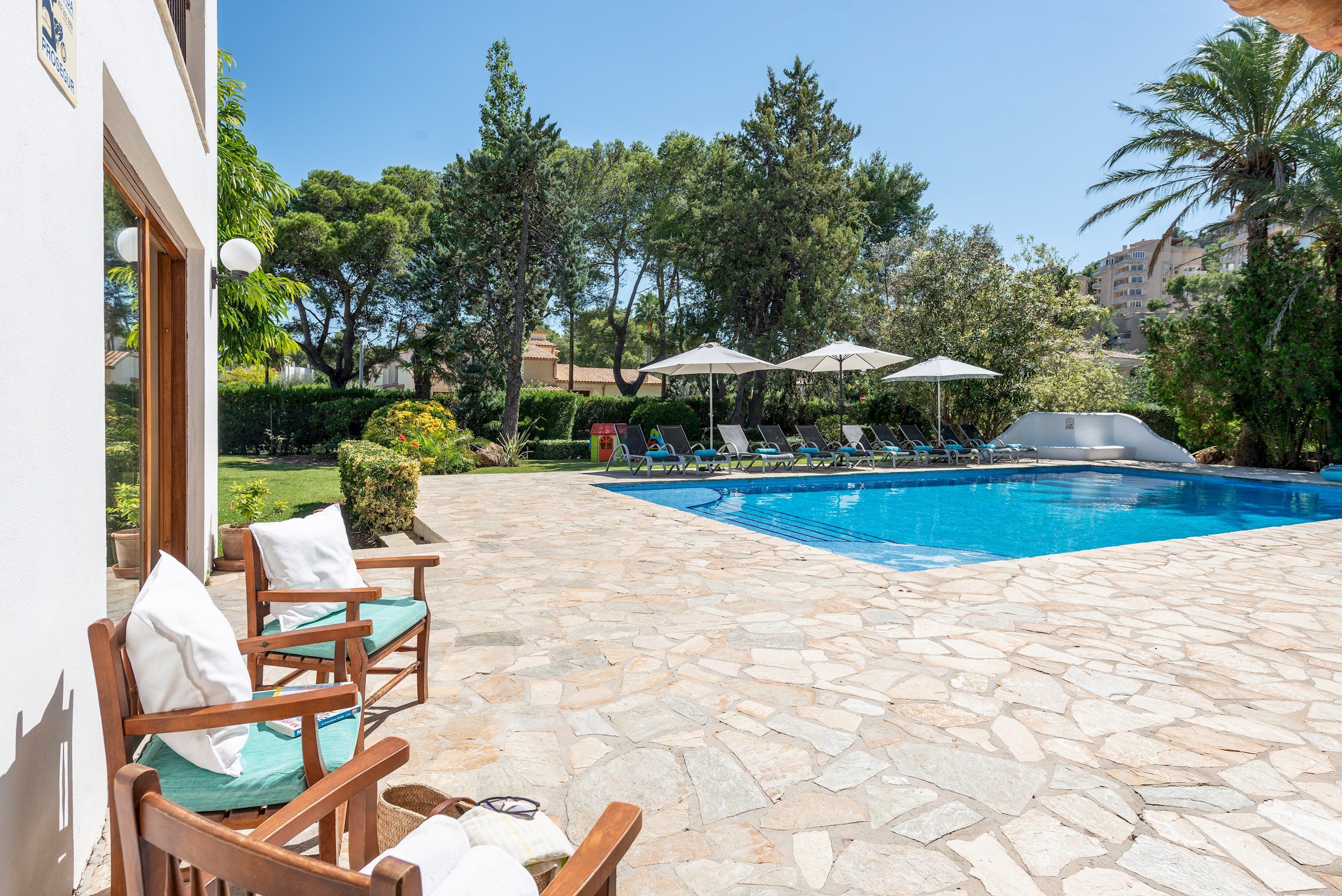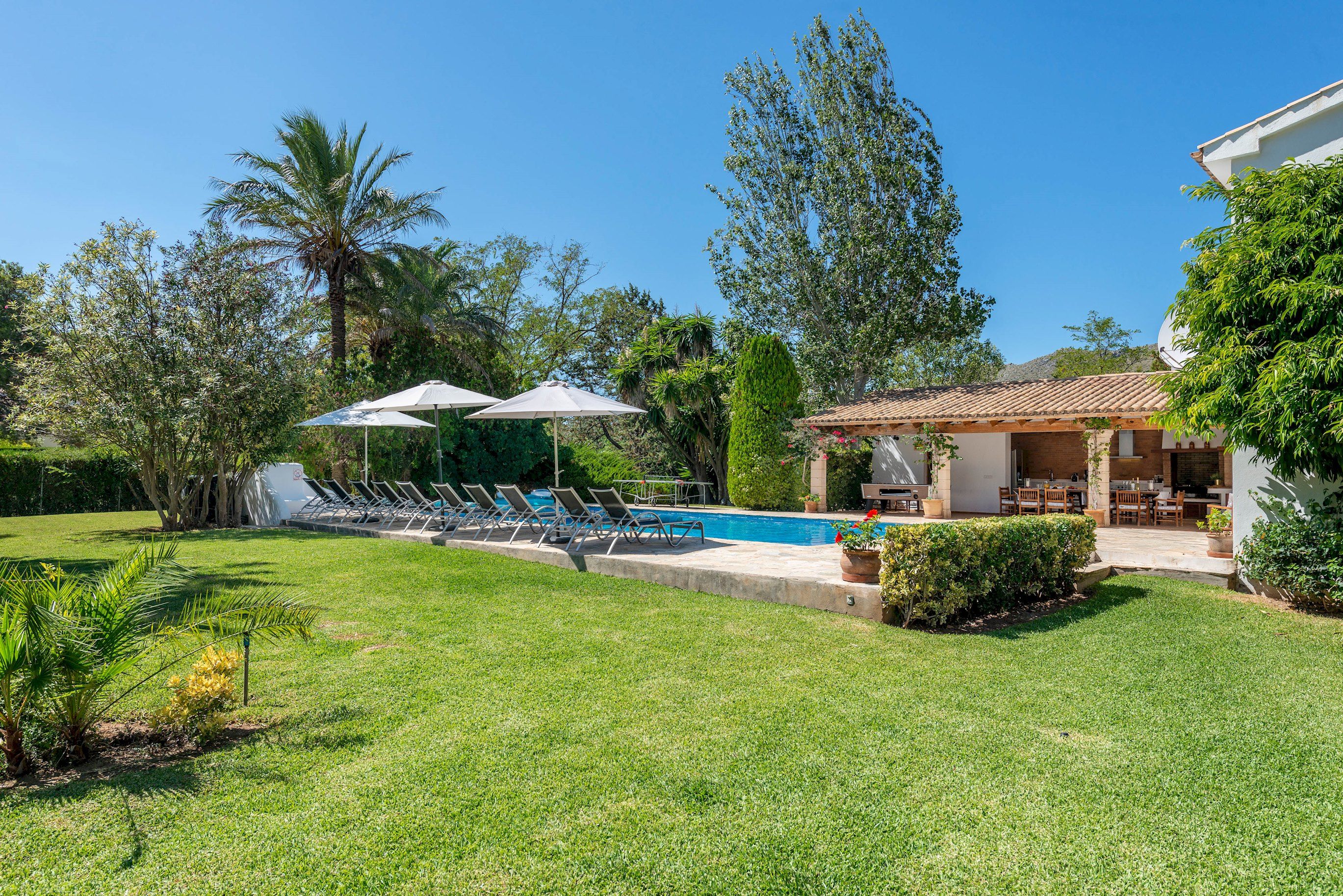 Just 500 metres from the beach, this villa is made for coastal-loving families. Set within lush gardens lined with cypress and yew trees, life here revolves around the outdoors. Spend your days stretched out by the pool while the little ones play on the lawn, or preparing delicious alfresco feasts in the outdoor kitchen. Inside, there's plenty of space for the whole gang to spread out, with two living rooms, a playroom and bedrooms opening onto private balconies. And when you're ready to explore, Pollensa Old Town is a short drive away, with cobbled streets, cafes and weekly markets.