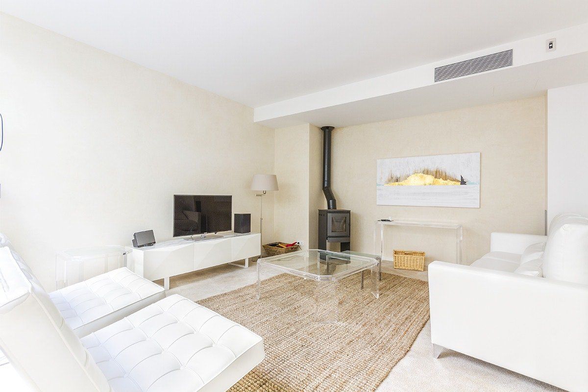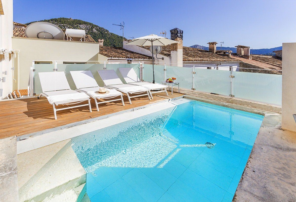 This luxurious townhouse close to the centre of the town of Pollenca is just waiting to be discovered. Modern and luxurious, you'll be able to enjoy open-plan living on the ground floor alongside the striking glass-fronted atrium in the centre of the house – the perfect place to settle down with a good book and a drink. Head up to the rooftop terrace for beautiful views of the surrounding town, extending over the Tramuntana mountains, and enjoy the private pool and sunbeds. Let the salt water rejuvenate your skin, and work on your tan without needing to worry about anyone peeking over a fence. In the winter, gather everyone in the living room by the wood-burning stove for a cosy evening in and a movie on the big screen.