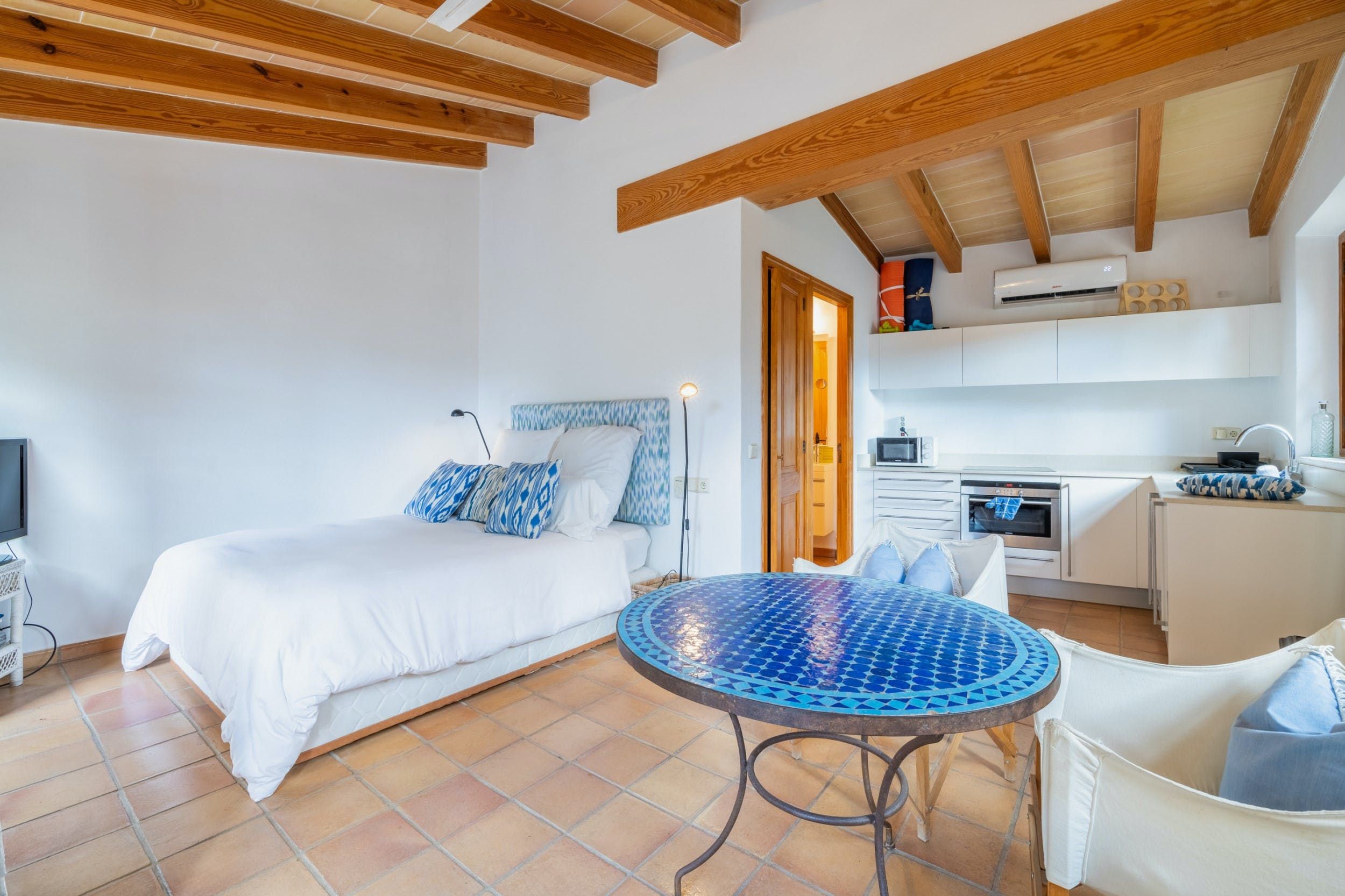 Surrounded by Mallorcan countryside, this 300-year-old villa welcomes large families or groups of friends to spend quality time in the sunshine. The outside space is sure to impress with its private pool, summer kitchen and terraces for tucking into homemade cooking. When night falls, we recommend heading to the cinema room and hunkering down in front of your favourite flick. Location-wise, Pollença and Can Cap de Bou Beach are no more than a twenty-minute drive away, and there are hiking routes on your doorstep if you’d prefer to expend some energy.