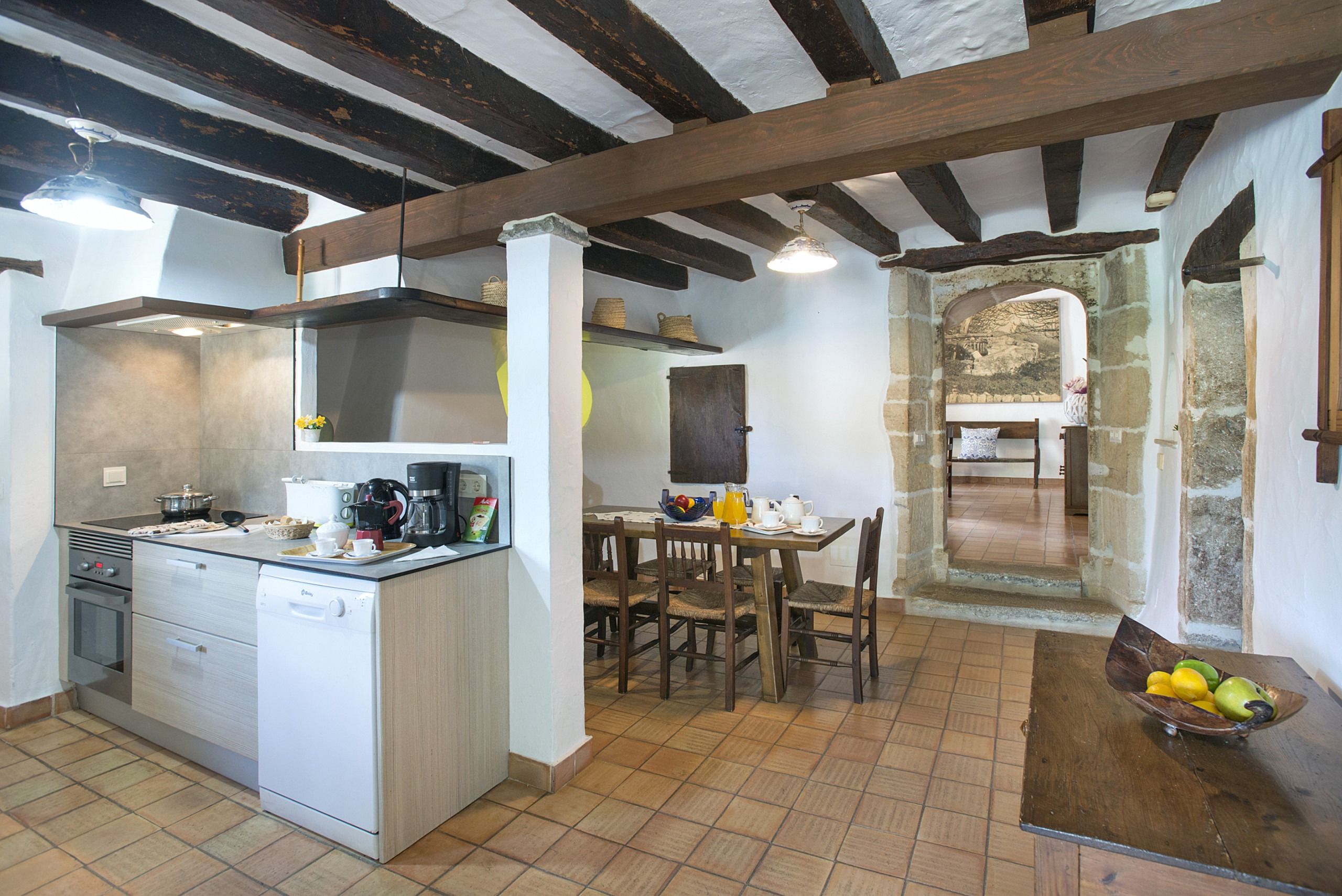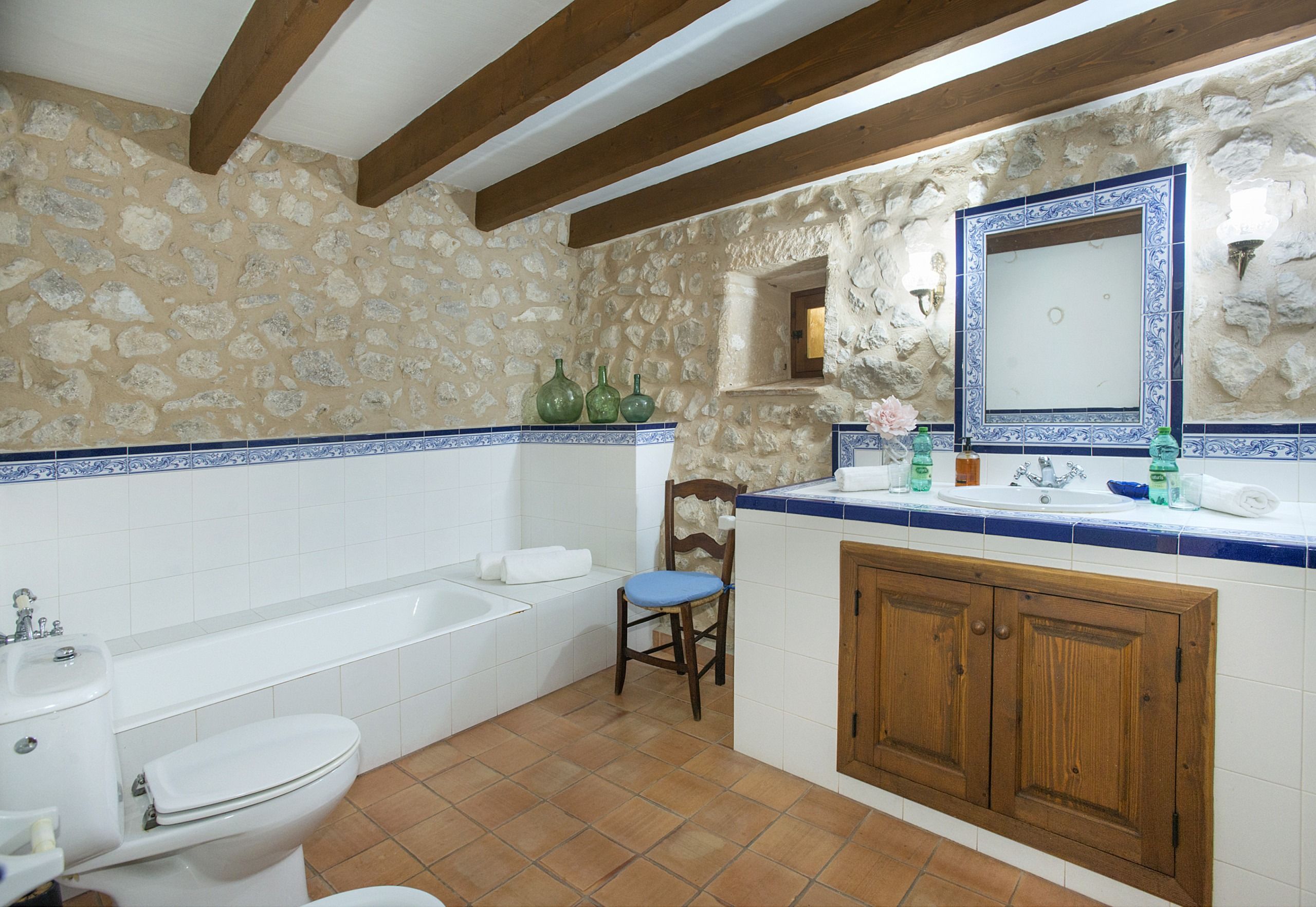 Should you want to take a break from the unabating sunshine, head inside to the rustic living space – we loved the timber beams and cool tiled floors. After unwinding on the plump sofa with a page-turning novel, plan your Mallorcan adventure at the dining table or head upstairs to catch forty winks in the charming bedrooms.
