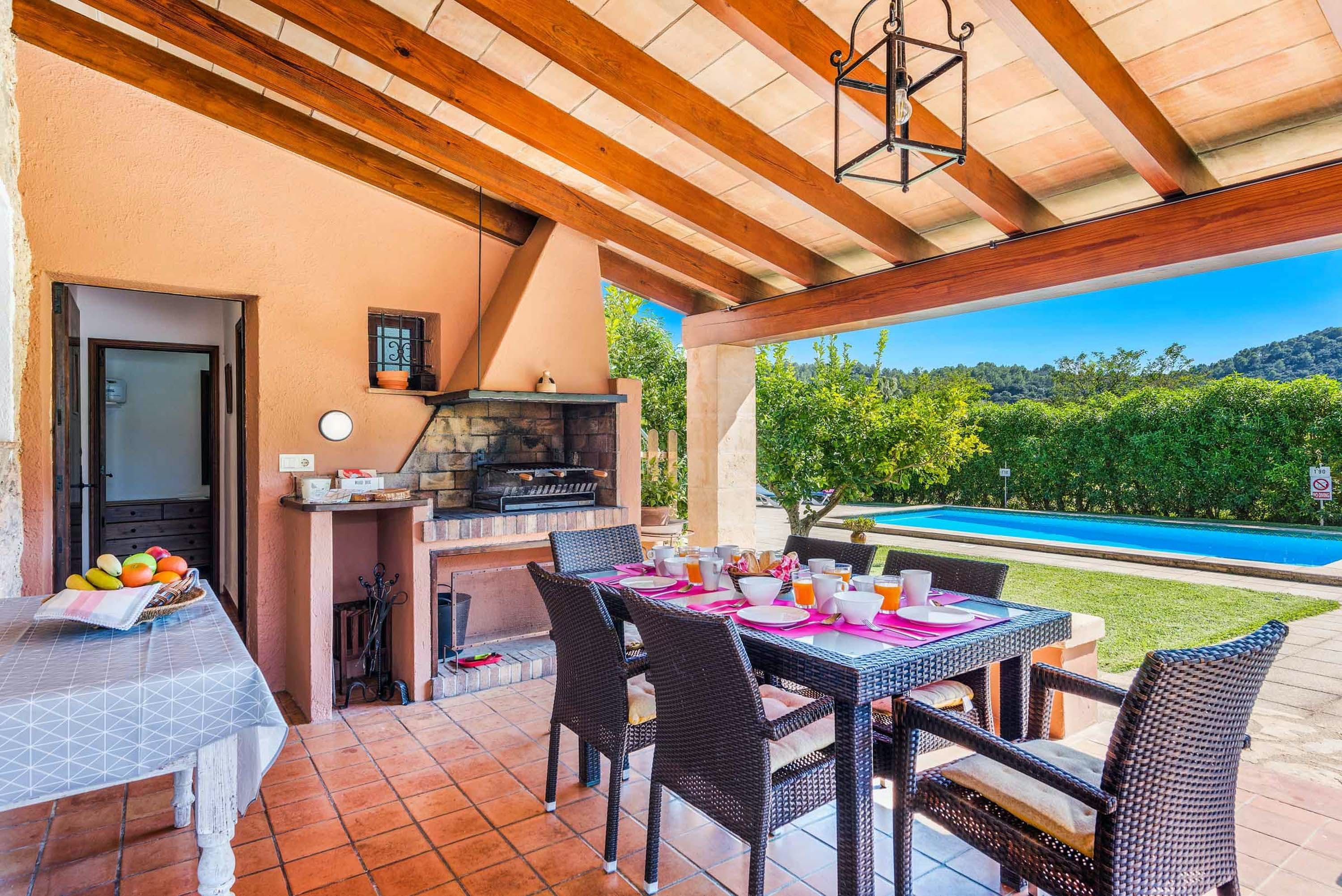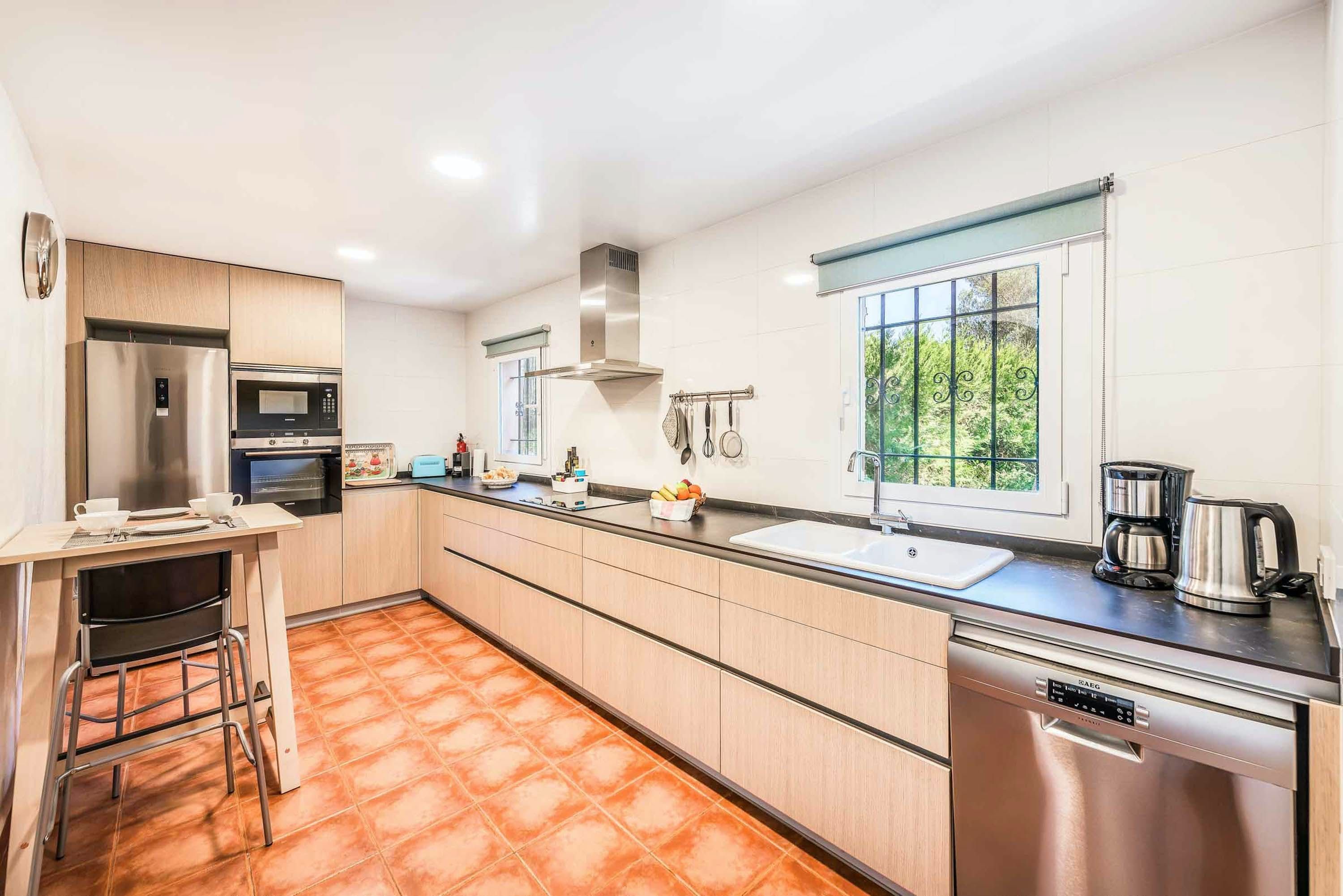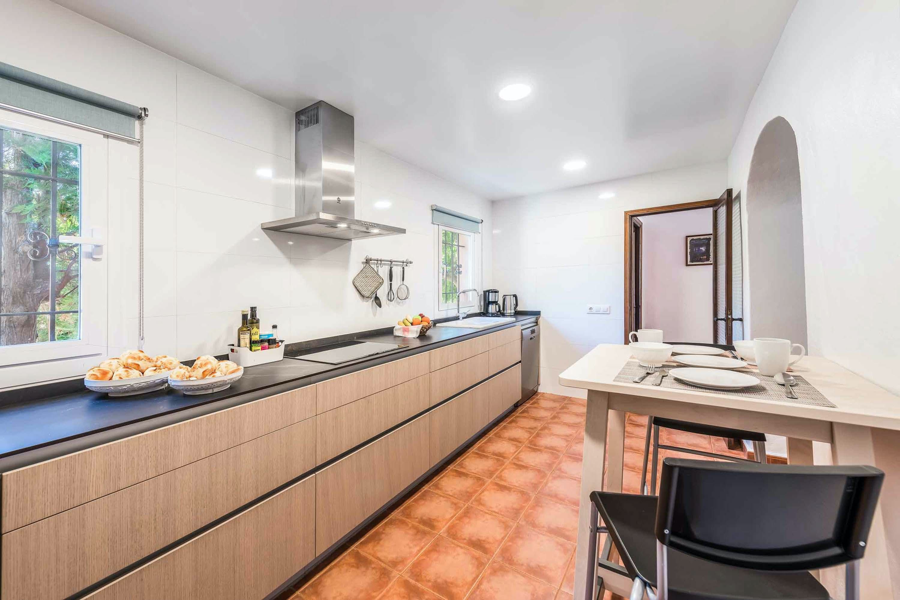 This home caught our eye with its breathtaking views of the Serra de Tramuntana mountain range. Outside, you can soak it all in from the private garden and pool. There is also a balcony and shaded terrace with a barbecue – perfect for alfresco dining. It’s worth noting the furnishings and decor are a little dated, but you will find family-friendly rooms and plenty of space across the two floors. Your host is also on hand to help organise extras like airport transfers and car rentals – a great option for those looking to explore the island. From here, it’s just 3 kilometres to the old town of Pollença, while the beach is just a ten-minute drive away.