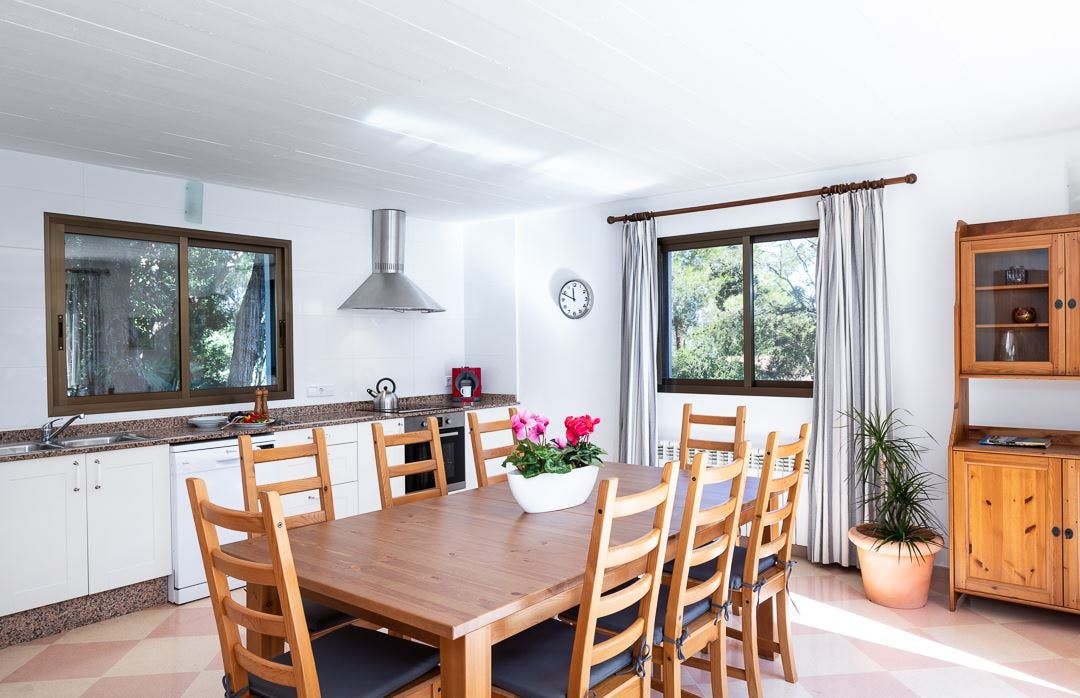 With an idyllic setting in a rural, wooded landscape, this home is the ideal getaway for friends or families seeking tranquillity. There's a private, 10-metre pool, hammock, covered alfresco dining space and a play area for the kids. Inside, we love that two of the bedrooms open onto a balcony too. It would be tempting to stay right here, wouldn't it? That would be a shame, though, as Pollença, with its restaurants, shops and attractions, is 4 kilometres away. If you prefer the beach, Playa de Muro or Puerto Pollença are the nearest. Or you can visit your host's miniature farm with its llamas and other animals. We'd recommend hiring a car to get the most out of this countryside location.
