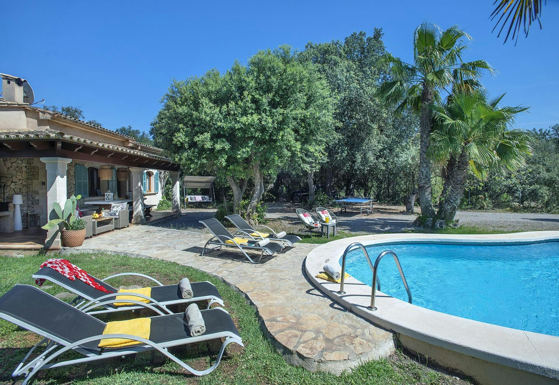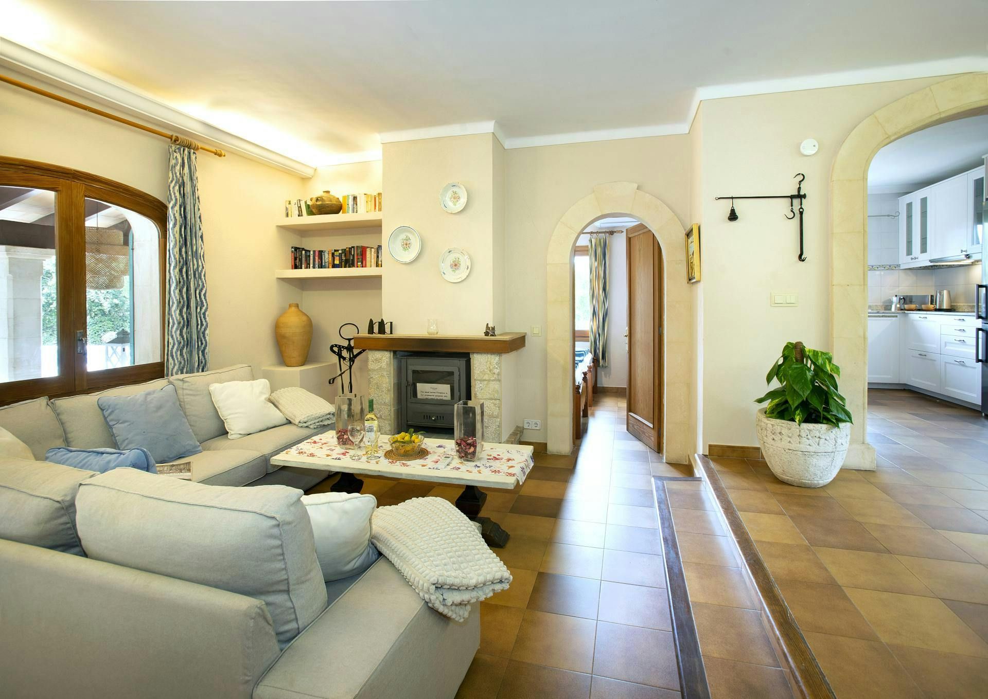 Nestled in the Mallorcan countryside, this home is surrounded by olive trees and palms. Boasting a private pool, alfresco dining area, and plenty of outdoor seating, it’ll be easy to kick back and relax here. And if you tire of lounging in the hammock, the ping pong table awaits. Inside, the open-plan living area is ready-made for sociable meals and relaxing evenings. And when you’re ready to explore, the vibrant old town of Pollença is a five-minute drive away, and the nearest beach is ten minutes by car.