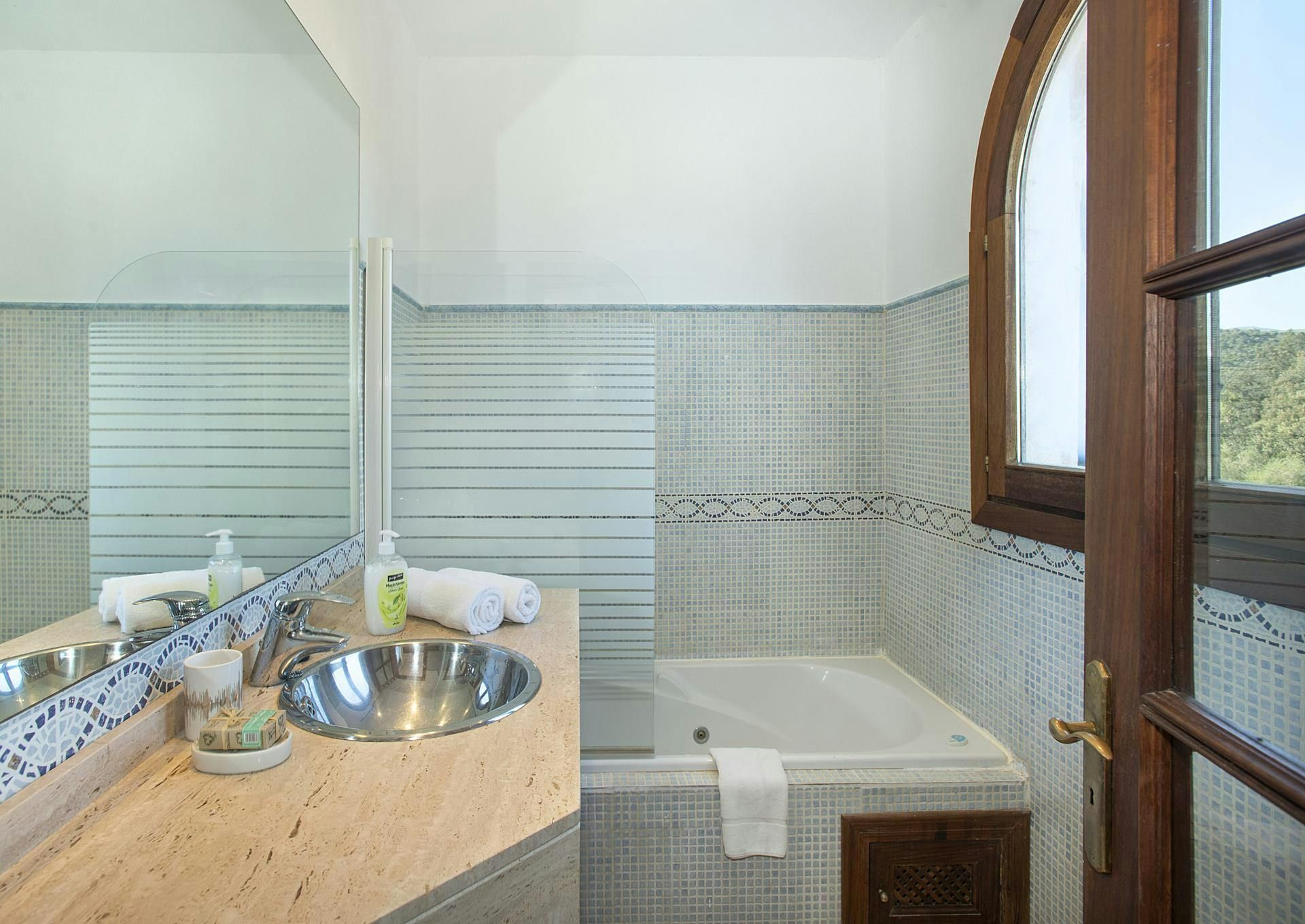 Nestled in the Mallorcan countryside, this home boasts lush, Mediterranean grounds. Relaxing days can be spent lounging by the private pool, dining alfresco on the terrace, or playing an outdoor game of table tennis – all while surrounded by olive trees and palms. Outside may steal the show but inside has lots to offer too, with a choice of living and dining areas to enjoy. And if you’re lucky enough to bag the main bedroom – housed in a turret with external access – you’ll be treated to countryside views. Location-wise, you’re a five-minute drive from the historic town of Pollença, and ten minutes from a choice of sandy beaches.