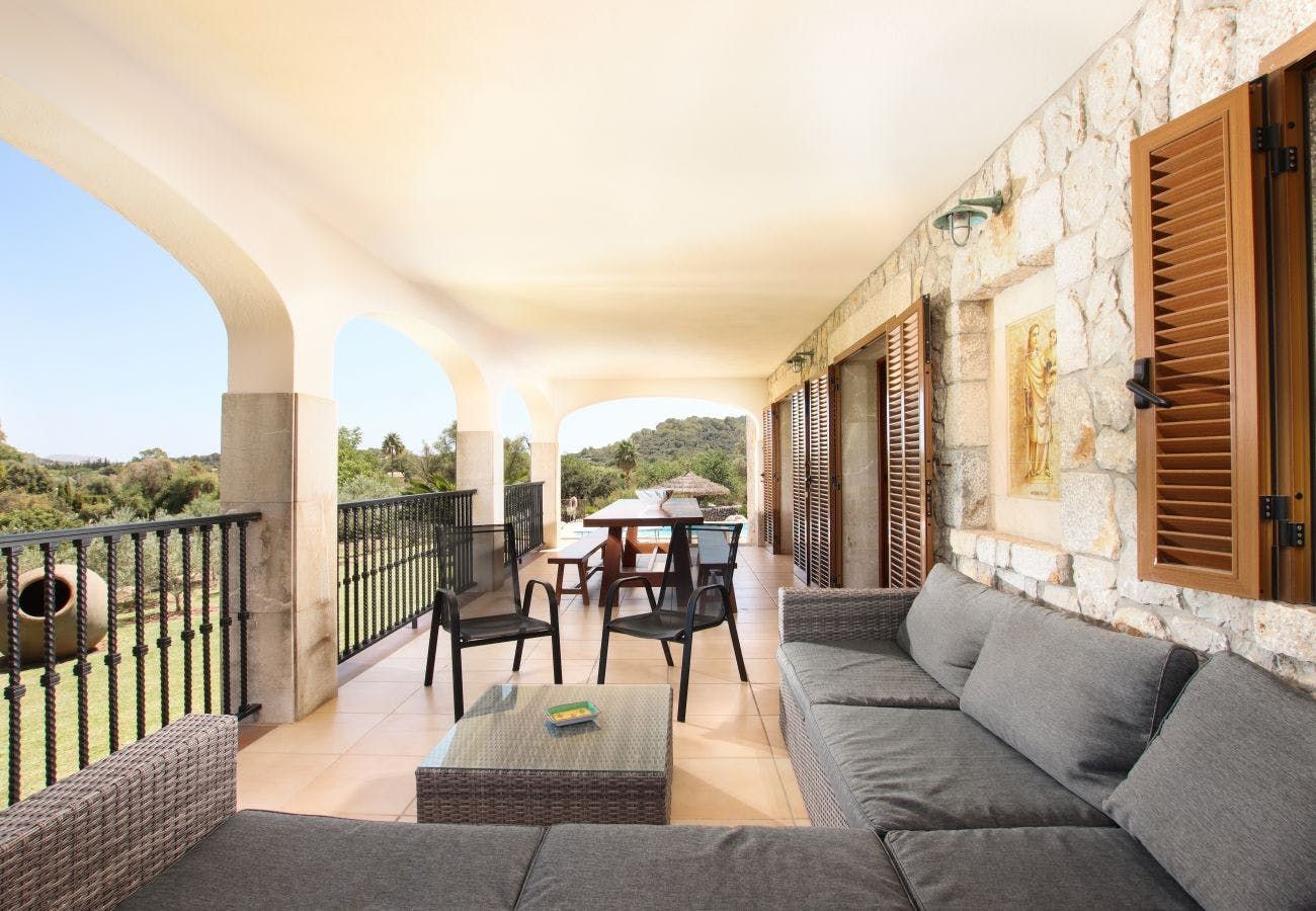 Out in the Mallorcan countryside, this villa is surrounded by stone-walled orchards, fields and family farms. Yet, it’s a leisurely walk into the heart of old town Pollensa, around fifteen minutes on foot, where you’ll find romantic restaurants and plenty of shops. If you fancy a day at the beach, Port de Pollensa is around fifteen minutes away by car.
