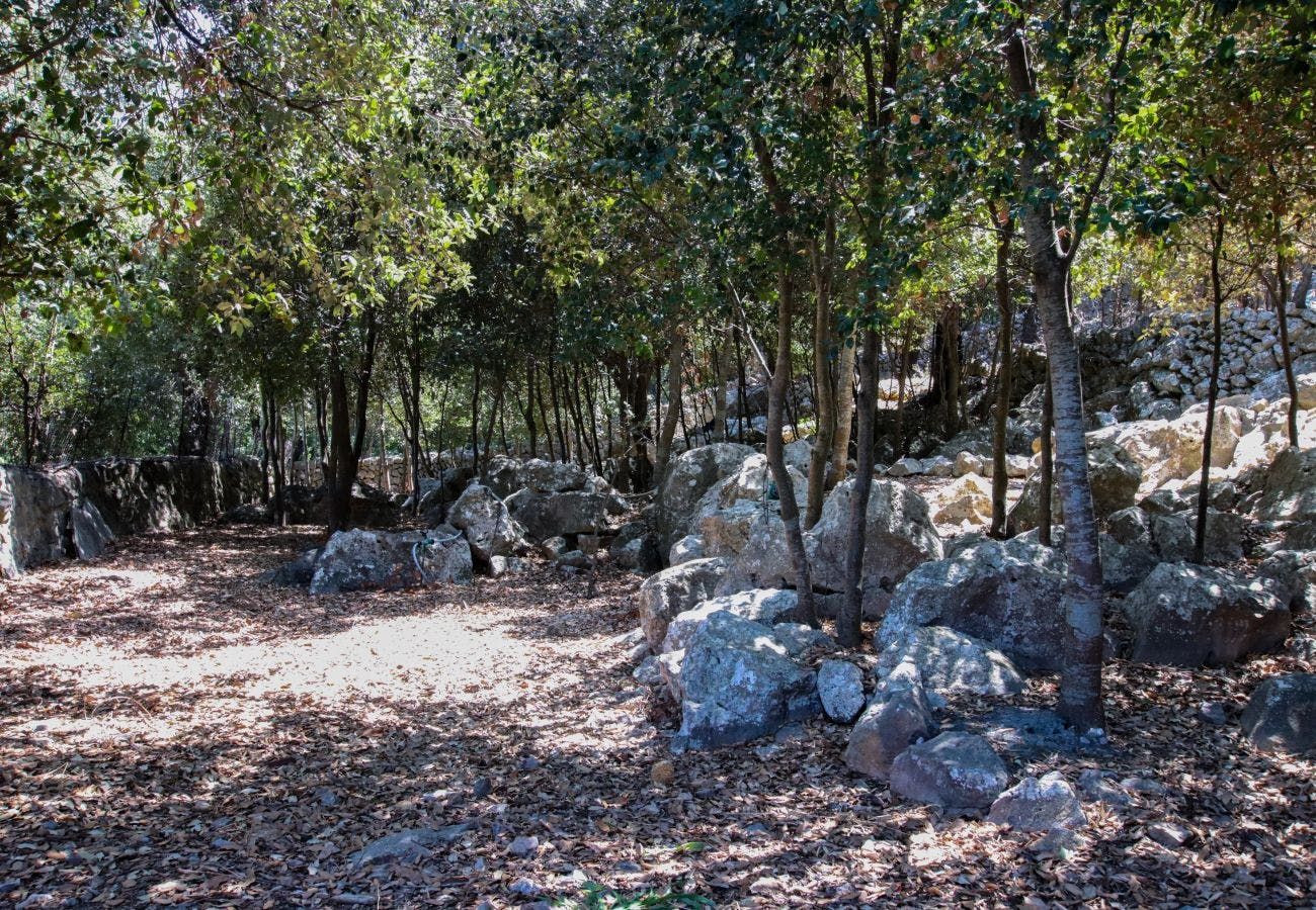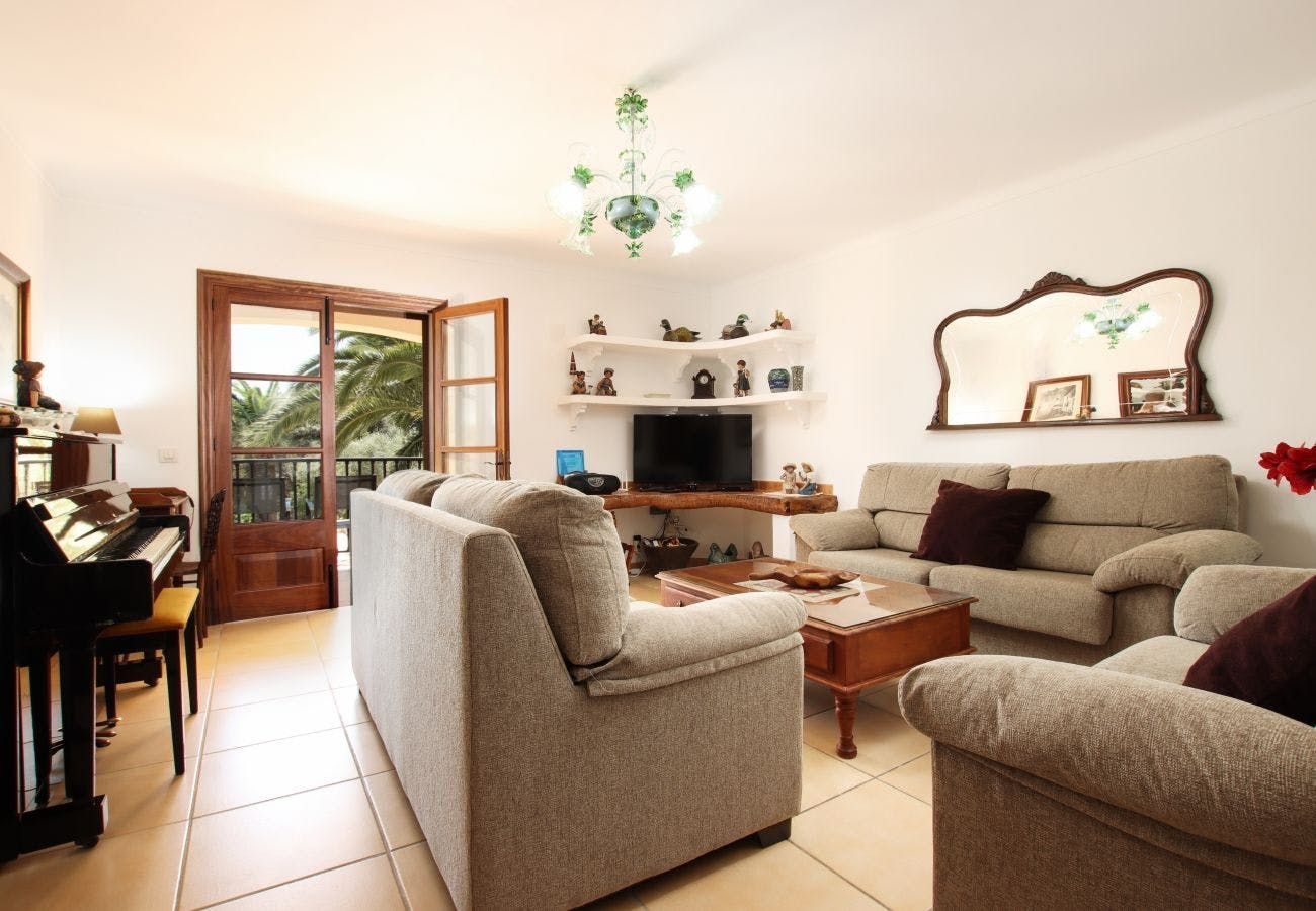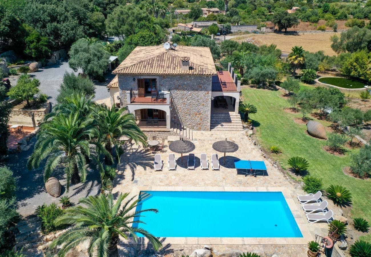 Stepping past the traditional stone facade, you’ll find two cosy living rooms to choose from where gnarled wood beams are on display alongside an old brick fireplace. The second sitting room, upstairs, houses an upright piano for an evening sing-along. The huge, picnic-style table in the kitchen is the ideal spot for breakfast and a more formal dining room can handle evening meals of sopas mallorquinas and bread drizzled with olive oil. The old-world charm continues in bedrooms where mahogany accents keep things classy.