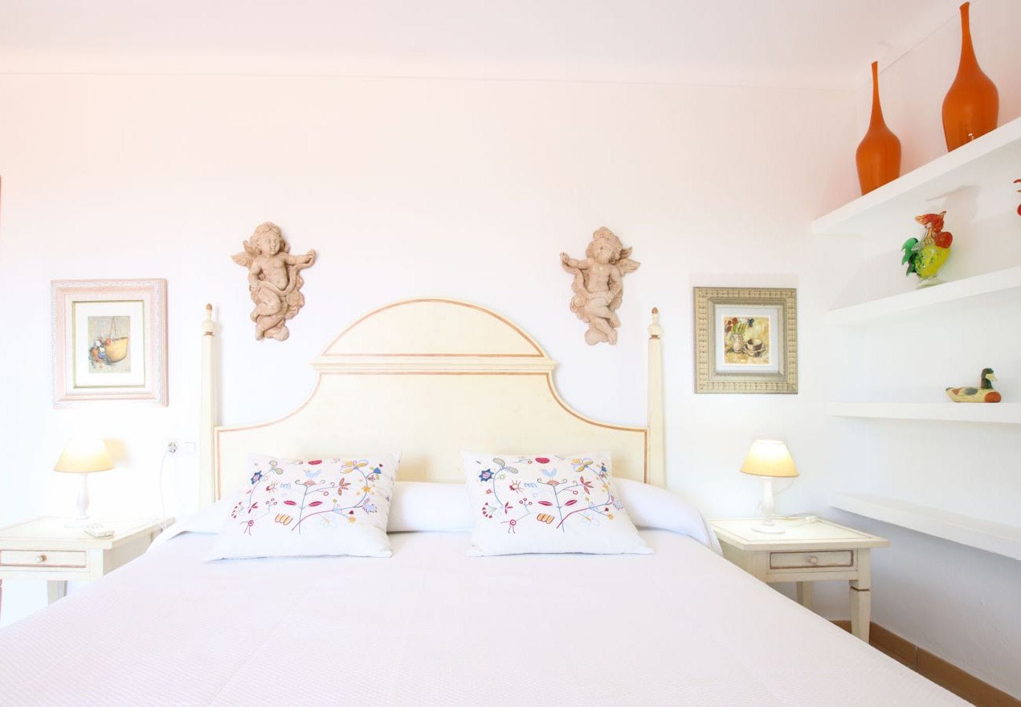 The villa is finca-style, in keeping with the old farmhouses of the area. A porticoed veranda is where you can recline on the huge outdoor sofa in the shade, or set up for long, lazy lunches overlooking the gardens. And what a garden it is – Mediterranean shrubs burst with flowers, palm fronds rustle in the breeze and a pond attracts swans and ducks throughout the year. To top it all off, a turquoise swimming pool invites you for a dip when the sun hangs high overhead.