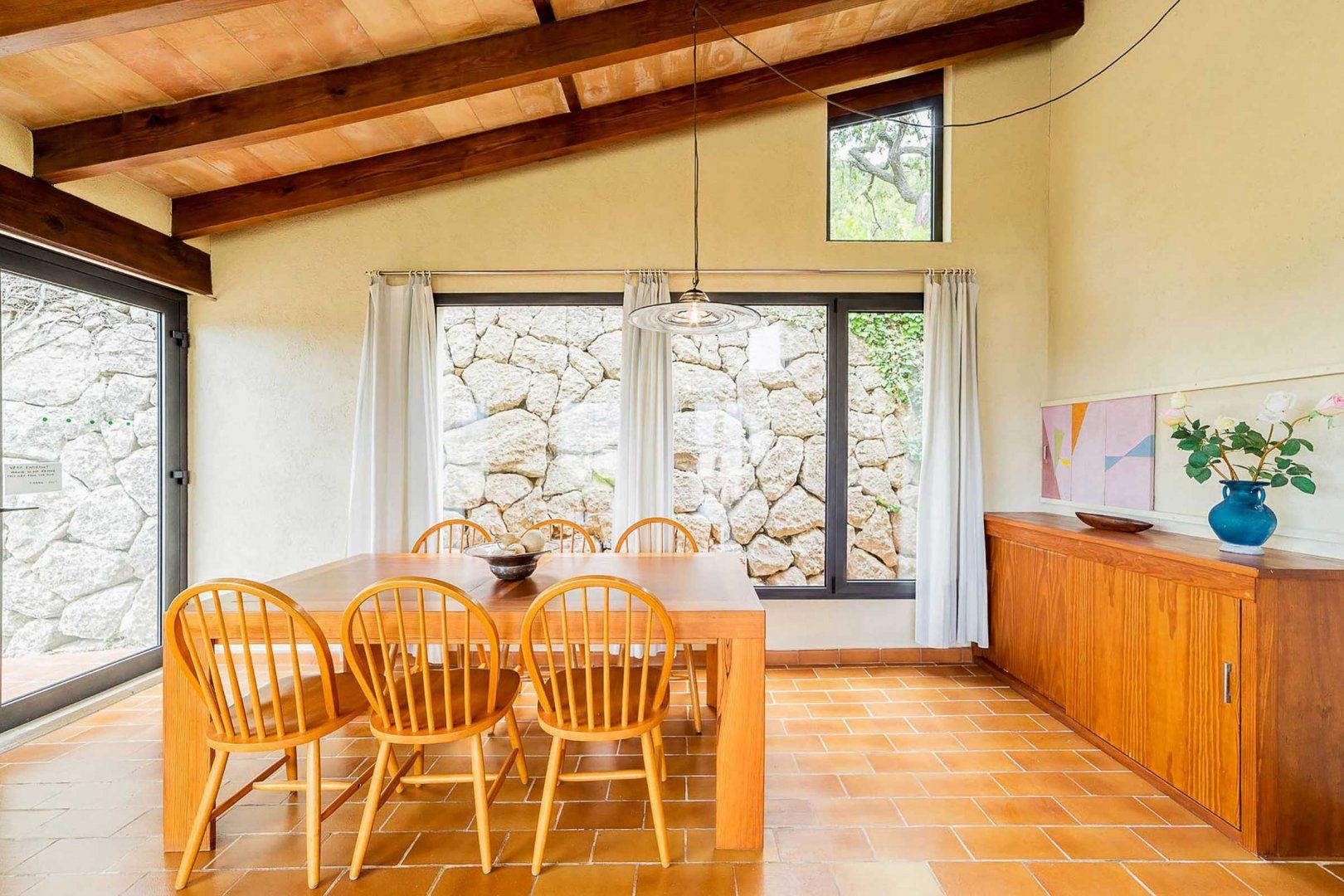 The show-stopping views of the Mallorcan countryside and the charming Old Town of Pollensa first caught our eye at this villa perched on the hillsides of the Puig Maria mountain. While some of the interiors may be a little dated for some, there’s no denying this place hasn’t got character and wooden shutters in spades. Those travelling with younger children may find those low walls with drops within the villa grounds and ladder effect railings a little hair-raising – little ones will need to be supervised at all times. But you can’t beat its location – with the Old Town of Pollensa within walking distance and the gently sloping sands of Puerto Pollensa just a short spin away.