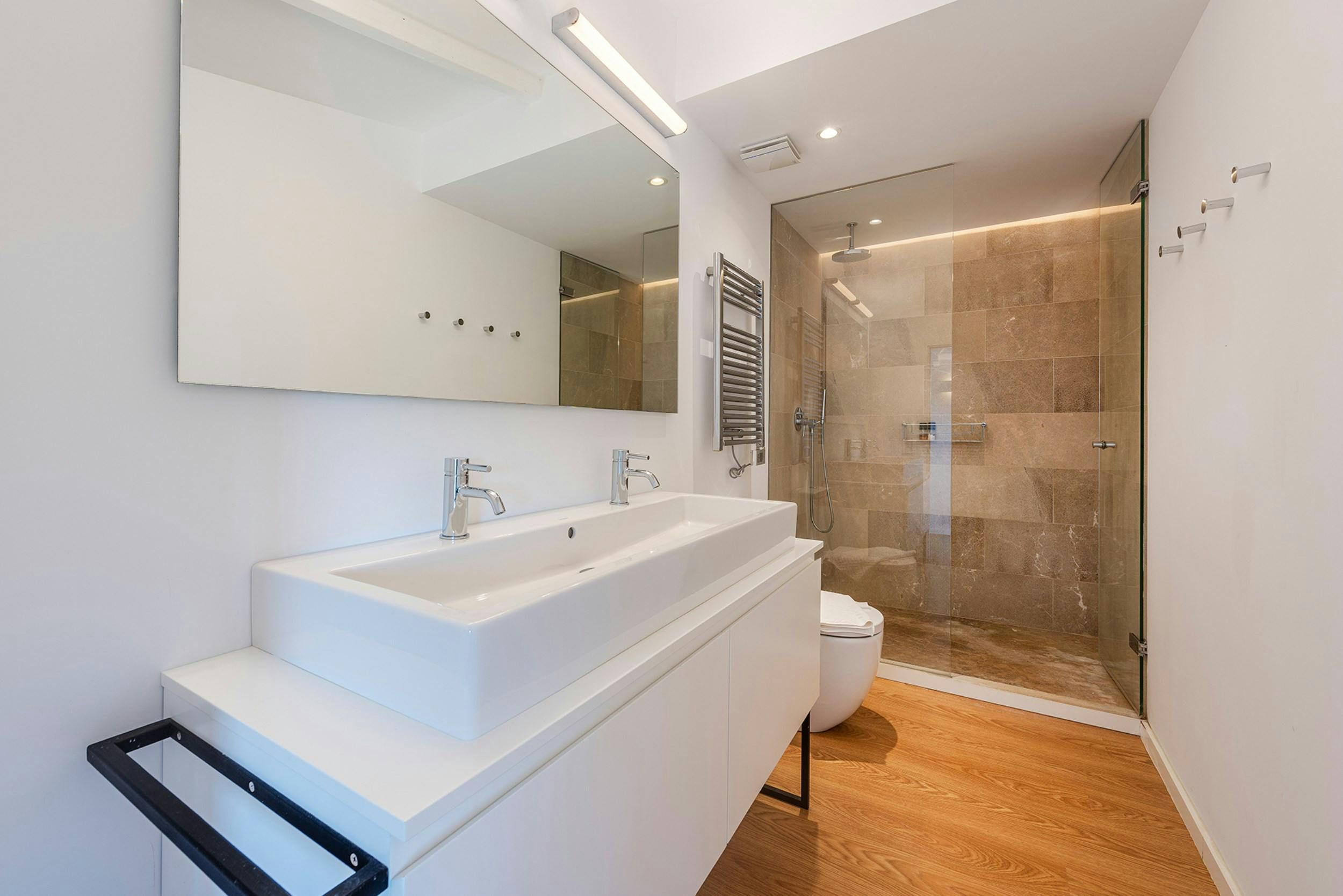 Just a three-minute drive from the heart of Pollença's historic old town and a ten-minute drive from a sandy beach, this rural hideaway combines sun-kissed seclusion with easy access to the area's main sights. The four bedrooms are spread across two levels, giving groups the chance to connect while also enjoying their own private space. Enveloped by meticulously designed gardens and mature fruit-bearing trees, the exterior of the villa is the real showstopper, with the private swimming pool, barbecue area and terrace, all set against the breathtaking backdrop of the Tramuntana mountains.