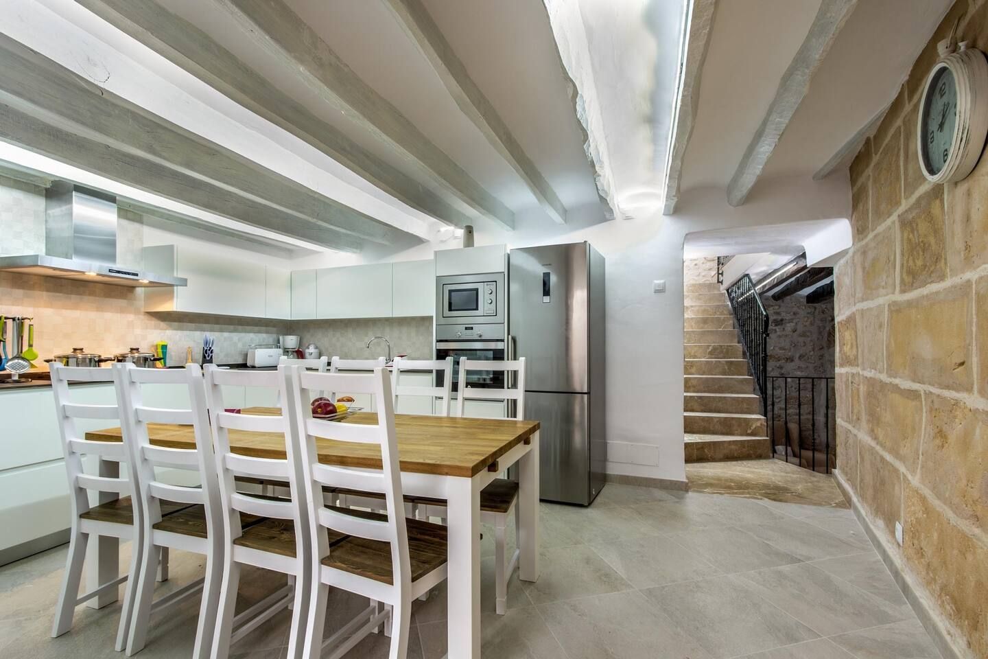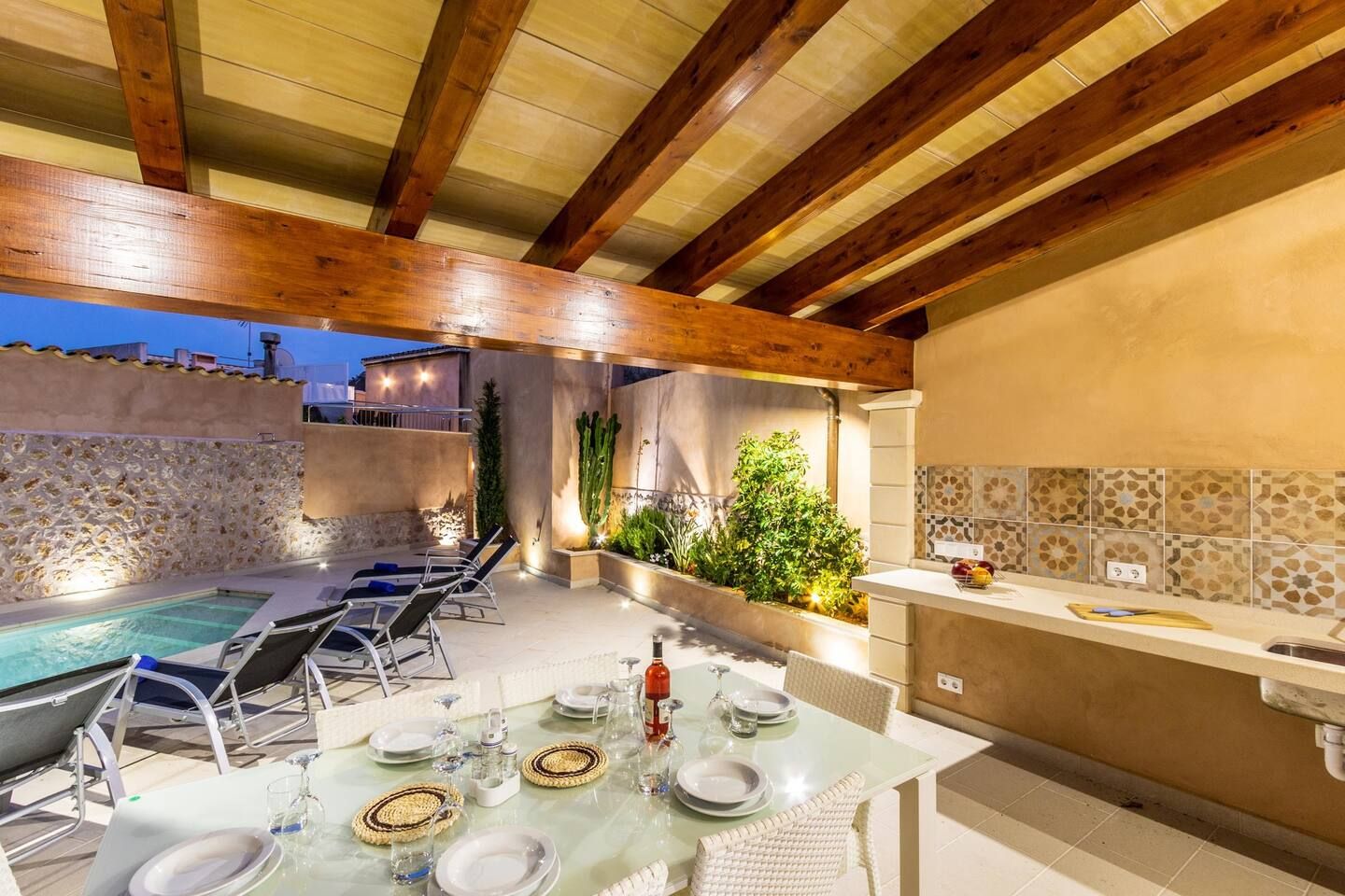 If you’re looking for an authentic stay in one of Spain’s finest old towns with the beach sitting at your beck and call, you need look no further. This traditional Mallorcan villa is the perfect blend of rustic charm, quirky artistic features, and sun-soaked outdoor furnishings. Located inland in the heart of the historic town of Pollensa, this townhouse has been cleverly designed to create a stylish and open living space, perfect for groups of friends or families looking for a hideout. The three-level chill out area – with a calming lower floor living room, a private pool and rooftop sun terrace – creates a unique home that masters indoor-outdoor living, so you can bask in the summer sun or escape the mid-day heat when needed. The home pays homage to its predecessors with wood beam ceilings, exposed natural walls and sandstone tones that remind you of the historic streets lying beyond. Explore the surrounding area or venture to the warm sandy shores at Cala San Vicente nearby. Perfectly located, you’re within a short distance of the sea while being grounded in a quintessential Spanish village.