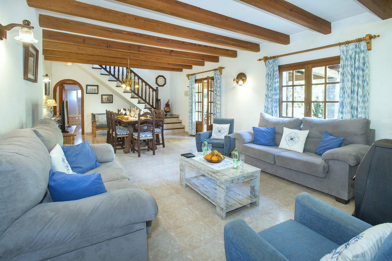 In true Majorcan style, this home has rustic beauty and summer living at heart. With majestic palms and a covered terrace, dining alfresco is a must at this relaxing haven. Spend your days swimming lengths in the pool and sipping wine as you recline on the sun loungers. Situated in the countryside, you’re surrounded by the peace of nature – you really couldn’t ask for a better backdrop than the mountains that surround you here. Sitting on the terrace, you can easily get lost in your holiday read with just the birds chirping in the trees for company. As day drifts lazily into night, evenings will be well spent enjoying sundowners on the quaint balcony – such a nice little romantic place for two. After pre-dinner drinks, light the barbecue and get to work cooking up a feast in the charming outdoor kitchen.