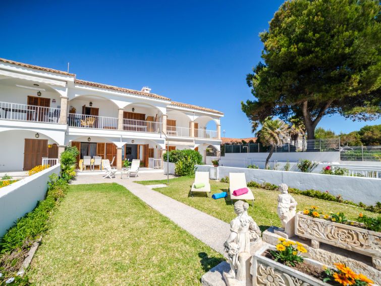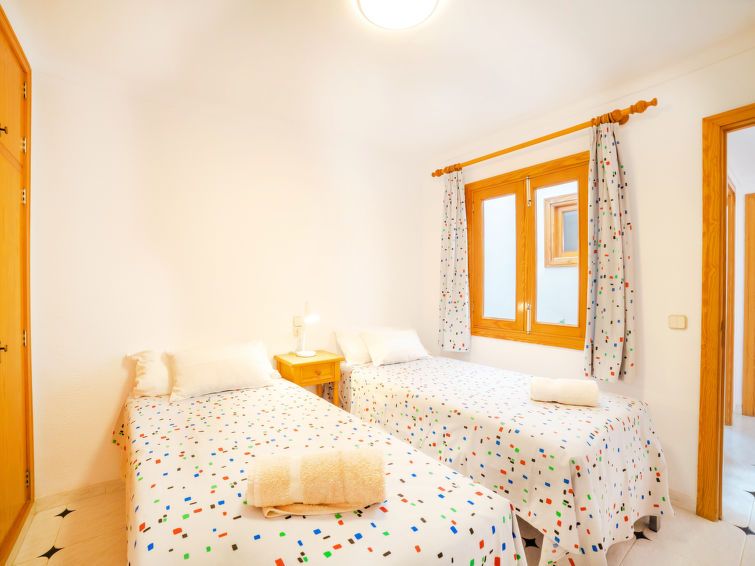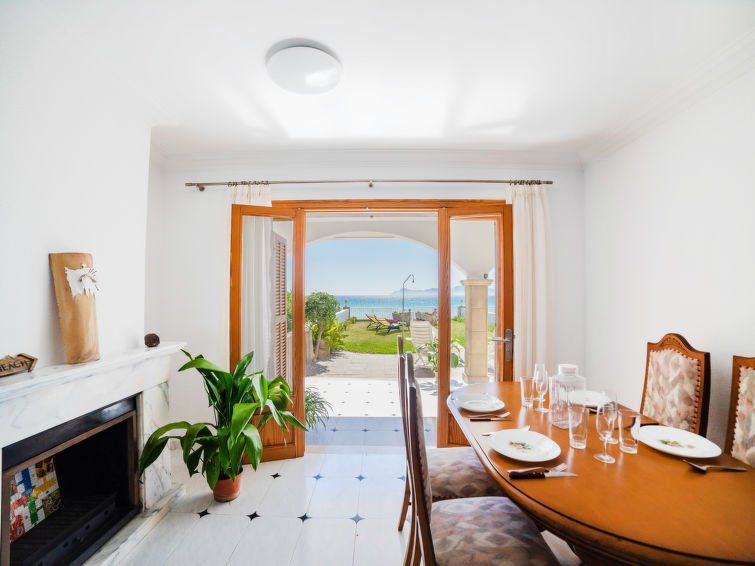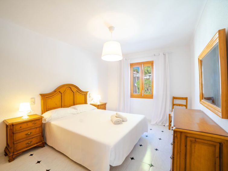 "Sa Mirada", 4-room apartment 120 m2, on the upper ground floor. Object suitable for 6 adults. Spacious and bright, comfortable and cosy furnishings: large living/dining room with panoramic window with dining table, TV and flat screen. Exit to the patio. 2 large double bedrooms with panoramic window, each room with 1 french bed (150 cm, length 190 cm).