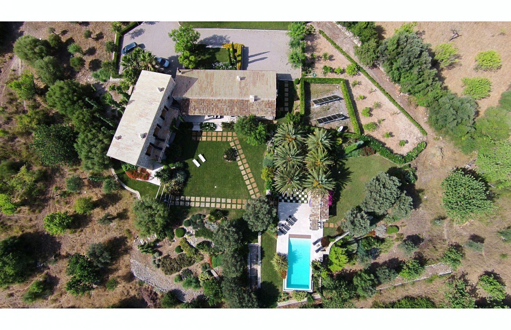 There's far more to this address that the surrounding scenery, however. The landscaped garden is not only full of pretty Mediterranean vegetation, but it's also home to a large swimming pool that's sure to be popular on hot afternoons. Alongside that, there are plenty of loungers on which to soak up some rays, as well as a covered outdoor kitchen and alfresco table ready and waiting for languorous evening feasts.