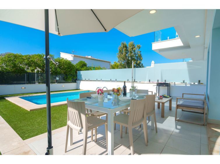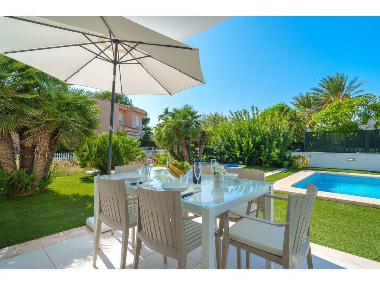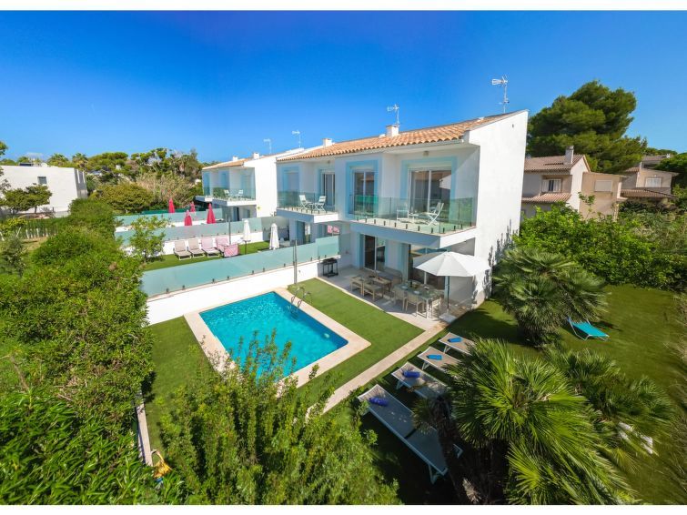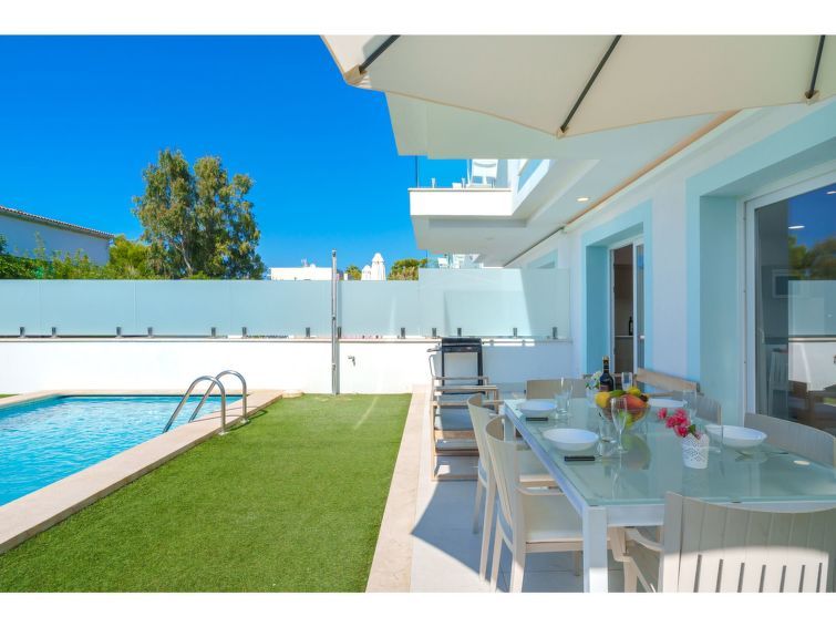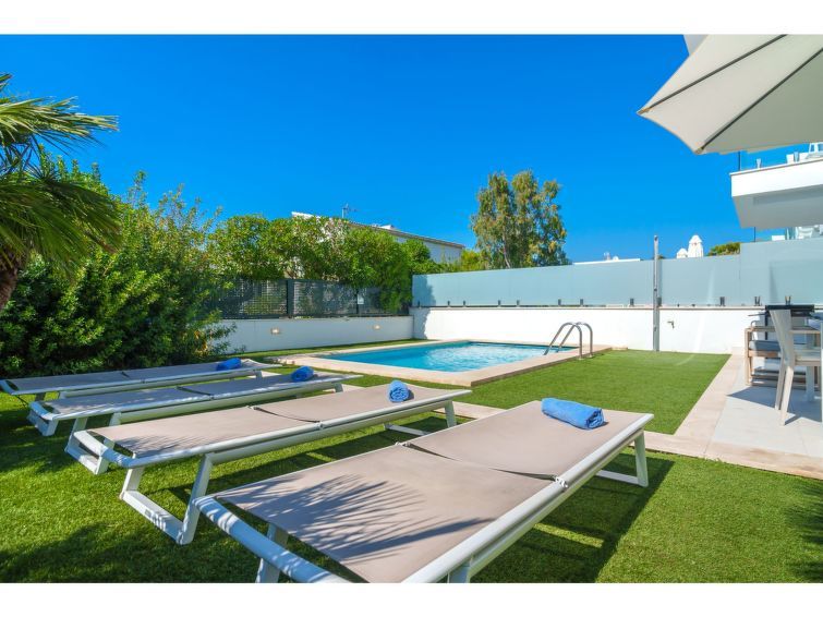 The villa has a good pool in a garden with a mix of sunbathing and shaded areas. The inside of the villa is modern.