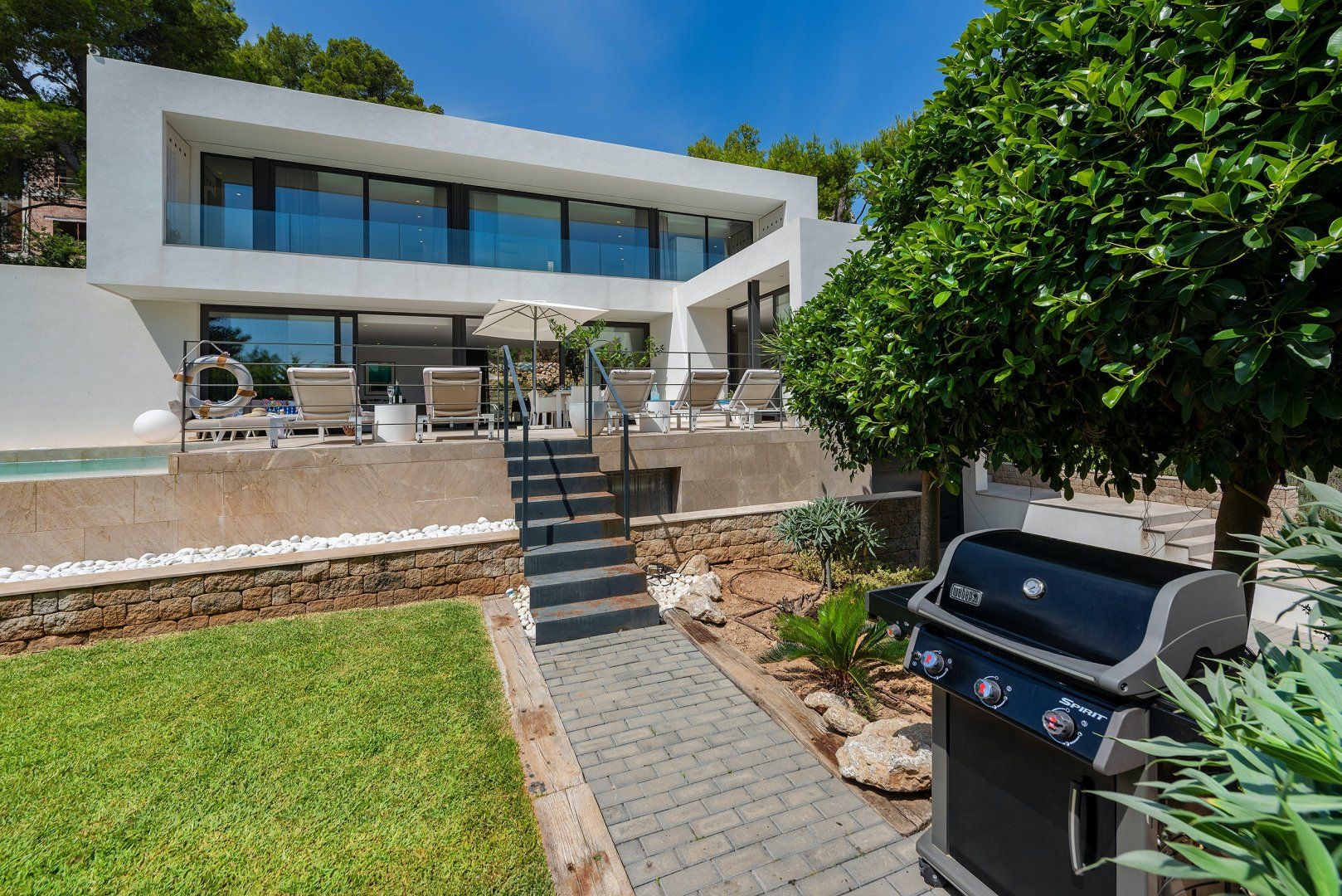 When it's time to head out, follow the Roman steps onto your manicured garden and explore the local area from this desirable location. You're a ten-minute walk from the sandy beaches of Puerto Pollensa, with a selection of restaurants and bars to discover.