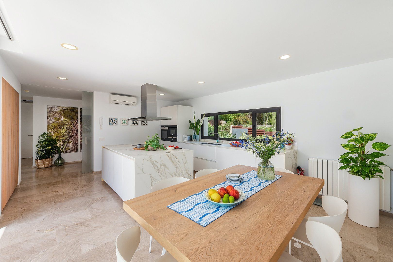 Stepping inside, you'll immediately notice the high-end touch that's been given to this recently renovated home – from the tiled flooring to the colourful art prints, chic decor and sleek chef's kitchen with a gorgeous marble island. The bedrooms are just as snazzy and bright, with direct access to the balcony or terrace, so you can wake up to a morning coffee while taking in the view.