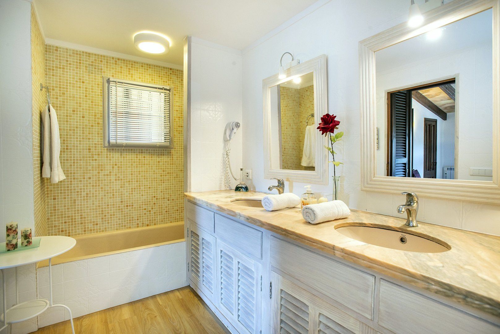 Home truths: *Your host can provide a cot and high chair for free upon request – stair gates can also be fitted if required *Due to the location of this home, we recommend hiring a car to get the most out of your stay – there's private parking available for three cars here *This home is spread over two floors, with no internal lift – for those with reduced mobility, there's a ground floor bedroom (with three single beds) and bathroom here *As part of a local energy-saving initiative, the air conditioning (available in the bedrooms, living room and dining room) is timed and will be active between 2pm - 4pm and 9pm - 8am *There's enough seating around the indoor dining table for 6 *Your host will provide a cleaning service, pool towels and a welcome basket *Bed linen is changed every 7 days, towels are changed every 5 days.