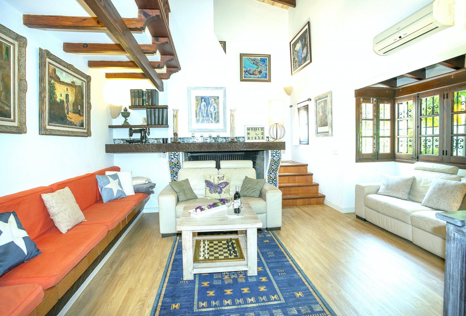 A delightful blend of antique wonder with contemporary practicality, this home has an intriguing charm. You’ll fall a little bit in love with it from the moment you arrive, walking under the pergola dressed in greenery, and even more so when you step foot inside the villa. With wooden beamed ceilings and neutral walls adorned with artwork, this home welcomes you into its warmth with a hug. We love the old typewriter taking pride of place in the dining room, as if it’s just waiting for you to pull up a chair and write your story.