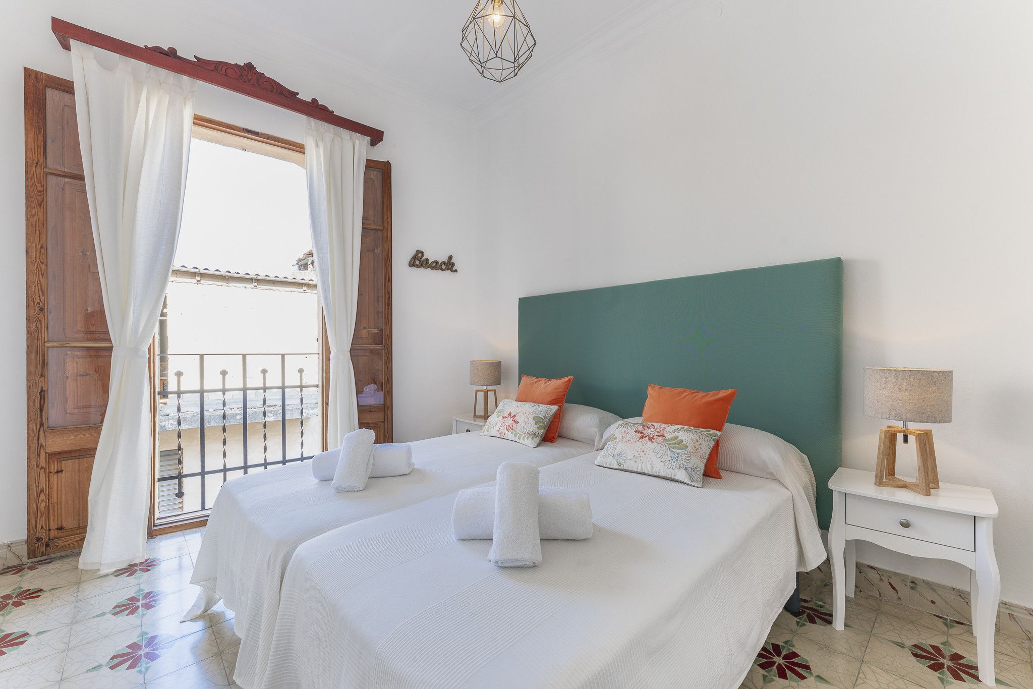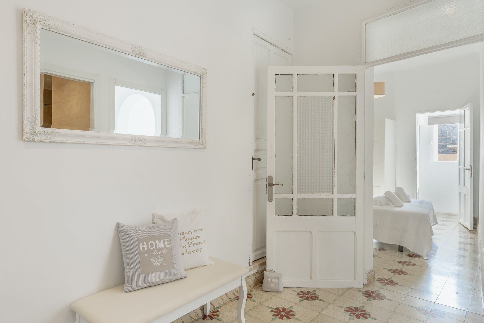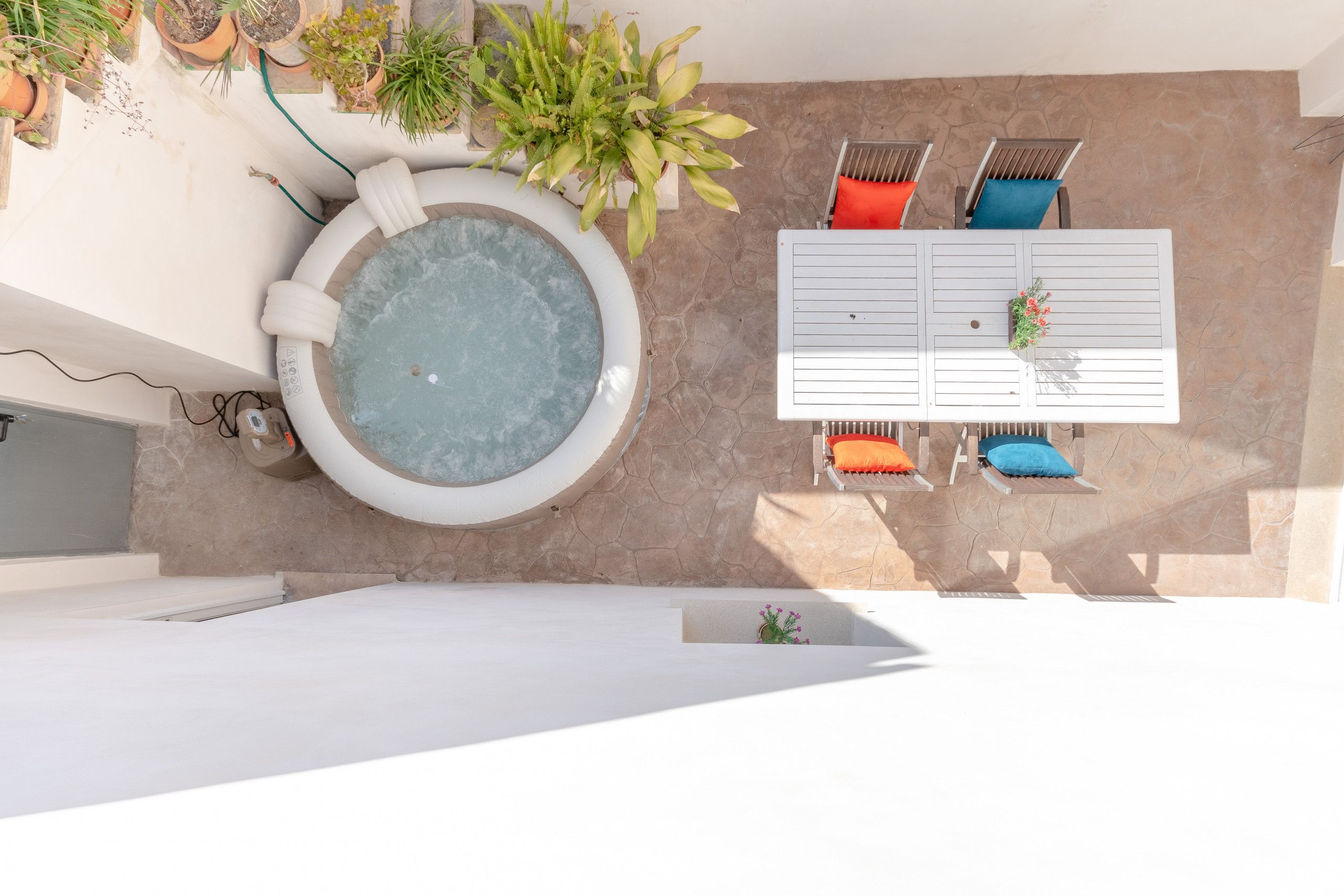 You could make the short drive to the beach at Alcudia, or just stick around in the courtyard garden by the Jacuzzi. Pot plants provide a bit of greenery and there’s a wooden dining table for alfresco lunches. Inside, we love the original tiled floor of the living room, a nod to the 19th-century architecture that surrounds you. Stone archways and wood beams are in display and a grand old staircase leads up to the bedrooms. A couple of the bedrooms have Juliet balconies looking out over the atmospheric street before you.