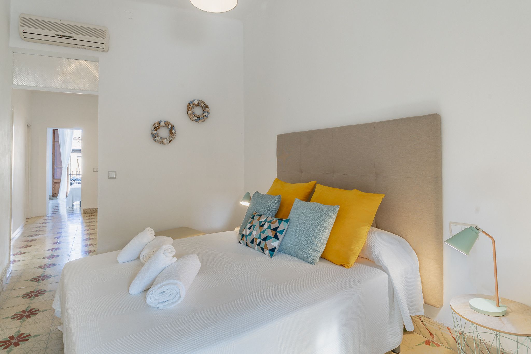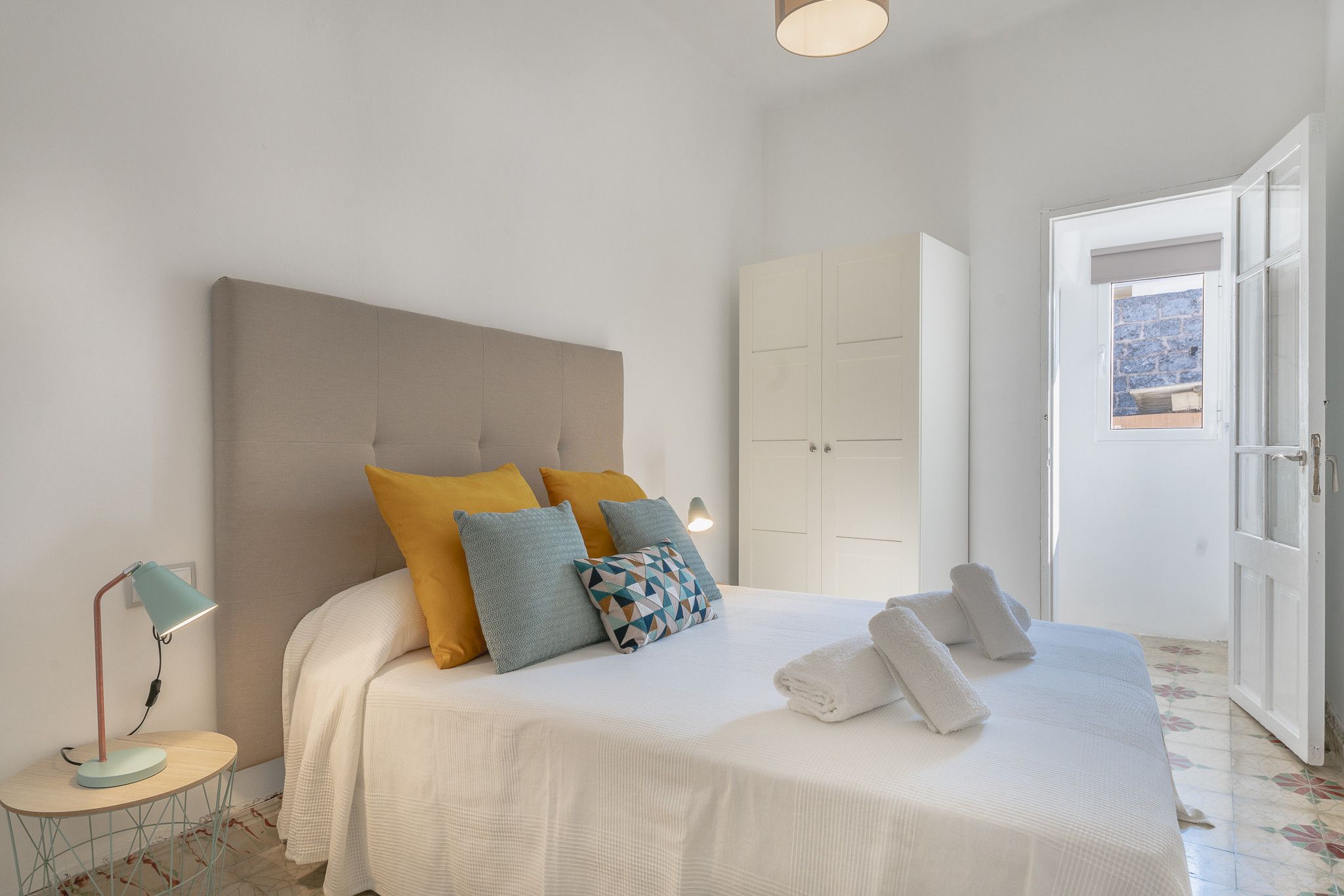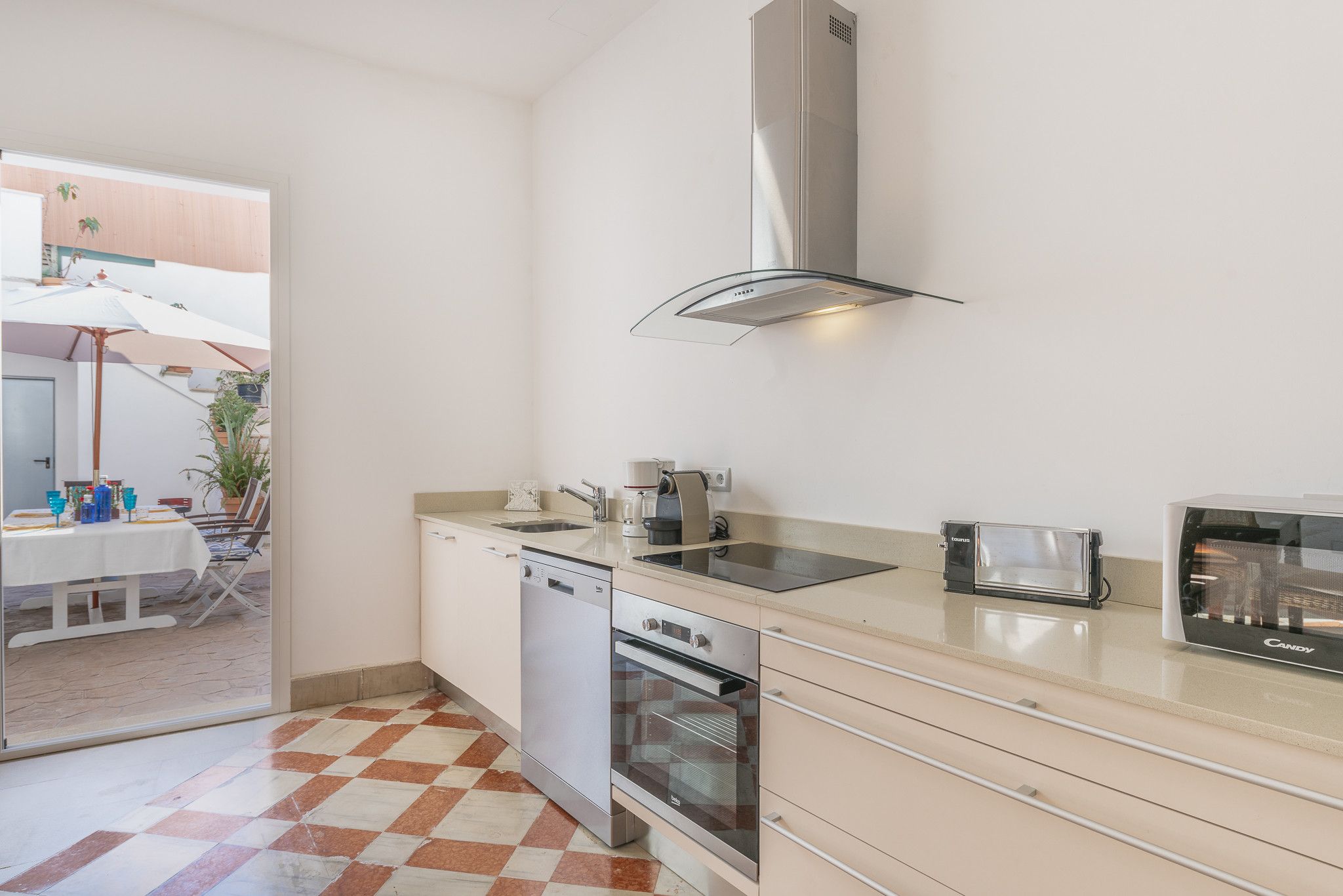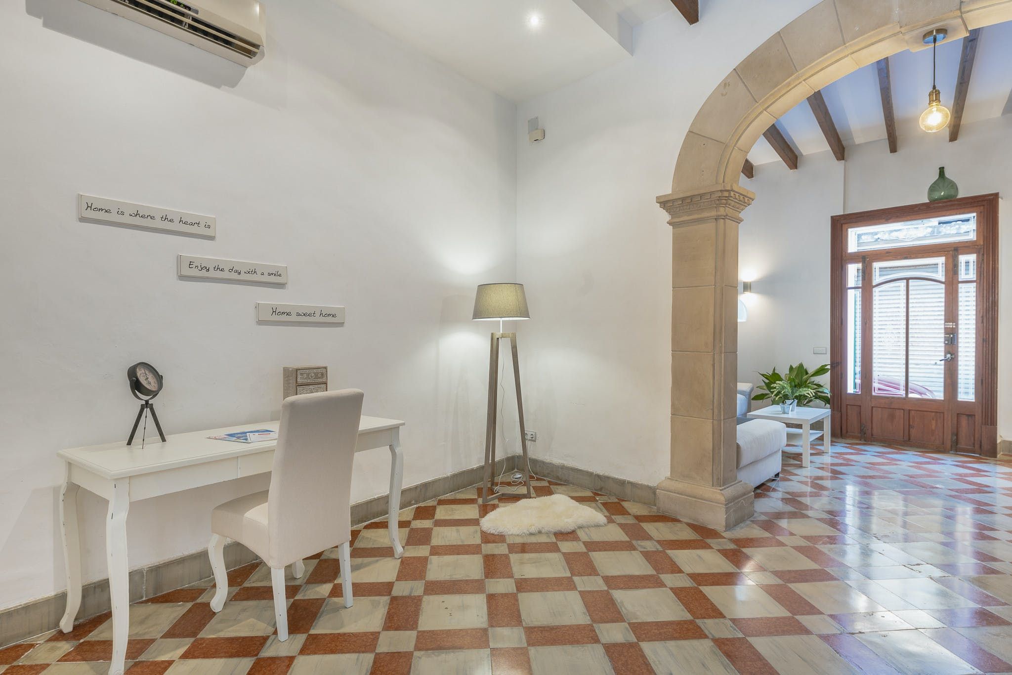 You could make the short drive to the beach at Alcudia, or just stick around in the courtyard garden by the Jacuzzi. Pot plants provide a bit of greenery and there’s a wooden dining table for alfresco lunches. Inside, we love the original tiled floor of the living room, a nod to the 19th-century architecture that surrounds you. Stone archways and wood beams are in display and a grand old staircase leads up to the bedrooms. A couple of the bedrooms have Juliet balconies looking out over the atmospheric street before you.