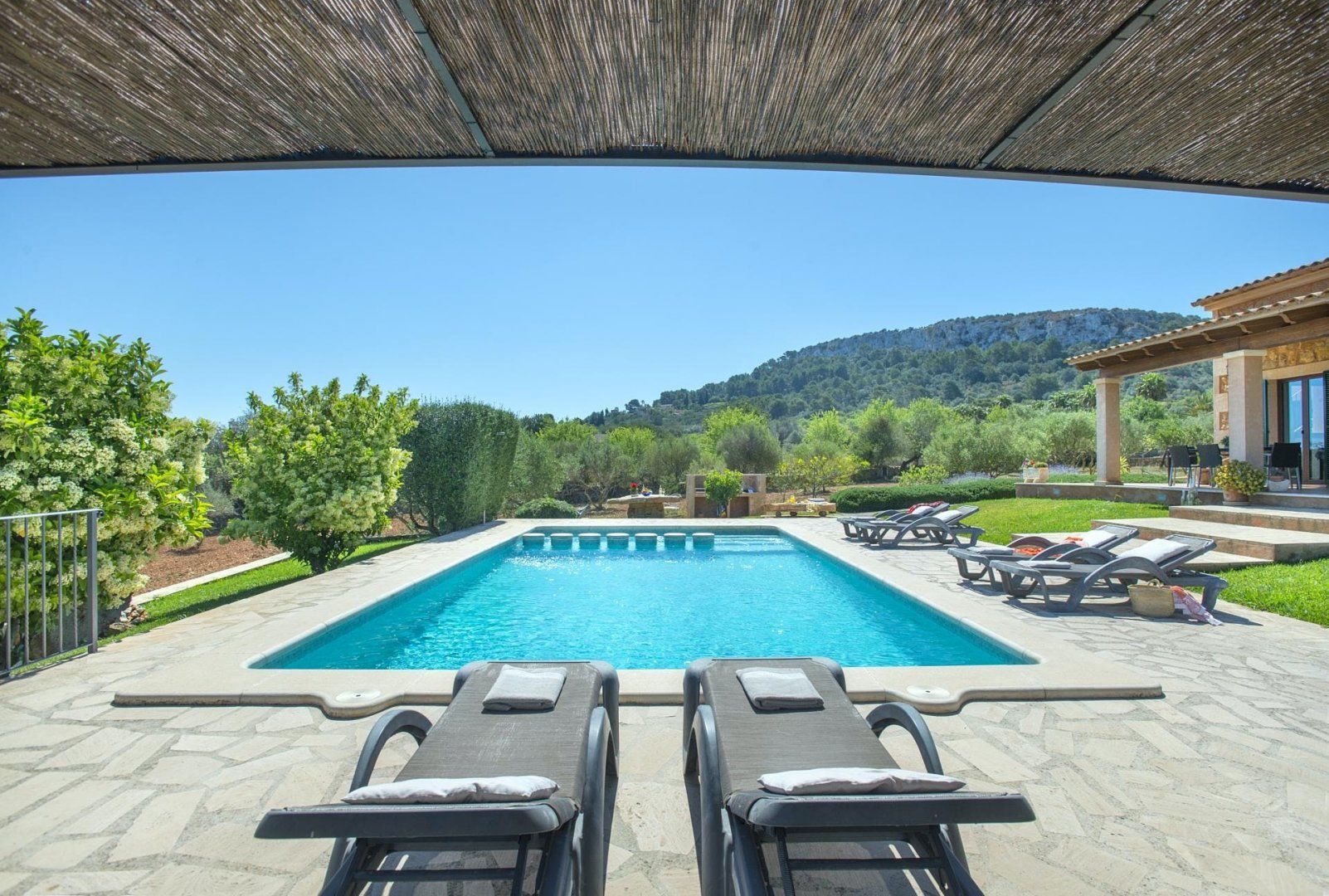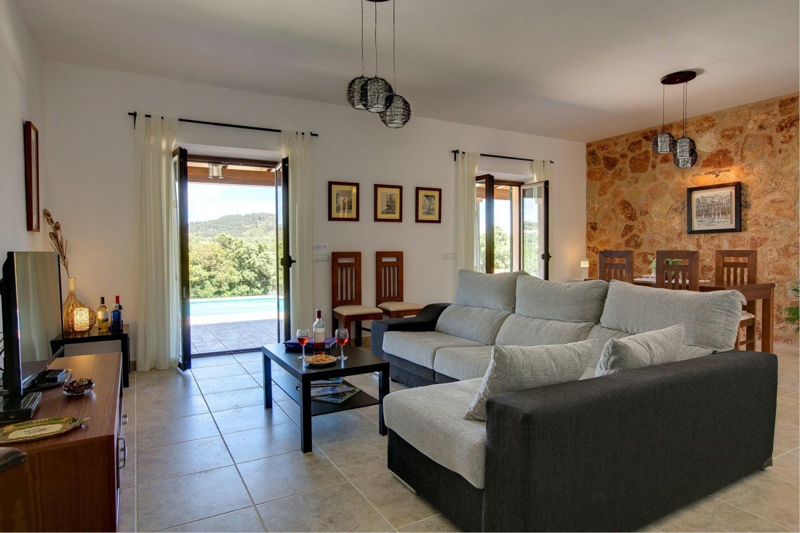 Building this home was the realisation of a life-long dream for the owner, whose family worked the land for generations – you can tell a lot of love has been poured into the villa. It’s a comfortable and welcoming home, ideal for families. We love the outside space, with a private pool, open and covered terraces, and incredible panoramic views of the rolling countryside surrounding the home. You can even spot the Tramuntana mountains in the distance. The nearest beach is around fifteen minutes away by car, so we recommend hiring a car.