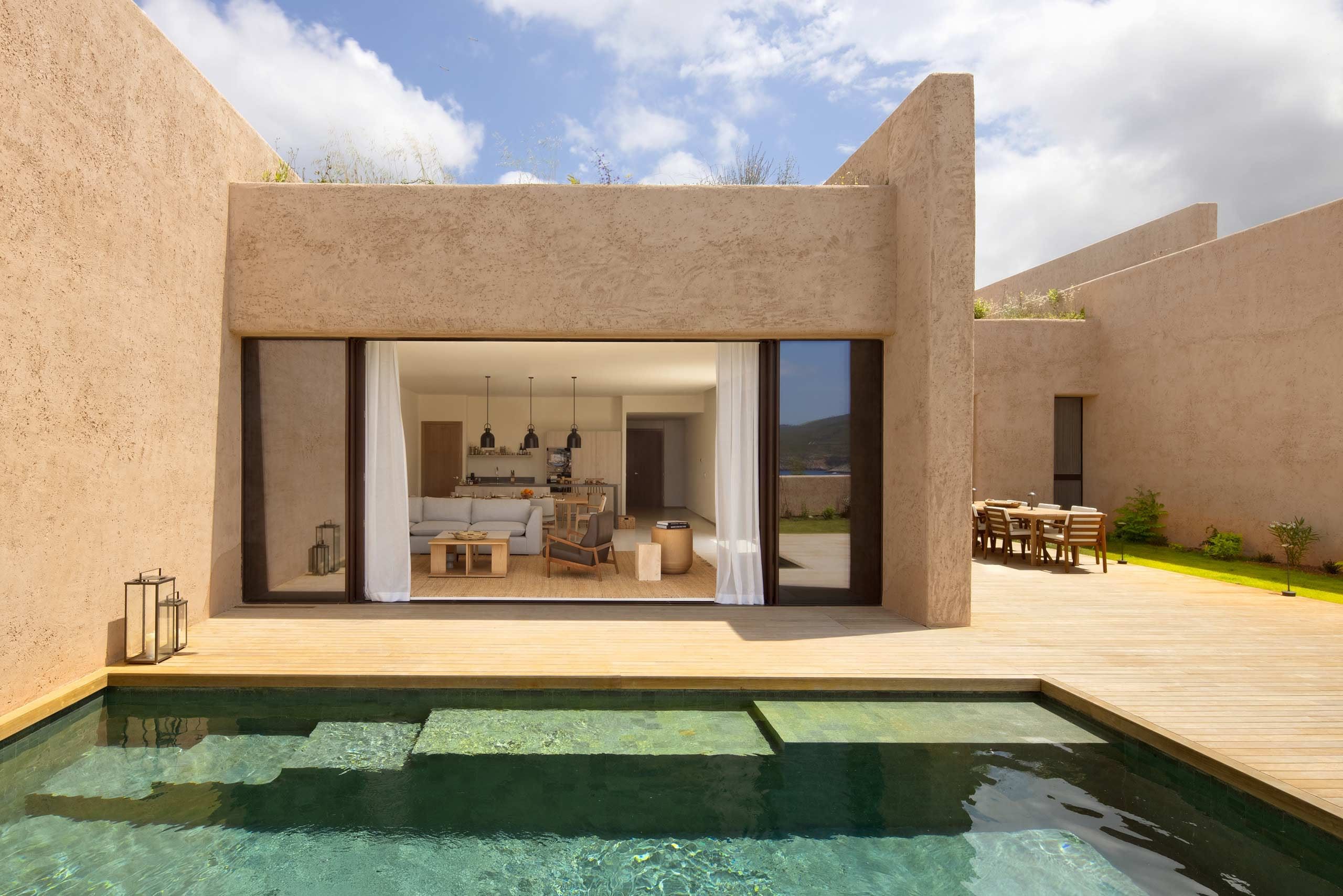 Part of an eco-friendly resort in the North of Ibiza, this sleek and sophisticated villa has you covered for days of relaxation. There’s a private pool for a cooling dip, dining on the patio and glass sliding doors blending indoors with outdoors. The open-plan living room is a lesson in bohemian minimalism, and the full kitchen has you covered for self-catering. Or, you can head to the resort’s gourmet restaurants, hit the on-site farm for the freshest breakfast or indulge in cocktails by the resort’s shared poolside. There are loads of sustainability workshops that run throughout the week – fermentation, natural cosmetics and zero-waste living – and guests here have a private jeep for the duration of their stay.