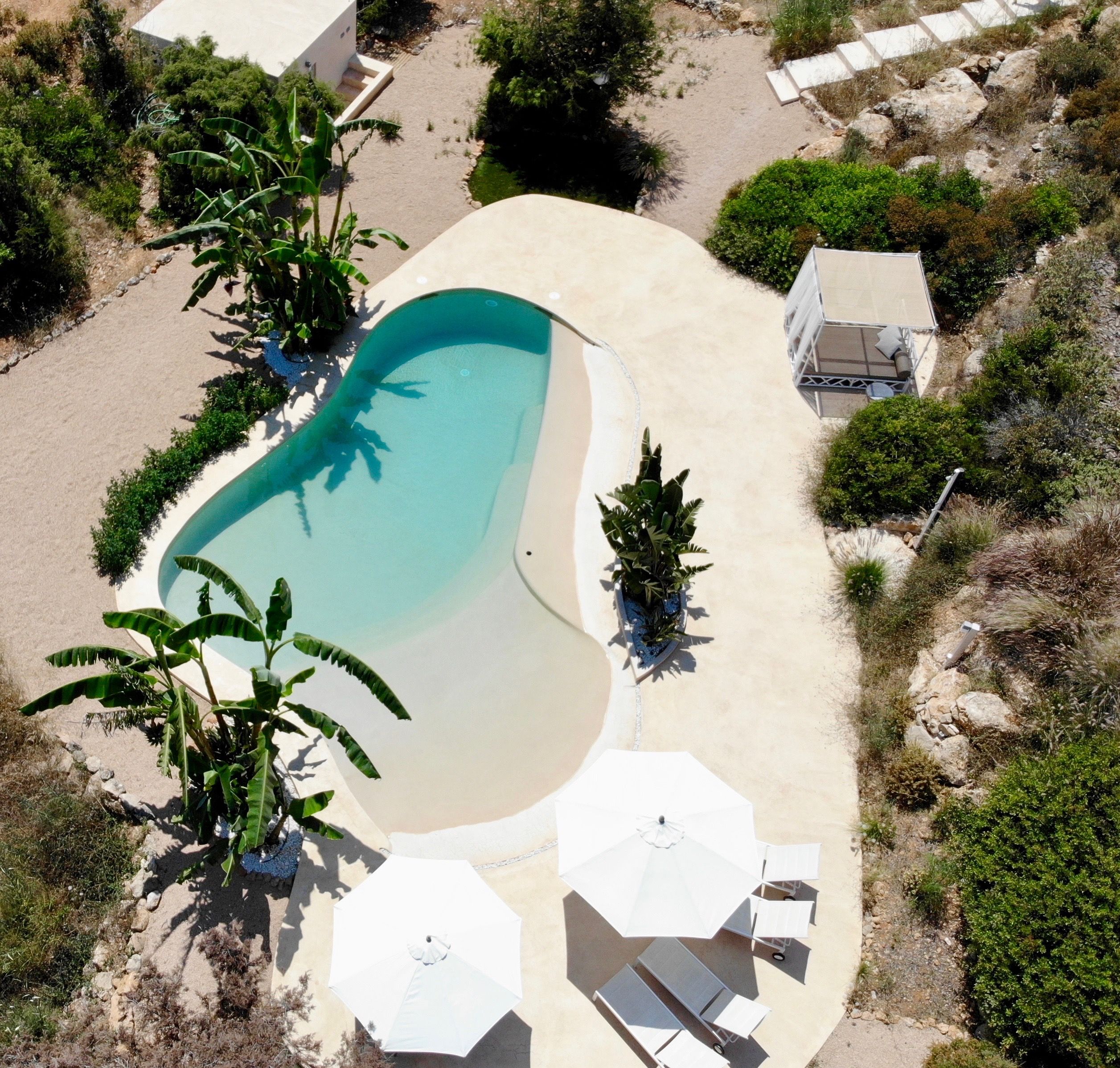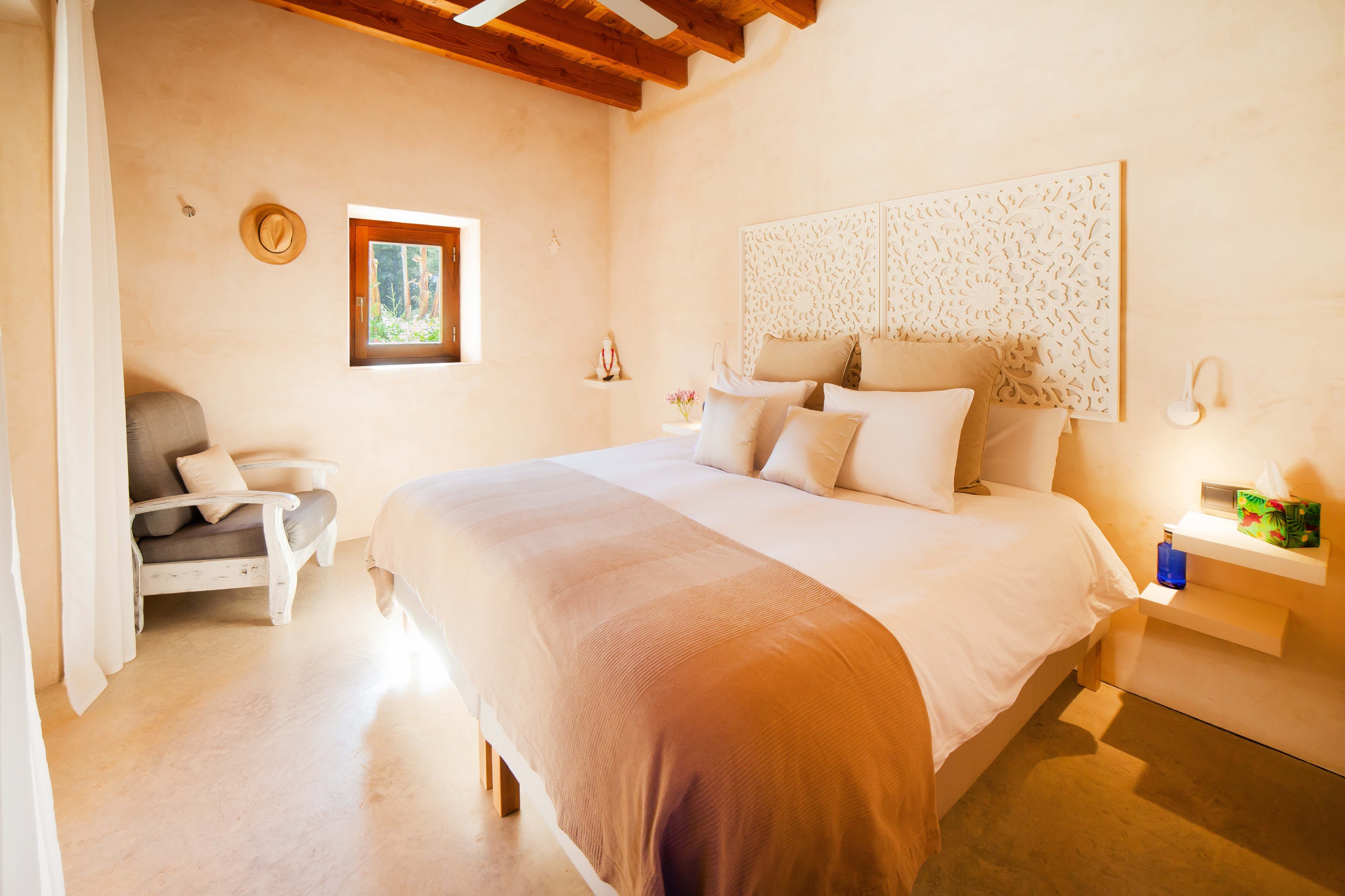 Nestled in the wild, untouched beauty of northwest Ibiza, this home promises tranquillity with breathtaking scenery to boot. You'll find it tucked away in the quaint village of Santa Agnès, a fifteen-minute drive from the coast. This peaceful pocket of the island offers a laid-back vibe and authentic charm year-round. Though we recommend visiting in January and February to witness the valley during the almond blossom season.