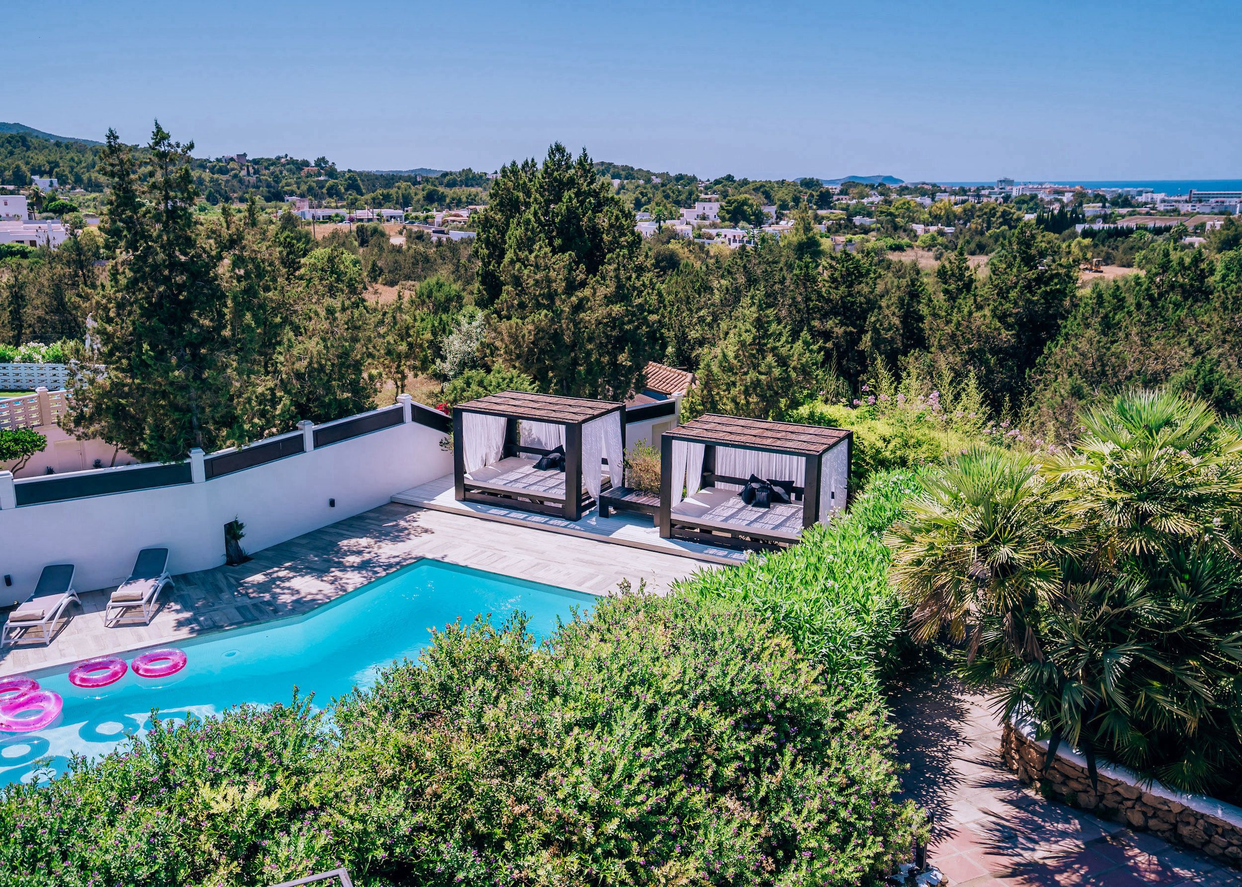 Just two-kilometres from the vibrant heart of San Antonio, this home provides the perfect setting for a blissful island escape. There’s a private pool and plenty of space to sit back and soak in the sunshine. The outdoor bar and oversized cabanas set the tone for magical evening drinks, while the rooms provide everything you could need to switch off and unwind. From here, you can walk to the nearest shops, while the beach is just a five-minute drive away.