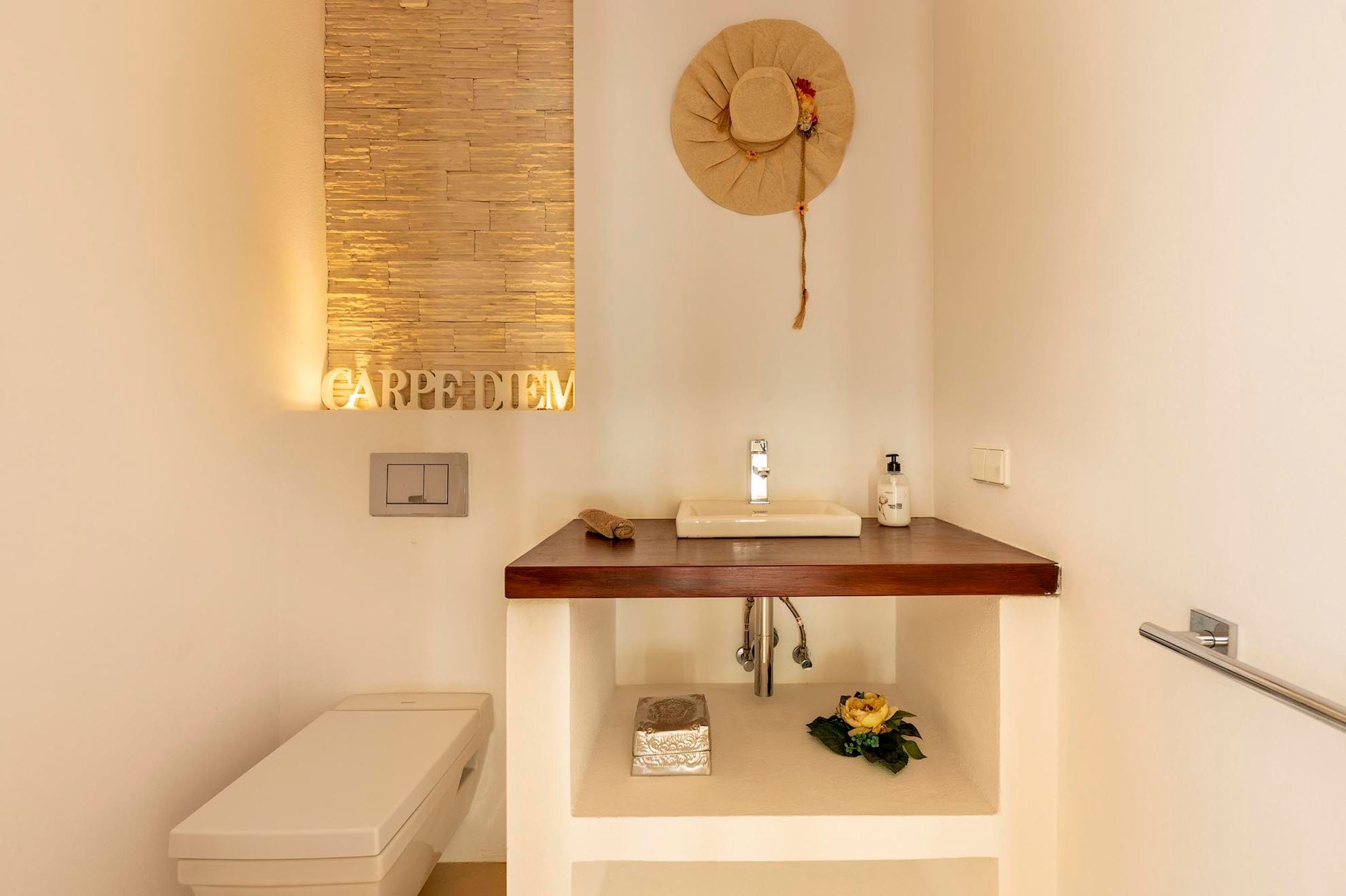 Set over one level and designed in a traditional Ibizan style, this villa has a small garden with a private swimming pool and areas to relax and dine in the shade. Inside is bright and welcoming and there’s a large kitchen for cooking some Balearic cuisine. This villa also benefits from air conditioning and underfloor heating, so it’s perfect for a stay any time of year. Location-wise, Punta Galera, with its views of the sea and sunset, is within walking distance. Some of the island's most beautiful beaches such as Cala Gracio and Cala Salada are also a short drive away.